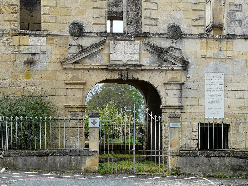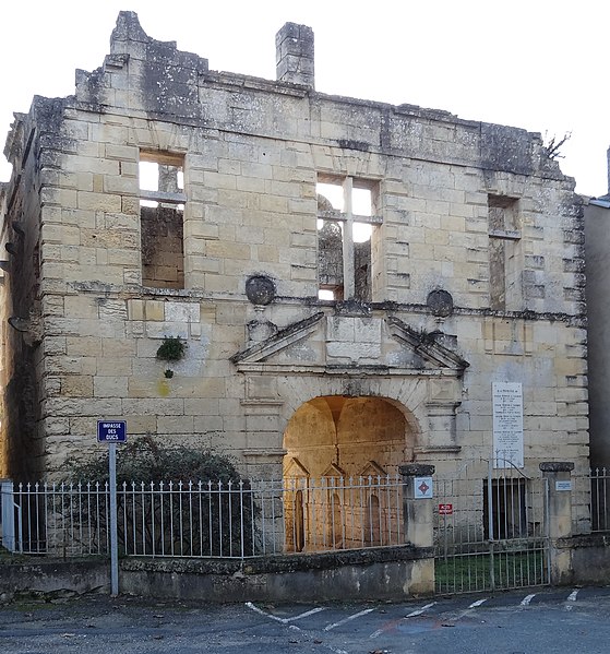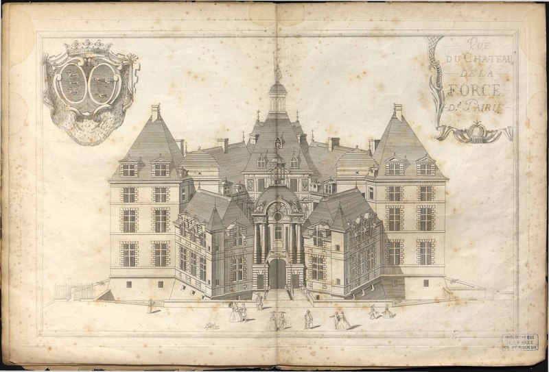 Le château de La Force se situe sur la commune de La Force, en Dordogne (Nouvelle-Aquitaine). Construit en pierre à partir de 1604 dans un style d'inspiration florentine, il fut édifié pour Jacques Nompar de Caumont, baron puis duc de La Force, gentilhomme protestant et maréchal de France. L'architecte est identifié par une inscription : Pierre Boisson, peut‑être maître maçon de Bordeaux, où il est mort en 1606. La construction, prévue sur trois étages avec combles à lucarnes, débuta en 1604 ; les travaux avancèrent rapidement jusqu'en 1611, mais l'assassinat d'Henri IV empêcha les secours royaux promis, et l'ouvrage fut finalement achevé en 1614. La décoration intérieure fut réalisée par un artiste parisien anonyme et le parterre devant le château fut dessiné par Jacques Boyceau de la Barauderie. En 1622, le site connut un siège dirigé par Charles de Guise‑Lorraine, duc d'Elbeuf. Le château fut mis à sac puis démoli en 1793 pour servir de carrière ; l'opération est attribuée au représentant du peuple Lakanal, alors en poste à Bergerac. Il subsiste aujourd'hui uniquement le pavillon central des écuries, appelé localement « Pavillon des Recettes », vestige classé au titre des monuments historiques le 11 avril 1932. Le temple, dépendance du château, n'a pas été démoli. Le plan du château suivait le tracé d'un hexagone irrégulier ; un jardin à la française séparait l'édifice de l'entrée, celle‑ci formant un pavillon central dans l'axe des communs. Quatre niches ornaient les parois latérales du passage du pavillon. En 1855, la façade des Recettes mesurait 85 mètres de largeur et les toitures étaient en longs pans couverts d'ardoise. Derrière cette façade s'étendait une grande pelouse, probablement organisée en jardin à la française, accessible par une allée centrale bordée de marronniers partant du porche des Recettes et menant au château disparu, implanté à l'extrémité d'un éperon orienté au sud vers la plaine de la Dordogne. La parcelle est aujourd'hui boisée et partiellement construite (l'Enclos du Château). Côté jardin, trois encadrements de fenêtres des combles subsistent, le troisième étant intégré à l'ancienne hostellerie des ducs. Sur le mur à droite de l'arche d'entrée figure une plaque portant les noms de cinq membres de la famille de Caumont : Jacques Nompar de Caumont, Armand Nompar de Caumont, Jacques Henri de Caumont, Auguste Nompar de Caumont et Henri de Belsunce. La cloche du campanile du château serait aujourd'hui affectée à l'église Saint‑Jacques‑le‑Majeur de Bergerac. Le musée de Périgueux a recueilli des plaques funéraires et une inscription de 1604 relatives à l'édification du château ; l'acceptation de ce legs a eu lieu en décembre 1886 entre Édouard Galy, conservateur du musée, et Olivier Emmanuel de Caumont (1839‑1909), douzième duc de La Force. Parmi les éléments conservés, une pierre tombale datée de 1737 se rapporte à Antoine de Caumont, marquis de Castelnaut, mort à 17 ans, et une autre, datée de 1764, concerne Armand Nompar II de Caumont, âgé de 86 ans. Jules Determes publia en 1850 un opuscule de quatorze pages dédié à une gravure du XVIIIe siècle représentant le palais ; le cuivre original de cette gravure a été préservé en 1793.