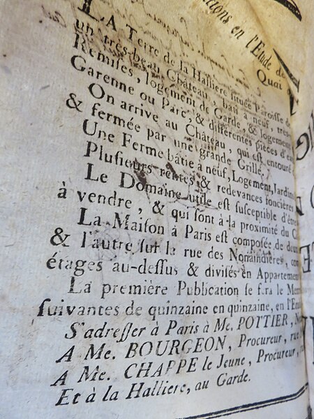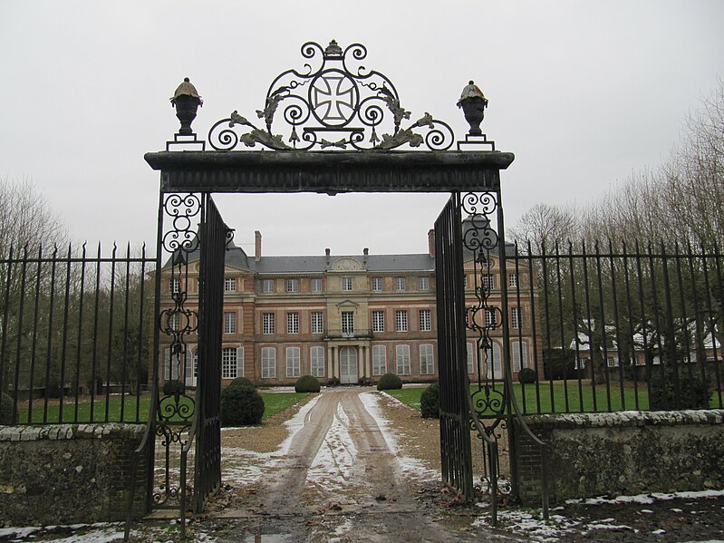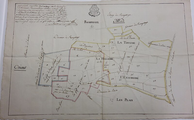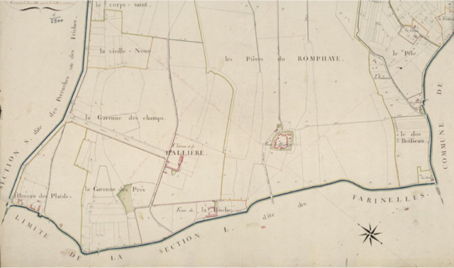 Le château de la Hallière, situé sur la commune de Digny (Eure‑et‑Loir), remplace l'ancien manoir de la Hallière et jouxte le manoir du Romphaye avec lequel il a partagé son histoire. Le logis seigneurial primitif, décrit en 1772 comme une maison comportant notamment deux chambres basses et hautes, cuisine, offices, laiterie, puits extérieur et communs (écurie, bergerie, grange, étable, logis du fermier), a été en grande partie démoli après 1781 pour laisser place au nouveau château. La construction du nouvel édifice, confiée à un maître d'œuvre chartrain et commandée par Dupont, date d'environ 1785. Le château se présente extérieurement comme un long quadrilatère en brique rose, flanqué de deux pavillons légèrement en saillie, avec un avant-corps central en pierres de taille remanié sous la Restauration. Cet avant-corps axial, étroit, porte un balcon au premier étage soutenu par des colonnes jumelées ; les frontons des pavillons, l'entablement à modillons et la partie centrale décorée de colonnes ont également été modifiés à la Restauration. Le blason de la famille du Tillet, une croix pattée inspirée de la croix de Malte, a été ajouté sur le fronton et sur la grille d'entrée. Les pavillons latéraux sont surmontés d'un fronton percé d'un oculus et coiffés d'un toit de type Mansart surmonté d'une sorte de dôme à pans concaves ; la façade arrière est plus simple. La cour d'honneur est délimitée par une grille en fer forgé encadrée par deux pavillons carrés coiffés d'une toiture pyramidale, l'ensemble précédé d'une grille d'entrée encadrée de pavillons. Perpendiculaires au château, les communs forment un bâtiment bas et long d'où émergent un colombier rond surmonté d'un lanternon et un porche en plein cintre qui sert d'entrée à la basse-cour. Au rez-de-chaussée, l'aménagement intérieur, tel qu'il existait vers la fin du XVIIIe siècle, comprenait la cuisine et son office, une salle servant de garde‑manger, la salle à manger, un salon avec escalier dérobé, des chambres et une salle de billard donnant sur la basse-cour ; à l'étage, de vastes chambres dont une chambre à alcôve, une pièce aménagée en chapelle et les appartements « de Monsieur et de Madame » avec cabinet de toilette et garde‑robe. Le second étage était occupé par une enfilade de pièces desservies par un corridor et diverses petites chambres de domestiques complétaient l'ensemble. L'avis d'adjudication de janvier 1791 décrit le domaine comme un « très beau château bâti à neuf » avec vestibule, salles de réception, huit à dix appartements de maître, greniers et caves, une avenue bordée de contre‑allées fermée par une grande grille, un parterre derrière le château entouré de fossés remplis d'eau, des logements pour le jardinier et le garde, écurie, basse‑cour, garenne, parc avec pièce d'eau et une ferme neuve attenante. Classé monument historique le 19 avril 1972, l'édifice conserve des boiseries Louis XVI au rez‑de‑chaussée et un petit salon hexagonal orné de panneaux peints au « chinois » sur fond vert d'eau, apportés de la région parisienne. Des dépendances et aménagements complémentaires ont été ajoutés au XIXe siècle : une chapelle privée vers 1887 et une orangerie vers 1889. Sur les plans anciens — cartes de Cassini, atlas de Trudaine, plan de 1781 établi par Pierre‑Jacques Tastemain et cadastre napoléonien de 1812 — l'évolution du bâti et du parc est bien lisible, le cadastre de 1812 montrant le château dans sa forme actuelle et attestant l'indépendance du domaine par rapport au manoir du Romphaye grâce à la grande avenue rectiligne reliant directement le château à la route de Digny. Sur le plan foncier et successoral, la seigneurie relève autrefois de la généralité d'Alençon et du fief de Beaussart ; après diverses transmissions et ventes au XVIIIe siècle, Armand Dupont acquiert la seigneurie en 1772 et entreprend la construction du château. Armand Dupont décède en 1789 et le domaine est adjugé au vicomte Testu de Balincourt le 29 janvier 1791, lequel procède ensuite à d'importants achats de fermes et terres voisines. Le 3 décembre 1794, la Hallière et une grande partie de son mobilier sont vendus à Gabriel‑Étienne Dutillet, dont la famille est propriétaire depuis lors. Ainsi le château a conservé, malgré des remaniements, l'aspect général du château de la fin du XVIIIe siècle enrichi d'éléments ajoutés au XIXe et protégé au titre des monuments historiques.