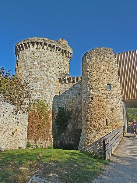 Le château de la Madeleine, situé sur la commune de Chevreuse dans les Yvelines, domine la vallée de l'Yvette et accueille le siège du parc naturel régional de la Haute Vallée de Chevreuse ; il appartient au conseil départemental des Yvelines. Sa construction remonte au XIe siècle, attribuée à Milon de Chevreuse, tandis que d'autres sources indiquent un début des travaux entre 1030 et 1090 sous Gui Ier. Du premier état médiéval il ne subsisterait probablement rien : une tour de bois a précédé la tour maîtresse en pierre, dont les fondations ont été repérées lors de fouilles. La haute-cour, initialement protégée par une palissade de bois, fut remplacée par des murailles de pierre et un donjon en pierre à la fin du XIe ou au XIIe siècle; des mâchicoulis et d'autres aménagements défensifs furent ajoutés par la suite. La chapelle Sainte-Marie-Madeleine est attestée au XIIIe siècle ; Lebeuf signale l'existence de deux chapelles et des vestiges, dont une tête humaine, subsistent sur un mur de la basse-cour à l'emplacement figurant la chapelle sur les plans de 1697 et de 1785. Au XVe siècle un puits a été creusé et, après plusieurs changements de propriétaires, Pierre de Chevreuse racheta le domaine au XIVe siècle et l'agrandit. Les fortifications furent renforcées à la fin du Moyen Âge sous les règnes successifs, les travaux se poursuivant jusqu'à la période de Louis XI ; la ville voisine reçut elle aussi des remparts crénelés munis de tourelles et d'un fossé important. La baronnie de Chevreuse fut élevée en duché puis en duché-pairie au cours des siècles suivants. Des travaux de réparation ont été menés au XVIIe siècle, y compris des interventions sur le donjon, et des modifications datent aussi du XIXe et du XXe siècle ; en 1824 des démolitions suivies de reconstructions destinées à des logements sont signalées. L'intérieur du site a été adapté à l'époque moderne pour recevoir la maison du parc naturel régional, dont l'architecture contemporaine utilise la meulière et s'insère dans la cour en employant des salles anciennes. L'enceinte qui entoure la tour maîtresse mesure environ 70 mètres sur son grand axe et 50 mètres en largeur ; elle est précédée côté plateau par un fossé important et protégée à l'est et à l'ouest par un ravin naturel. Parmi les vestiges visibles en haute-cour figurent une enceinte complète flanquée de tours carrées à l'est, une porte principale encadrée de tours, deux tours rondes (dont l'une semi-circulaire et l'autre surmontée d'une tourelle de guet) ainsi qu'un donjon à contreforts plats présentant des ouvertures médiévales. On observe aussi des mâchicoulis au sommet des remparts et un linteau en bois remplaçant un fronton de pierre effondré à la porte principale. La haute-cour est accessible gratuitement ; la basse-cour est morcelée en parcelles privées non ouvertes au public. L'accès à la maison du parc se fait par l'ouverture de l'ancien pont-levis. Enfin, la cour du château a servi de lieu de tournage extérieur pour la série Kaamelott.