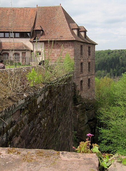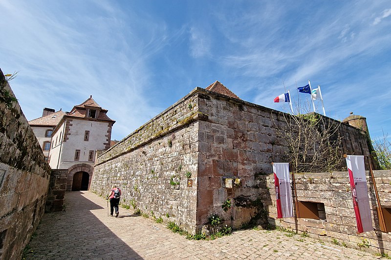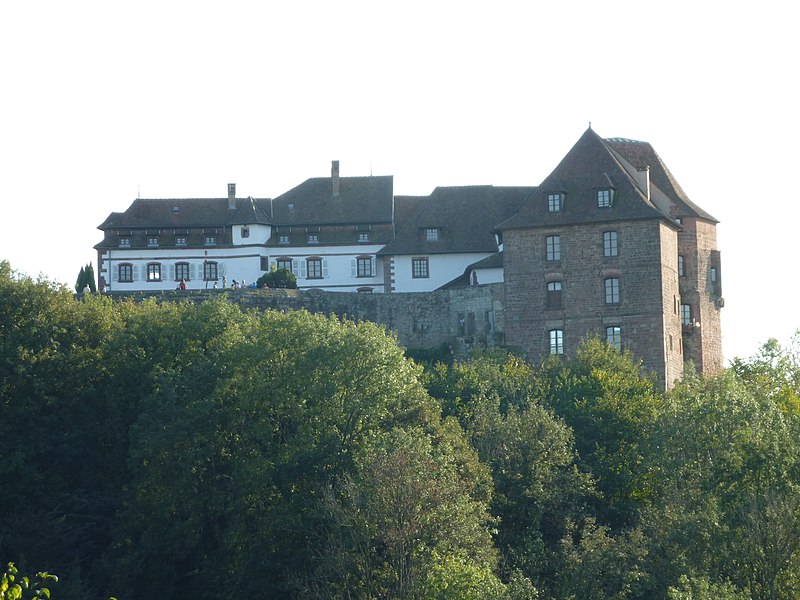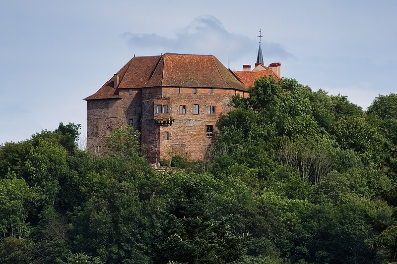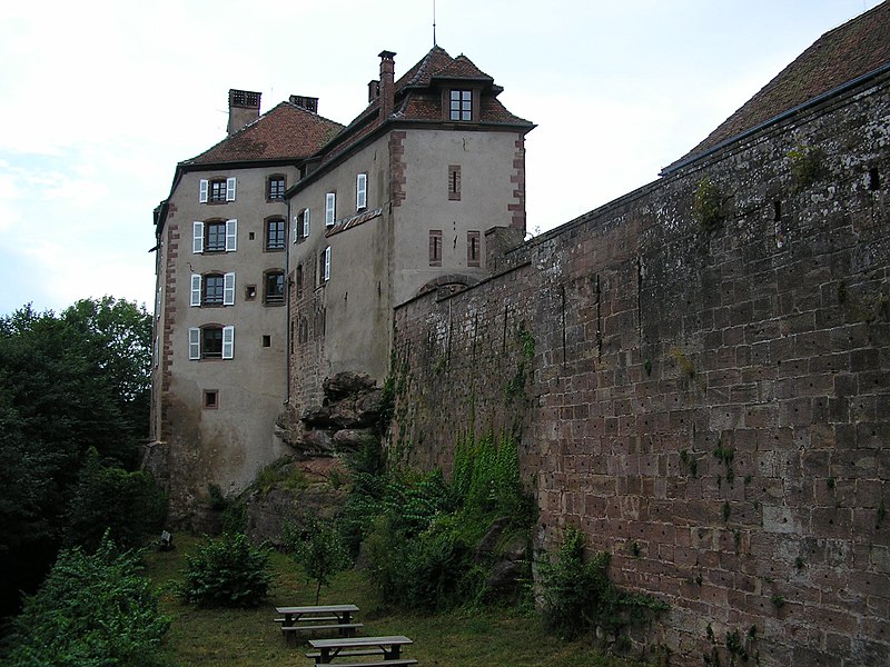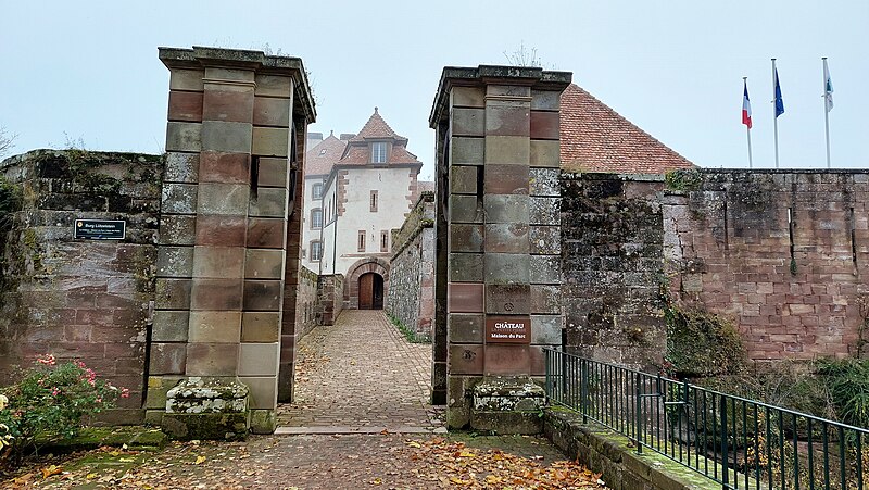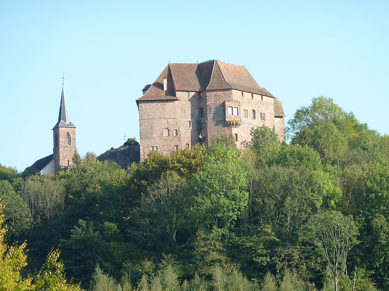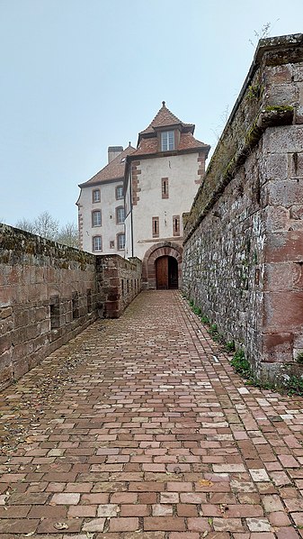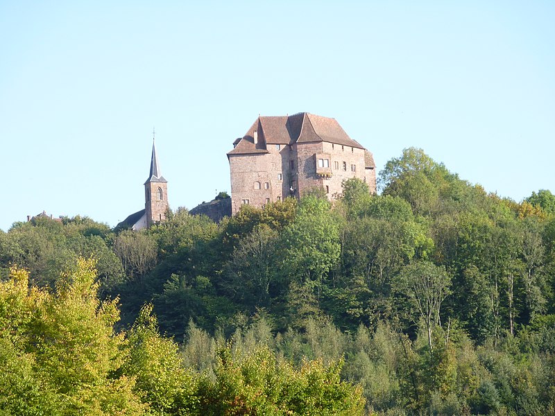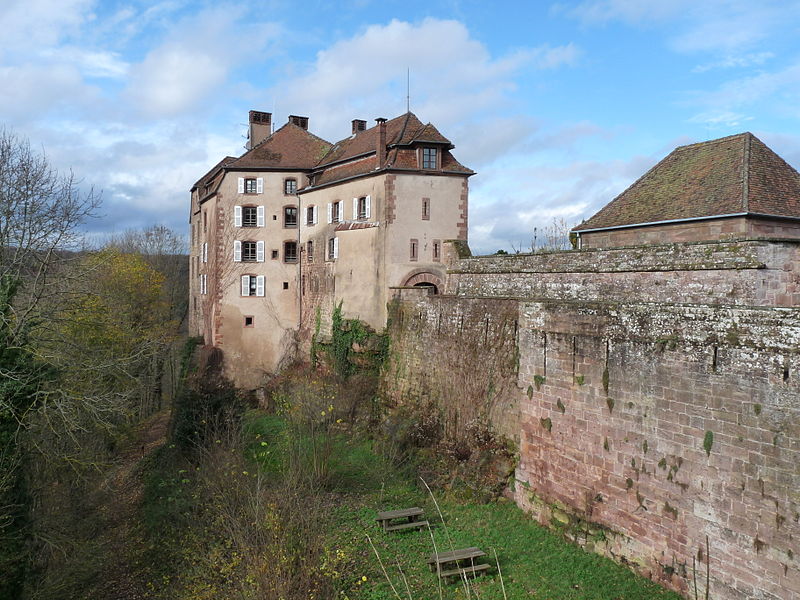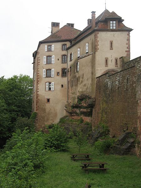 Le château de La Petite-Pierre, aussi appelé Lutzelstein, occupe l'extrémité d'une crête à 340 m d'altitude, séparé de la vieille ville par un fossé artificiel. Érigé à la fin du XIIe siècle et occupé sans interruption depuis, il est mentionné dès 1212 tandis que la ville apparaît dans les sources en 1403. Le premier établissement défensif fut établi par les comtes d'Eguisheim-Dabo, qui le donnèrent en fief à une famille dite Parva Petra, à l'origine du nom de La Petite-Pierre ; le fief devint un comté à la fin du XIIe siècle. Après un conflit avec l'évêque de Strasbourg, le comté fut cédé puis rendu sous forme de fief en 1223. En 1403, Bourcard de Lutzelstein céda une part de la seigneurie au comte palatin Robert III, qui permit la transmission par les femmes, puis en 1452 le comte palatin Frédéric Ier s'empara de l'ensemble après un siège de neuf semaines. Le château passa à une branche cadette de la maison palatine et devint en 1566 la résidence de Jerri-Hans de Veldenz, qui y fit entreprendre d'importants travaux de modernisation. Des fortifications furent construites par le comte palatin en 1586 ; l'armée royale occupa le site en 1677 et Vauban restructura les fortifications en 1684, remaniements dont une large part reste visible aujourd'hui. Les traités de Westphalie et de Münster en 1648 placèrent ces terres sous la souveraineté du roi de France. En 1870 les fortifications furent rasées et le château fut démilitarisé, prenant une vocation administrative avec l'installation des services des eaux et forêts sous l'administration allemande, puis sous administration française après 1918. Classé au titre des monuments historiques depuis avril 1922, il abrite depuis 1977 les services du Parc naturel régional des Vosges du Nord. D'importantes rénovations menées depuis 2017, conduites par l'architecte en chef des monuments historiques Pierre-Yves Caillaut et l'agence DWPA, ont sécurisé le bâti, amélioré l'isolation et l'accessibilité, et rendu la cour, le jardin et une boutique accessibles au public. Le site comprend aussi la vieille ville dite Staedtel, la chapelle Saint-Louis, le chœur de l'église du XVe siècle et une tour-bastion protégeant des citernes ; une citerne creusée en 1570-1571 assurait l'alimentation en eau et reste accessible depuis le sentier des remparts. Sur le plan architectural, le donjon pentagonal a été détruit au XIXe siècle et le logis a été fortement remanié ; dans les caves subsiste une citerne à filtration attribuée au XIVe siècle et la façade sud présente des fenêtres romanes. Le puits décoré de style Renaissance, la porte d'entrée à pilastres et la tourelle d'escalier datent du XVIe siècle, tandis qu'une construction polygonale expose des ornementations gothiques, notamment des chapiteaux à crochets. Depuis 2002, le château et le village accueillent en août le festival Au Grès du Jazz, dix jours de musique en plein air.
