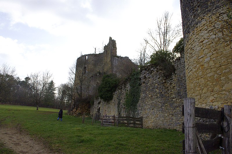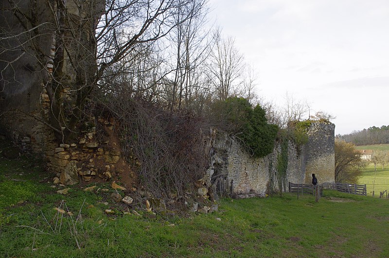 L'architecture présente un logis flanqué de deux tours rondes sur le côté sud et d'une tour d'escalier polygonale aujourd'hui disparue, configuration typique de l'architecture périgourdine du XVe siècle. La tour d'angle sud-ouest contient une salle voûtée au niveau du sol ; sous la partie ouest du logis s'ouvre une cave voûtée accessible de l'intérieur et de l'extérieur. La cour est close par un haut mur d'un mètre d'épaisseur environ, flanqué à ses angles de tours rondes munies de trois meurtrières à leur base. Côté ouest, un châtelet d'entrée intégré à l'enceinte, comparable à celui du château de La Chapelle-Faucher, présente une voûte élevée ; il était pourvu d'un pont-levis, surmonté d'un chemin de ronde et jouxté d'une petite tour de guet avec escalier à vis. Le mur d'enceinte au nord comprenait les communs et une chapelle dans l'angle nord-est dont les restes de voûte sont encore visibles. Du logis du XVe siècle ne subsistent que les montants de deux cheminées et des moulures de fenêtres, et, à l'intérieur, une tour de la Renaissance conserve deux piliers sculptés d'une cheminée gothique et le haut d'une fenêtre de la même époque.