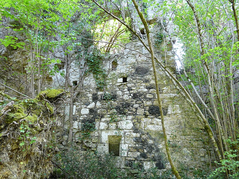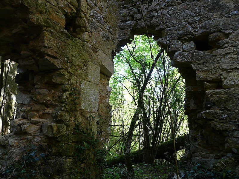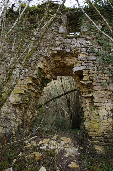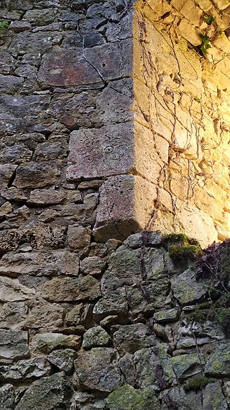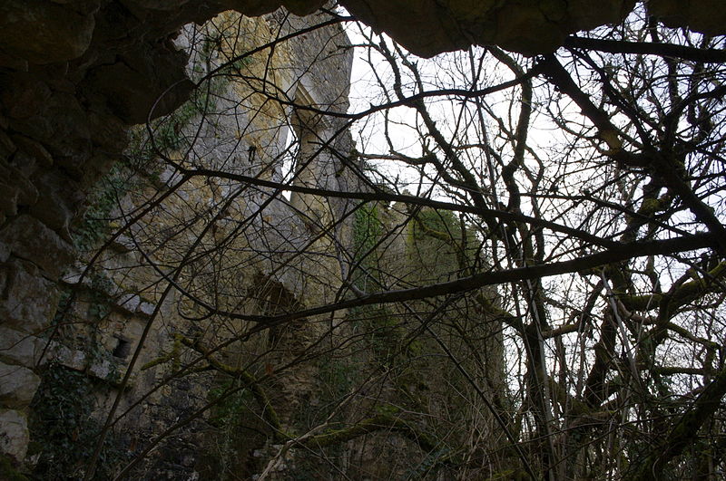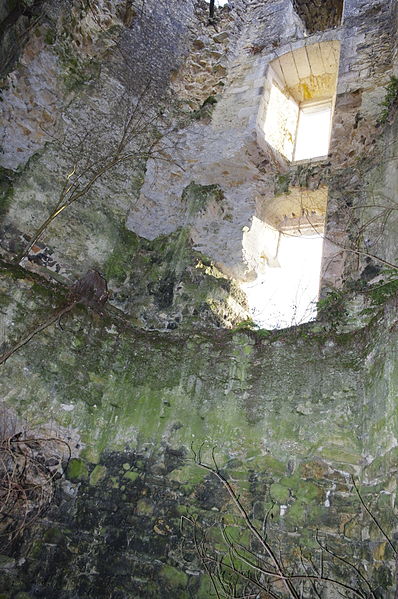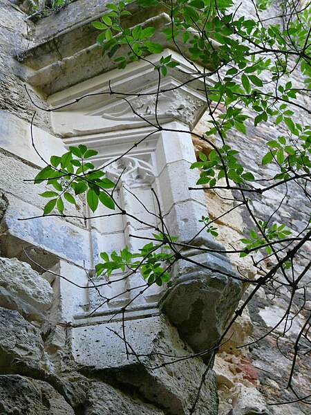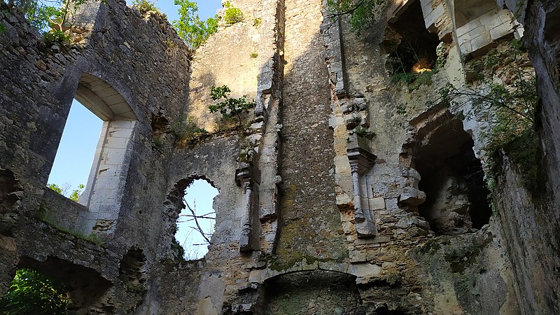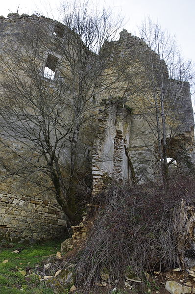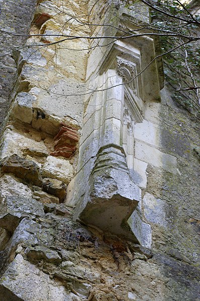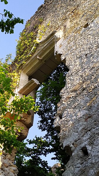 Des photographies et relevés montrent le panneau d'information à l'accès, la façade arrière, diverses vues extérieures et intérieures des ruines, des moulures au-dessus d'une porte, les vestiges de cheminées et de portes, des piliers de cheminée, l'accès au sous-sol et le logis lui‑même.