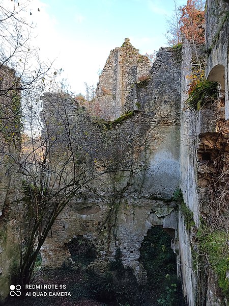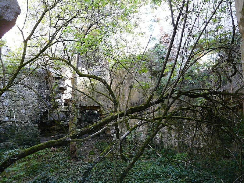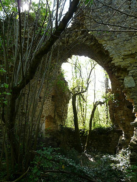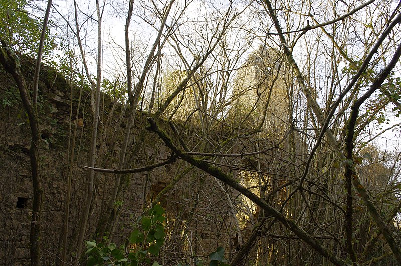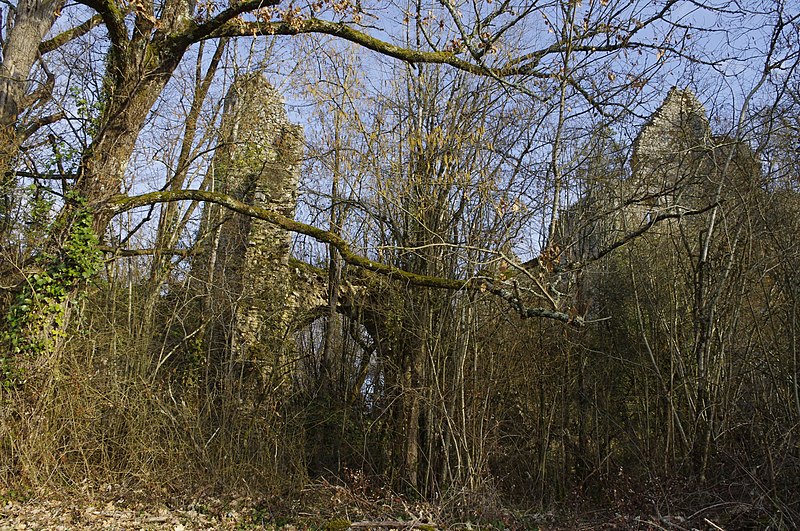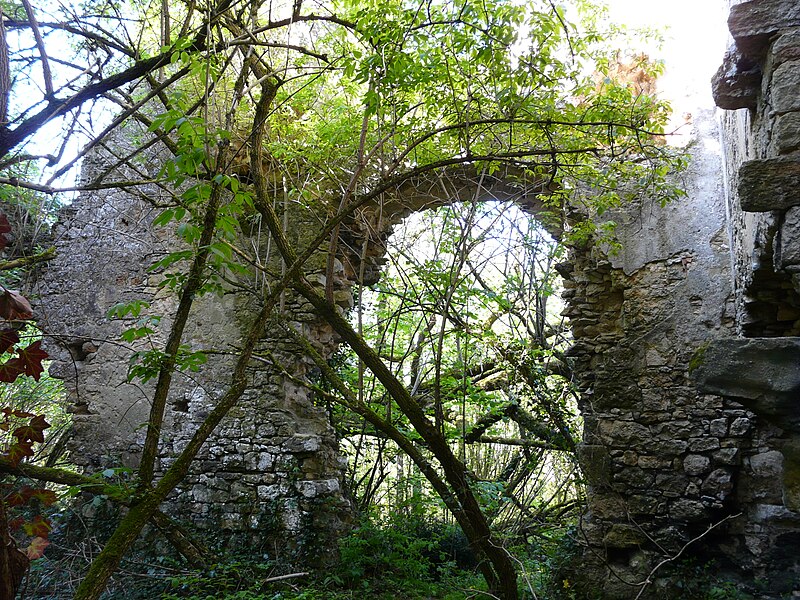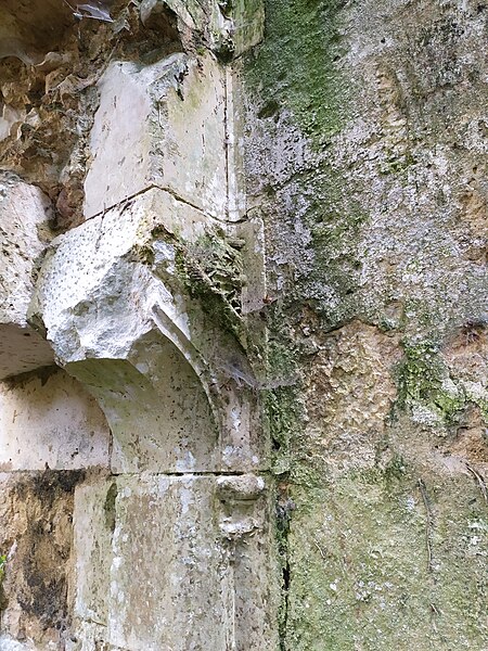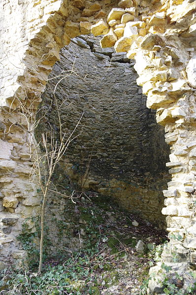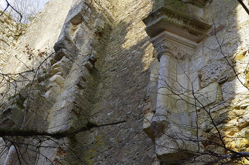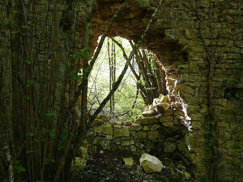Des photographies et relevés montrent le panneau d'information à l'accès, la façade arrière, diverses vues extérieures et intérieures des ruines, des moulures au-dessus d'une porte, les vestiges de cheminées et de portes, des piliers de cheminée, l'accès au sous-sol et le logis lui‑même.
