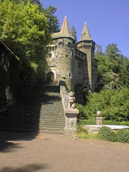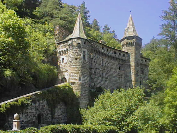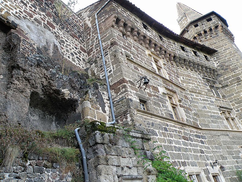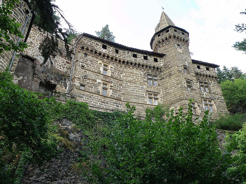Le château de la Roche-Lambert, édifié au XIe siècle, est bâti contre une coulée de basalte sur la commune de Saint-Paulien (Haute-Loire) et dominait autrefois la voie très fréquentée qui longeait la rive opposée de la Borne. Il se situe dans la vallée de la Borne, près du hameau de Marcilhac, à 2 km au sud-ouest de Saint-Paulien et à 11 km au nord-ouest du Puy-en-Velay ; le tracé de cette ancienne voie est aujourd’hui repris par la D25. Plusieurs sources l’ont rapprochée de la route de Saint-Jacques-de-Compostelle, mais le château contrôlait en réalité la voie dite de la Bolène, qui traverse Saint-Paulien et passe par Saint-Jean-Lachalm, où une borne marque la 16e lieue depuis Saint-Paulien. La première mention de la famille de la Roche-Lambert figure en 1074 ; le premier seigneur connu, Pierre de la Roche-Lambert, apparaît dans un acte de 1164, et la filiation suivie débute en 1274. La fonction première du château était le contrôle de cette voie de communication. Le 11 août 1562, le sieur de Blacons, lieutenant du baron des Adrets et chef protestant en Dauphiné, tenta de prendre la place ; à la tête d’une troupe d’environ 800 hommes, il avait peu avant pris La Chaise-Dieu et Saint-Paulien et ravagé les environs du Puy. L’attaque causa une destruction partielle du château ; un récit contemporain et anonyme, retrouvé dans les papiers du domaine et écrit par un témoin, en rend compte. Hélène de Lestrange, épouse de François de La Roche-Lambert, fit reconstruire le château après ces dégâts ; elle est décédée en 1614 et inhumée au cimetière de Saint-Paulien. Le château resta la propriété de la famille de La Roche-Lambert jusqu’en 1922, quand la fille de Marie Auguste Aimé de La Roche-Lambert le vendit à un marchand de biens, entraînant la dispersion du mobilier et des collections ; M. Bresset, antiquaire, racheta la demeure en 1939 et y exposa sa collection d’art médiéval ; son petit-fils en est le propriétaire actuel. Le château a été classé monument historique le 31 janvier 1945. Architectoniquement, il s’appuie sur la paroi basaltique, visible dans certaines salles ; les fondations datent du XIIe siècle, la barbacane de la tour sud du XIIIe siècle, et les mâchicoulis ainsi que les corps de bâtiment autour de la tour octogonale du XIVe siècle. Le château médiéval comprenait plusieurs tours, un rempart avec chemin de ronde et un pont-levis ; ce dernier fut restauré par François et Hélène vers 1580 puis comblé en 1604 lorsque la marquise fit édifier l’escalier monumental. La porte d’entrée porte les armes familiales, « d’argent au chevron d’azur, au chef de gueules ». George Sand visita le château le 14 juin 1859, s’en inspira pour son roman Jean de la Roche écrit le mois suivant et a décrit son aspect singulier, sa faible profondeur et son intégration au rocher. La façade et le grand escalier ont servi de modèles pour les décors reconstitués du film La Belle et la Bête de Jean Cocteau (1946), et le feuilleton La Belle et son fantôme de Bernard Hecht (1962) y fut en grande partie tourné. Aujourd’hui le château est ouvert au public ; des visites guidées d’environ une heure sont proposées autour de thèmes variés tels que l’alimentation au Moyen Âge, le volcanisme, les plantes médicinales et les oiseaux.