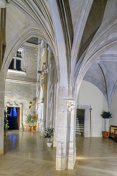 Le château de la Roque, aussi appelé château de la Roque des Péagers, est situé à Meyrals, dans le Périgord noir. Sa construction remonterait au XIIe siècle, peut-être à une période antérieure. Fief des Beynac puis des Beaumont, il a vu naître Christophe de Beaumont (1703-1781) qui y fut exilé en 1754 par Louis XV. L'édifice, de plan irrégulier, s'articule autour d'un corps de logis adossé à un donjon carré et flanqué de deux tours rondes à collerettes de mâchicoulis. La façade d'entrée a été remaniée au XVIe siècle par l'adjonction d'un corps de logis entre les tours, percé d'un porche et orné d'une lucarne à meneaux cruciformes coiffée d'un fronton aigu ; la porte du corps de logis porte la date de 1622 et la cour intérieure s'ouvre sur une porte de style Louis XII. L'accès primitif était défendu par un châtelet rectangulaire à mâchicoulis, pourvu d'archères cruciformes et précédé d'un pont-levis. Bâti sur le versant sud d'un site défensif d'époque de La Tène, au-dessus d'un front de falaises abritant des cluzeaux, le château domine la vallée du Moulant, entre les communes de Castels, Meyrals et Saint-Cyprien ; il est séparé de la colline par une douve sèche. Deux logis du XVe siècle forment un angle en équerre et communiquent avec deux tours pourvues de mâchicoulis, l'une carrée et l'autre ronde, reliées par un pavillon à tourelle aux fenêtres de style Renaissance. Les différents corps de logis, construits sur le rocher, comptent deux étages sous des toitures en ardoise à deux pans ; les tours circulaires sont couvertes en poivrière tandis que la tour carrée présente une toiture à quatre pans couverte de lauzes. Le château conserve un oratoire probablement du XIVe siècle, aménagé au rez-de-chaussée du donjon rectangulaire, dont les murs et voûtes sont revêtus de peintures murales remarquables attribuées par les sources aux XVe, XVIe et XVIIe siècles. Sur la voûte figure le Père Éternel entouré des évangélistes, et les murs présentent des scènes de la Passion, notamment Jésus chez Caïphe, Pilate se lavant les mains et Jésus tombant sous le poids de sa croix ; l'angle sud montre une Annonciation dans les écoinçons de l'arc de décharge, et le mur ouest illustre l'entrée du Christ à Jérusalem et l'agonie à Gethsémani. Le chevet plat de l'oratoire s'organise en deux registres : le registre inférieur présente une mise au tombeau centrée sur le Christ mort étendu sur un suaire, tandis que le registre supérieur, encadrant la baie, montre la Crucifixion, les donateurs agenouillés et saint François d'Assise ; parmi les personnages représentés figurent François de Beynac et Jeanne de Salignac. Une reproduction de ces fresques est conservée au Musée des Monuments Français à Paris. Le château a été inscrit au titre des monuments historiques le 5 novembre 1927 et les fresques de l'oratoire ont été classées le 1er octobre 1963.