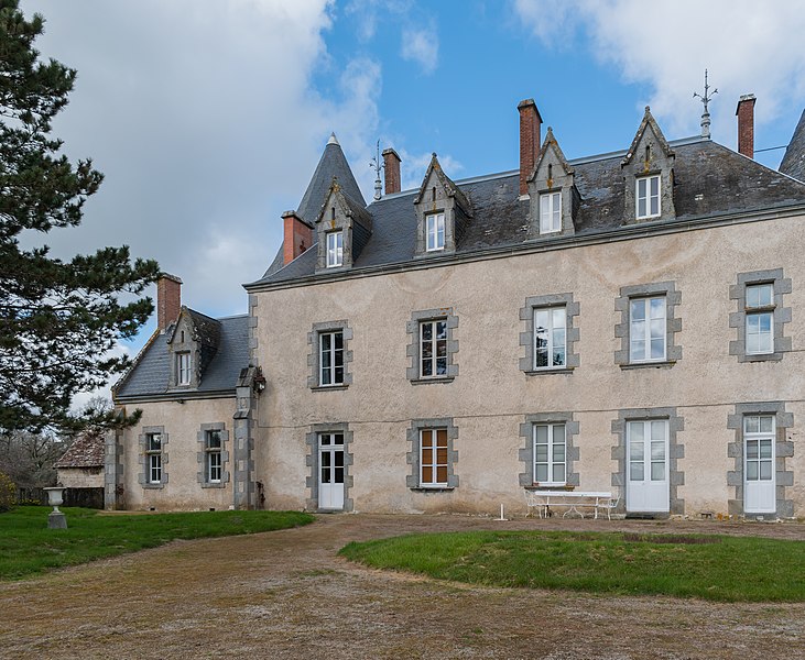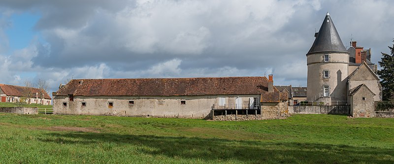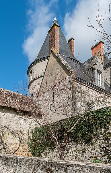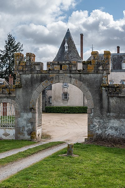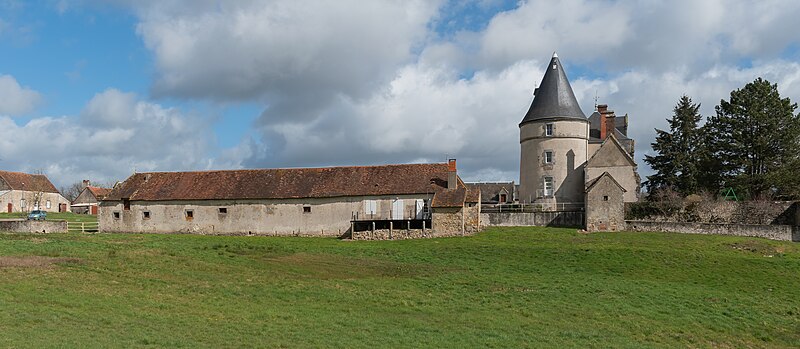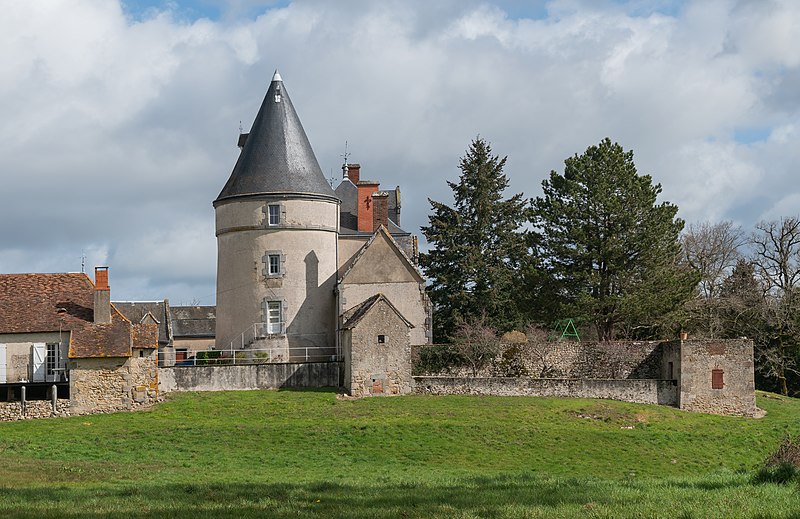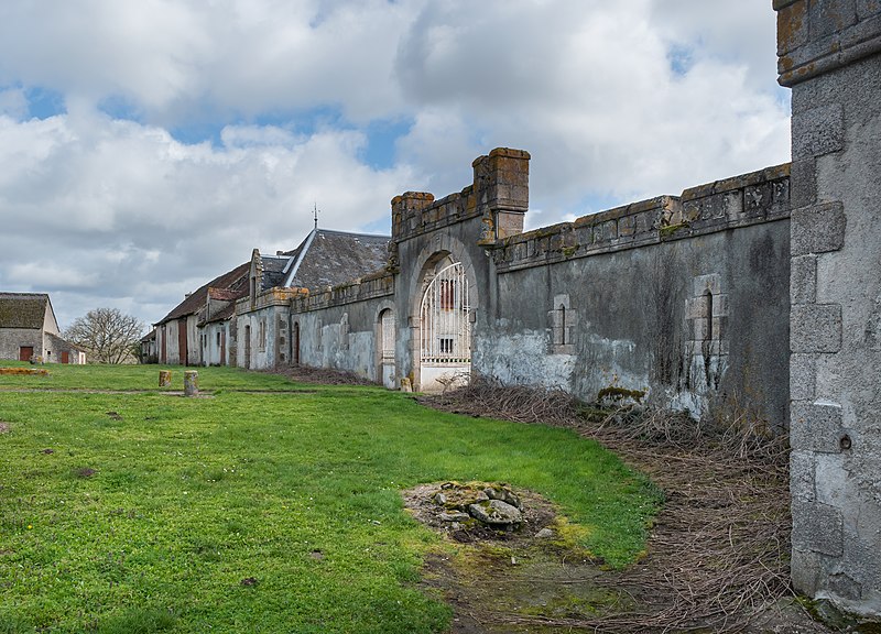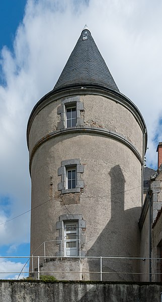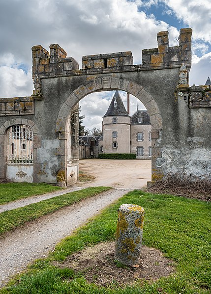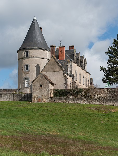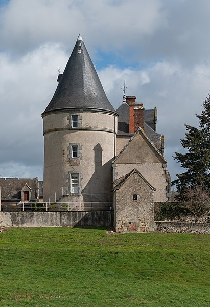 Ce colombier à pied circulaire domine l'ensemble du parc du château. Auparavant situé dans un espace dégagé, il a probablement été mis en valeur au XIXe siècle comme fabrique, en position surplombant le parc et un étang. D'après ses caractéristiques architecturales, il peut être daté des XVe ou XVIe siècles. Les murs bouclés du bâtiment mesurent 5,5 m de diamètre et sont coiffés d'un toit conique recouvert de tuiles plates. La porte d'accès, surélevée par rapport au sol, constitue une de ses particularités. À l'intérieur, 533 boulins sont disposés de manière régulière : six rangs se répartissent au-dessous et au-dessus du seuil d'envol, le premier rang se trouvant à 40 cm du sol. Le colombier conserve une potence supportant une échelle et un sol pavé.