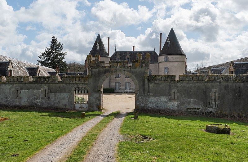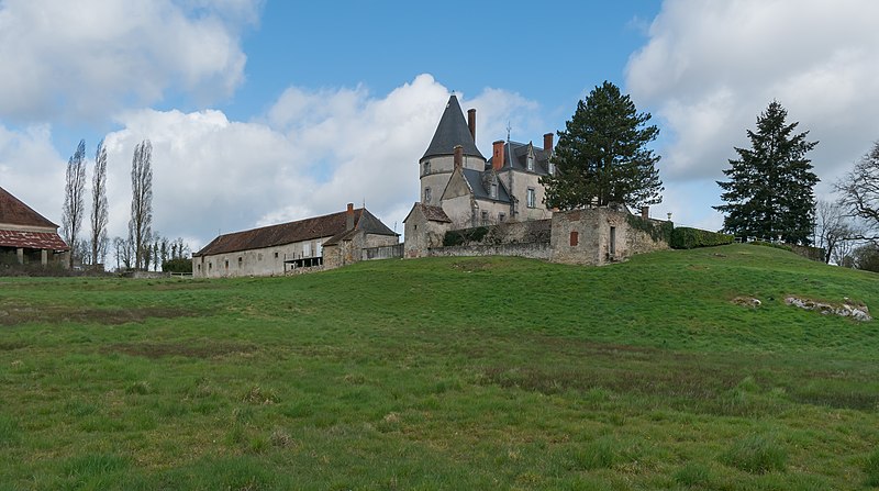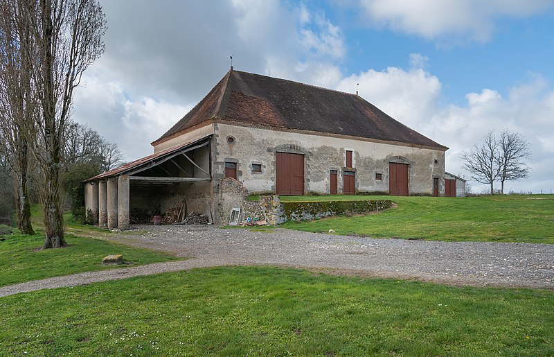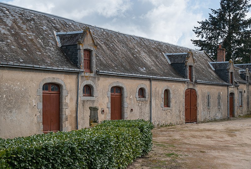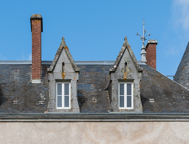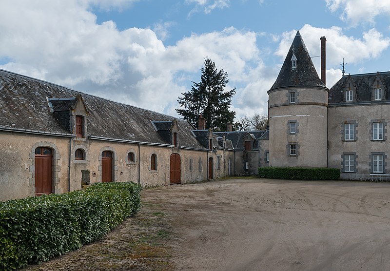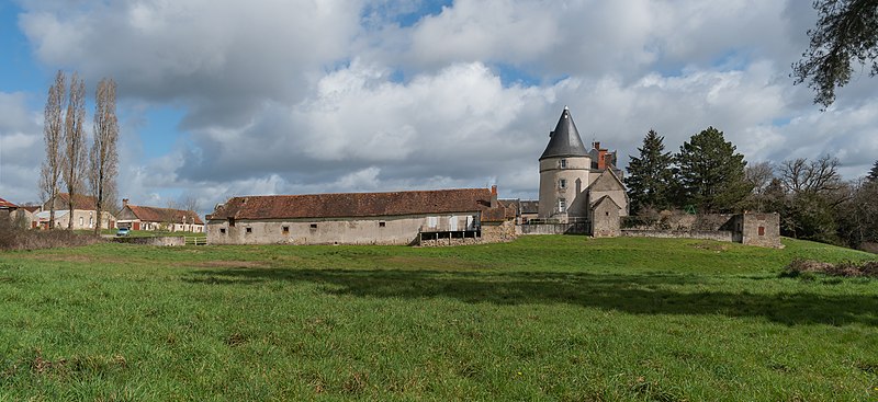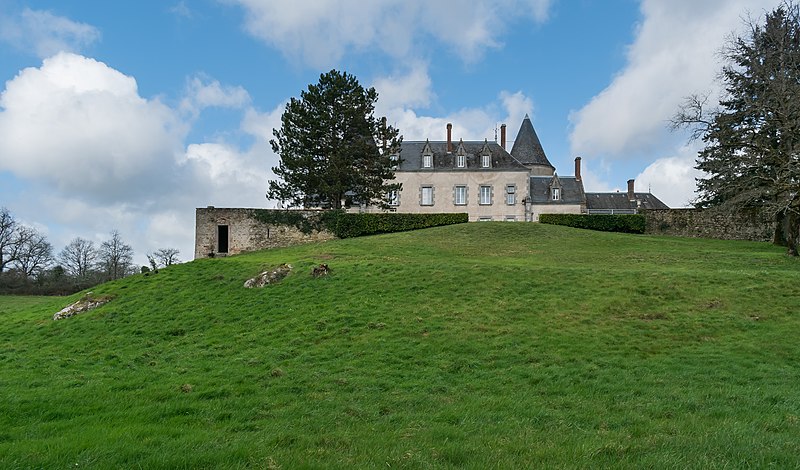 Ce colombier à pied circulaire domine l'ensemble du parc du château. Auparavant situé dans un espace dégagé, il a probablement été mis en valeur au XIXe siècle comme fabrique, en position surplombant le parc et un étang. D'après ses caractéristiques architecturales, il peut être daté des XVe ou XVIe siècles. Les murs bouclés du bâtiment mesurent 5,5 m de diamètre et sont coiffés d'un toit conique recouvert de tuiles plates. La porte d'accès, surélevée par rapport au sol, constitue une de ses particularités. À l'intérieur, 533 boulins sont disposés de manière régulière : six rangs se répartissent au-dessous et au-dessus du seuil d'envol, le premier rang se trouvant à 40 cm du sol. Le colombier conserve une potence supportant une échelle et un sol pavé.