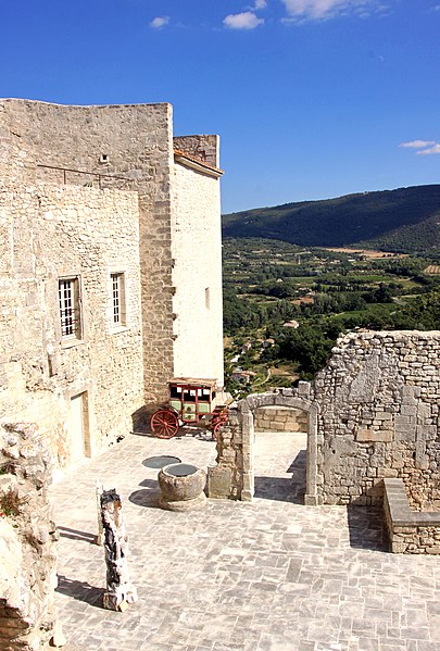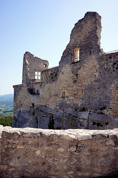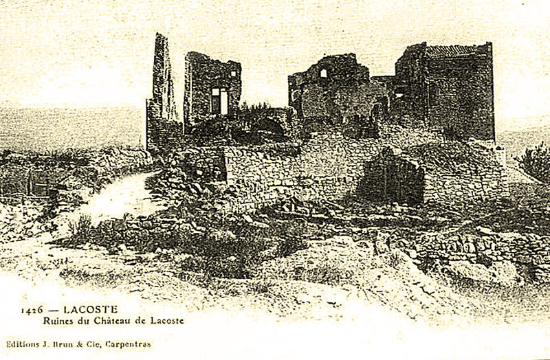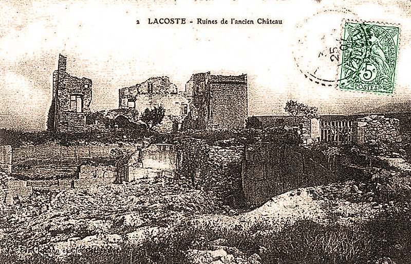 Le château de Lacoste, anciennement La Coste, se situe dans le village éponyme du Vaucluse, en région Provence-Alpes-Côte d'Azur. Les habitants l'appellent souvent « le château du marquis de Sade », en référence à l'un de ses propriétaires et à ses séjours sur place. Il est perché au sommet d'une crête du flanc nord du petit Luberon, qui domine le village. Sa position offre de larges vues sur la vallée du Calavon, les monts du Vaucluse avec le Ventoux et les Alpes en arrière-plan, ainsi que sur le village de Bonnieux voisin. L'origine du château remonte au XIe siècle, mais il a été largement transformé au fil du temps. Il appartint longtemps à la famille des Simiane, issue de la maison d'Agoult. Deux hypothèses sont avancées pour expliquer le passage des Simiane aux Sade : le mariage en 1627 de Diane Simiane avec Jean-Baptiste de Sade, ou, plus probablement, le legs en 1716 d'Isabelle Simiane à son cousin Gaspard François de Sade, seigneur de Saumane et de Mazan. Le marquis de Sade y séjourna à plusieurs reprises, notamment entre 1769 et 1772, puis s'y réfugia après sa fuite en Italie et avant son incarcération au donjon de Vincennes en 1777. Évadé lors d'un transfert, il s'y réfugia une dernière fois du 18 juillet au 26 août 1778 avant d'être reconduit à Vincennes. En 1772, lors de son plus long séjour, il fit construire dans le château un théâtre de 120 places. Sa correspondance, en particulier avec Gaufridy, notaire d'Apt, témoigne d'un « attachement extraordinaire » pour La Coste. Pendant la Révolution, le château fut vandalisé et en grande partie détruit en septembre 1792 ; ses matériaux furent revendus pour d'autres constructions. À cette époque, Sade, à Paris et membre de la section des Piques, exprima son désespoir face à cette perte. Criblé de dettes, il dut vendre le château et ses terres en l'an IV de la République (1796) à Rovère, député de Vaucluse originaire de Bonnieux. Rovère, bientôt victime du coup d'État du 18 fructidor, fut déporté en Guyane et mourut à Sinnamary en 1798. Le 29 juin 1816, le domaine fut vendu à Pierre Grégoire, menuisier et agriculteur ; l'acte mentionne le château « en ruine... sans portes, fenêtres ni fers et couvert en partie ». En 1952, André Bouer, professeur, acquit la propriété et se consacra à sa restauration. Le château a été inscrit au titre des monuments historiques le 21 août 1992. En 2001, le couturier Pierre Cardin l'acheta, s'engageant à le léguer à l'Institut de France à sa mort ; il y lança le Festival de Lacoste d'art lyrique et de théâtre, événement estival annuel organisé dans les carrières à l'ouest du château en ruine, et entreprit des travaux de restauration. En 2020, il créa le premier Festival du Cinéma de Lacoste et décéda le 29 décembre ; son neveu Rodrigo Basilicati Cardin se trouva en 2023 au centre d'une bataille judiciaire concernant l'héritage, dont le château. Le marquis de Sade a décrit ce lieu sous le nom de château de Silling dans Les Cent Vingt Journées de Sodome et dans La Marquise de Gange.