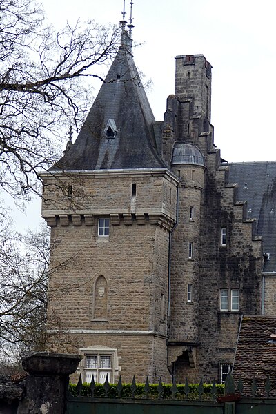 Le château de Lancin, situé dans la commune de Courtenay en Isère, fait partie d'un domaine comprenant le château du XIXe siècle, le parc qui l'entoure et des bâtiments agricoles. Son vocabulaire architectural emprunte aux styles néo-gothique et néo-Renaissance, éléments récurrents du Second Empire. Une autre source le décrit cependant comme une demeure néo-classique édifiée à la toute fin du XIXe siècle par l'architecte Louis Rigoct pour Monsieur Caquet d'Avaize. Les bâtiments agricoles — ferme, écuries et maison du gardien — relèvent d'une architecture d'esprit vernaculaire. La décoration intérieure et l'ameublement ont été réalisés par des artisans lyonnais : peintures murales, glaces, boiseries en noyer, faux marbres et vitraux y sont encore présents, ainsi que le mobilier d'origine. Depuis le 12 juin 2014, le château est inscrit au titre des monuments historiques. L'inscription protège le château dans son intégralité, les façades et toitures des communs et des écuries, ainsi qu'une partie du parc où subsiste un système hydraulique d'époque.