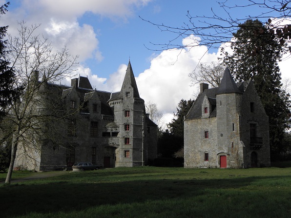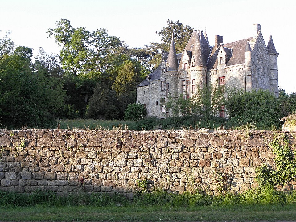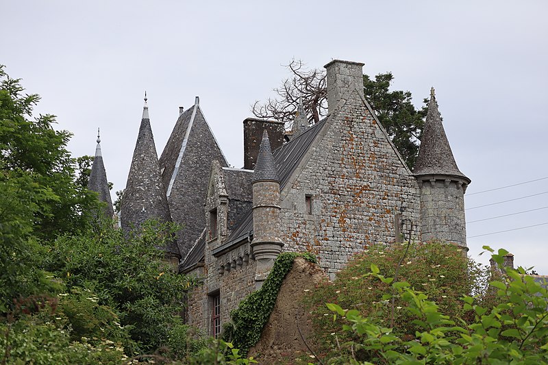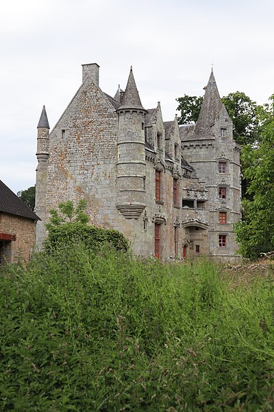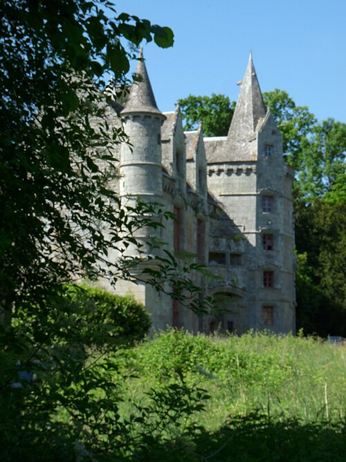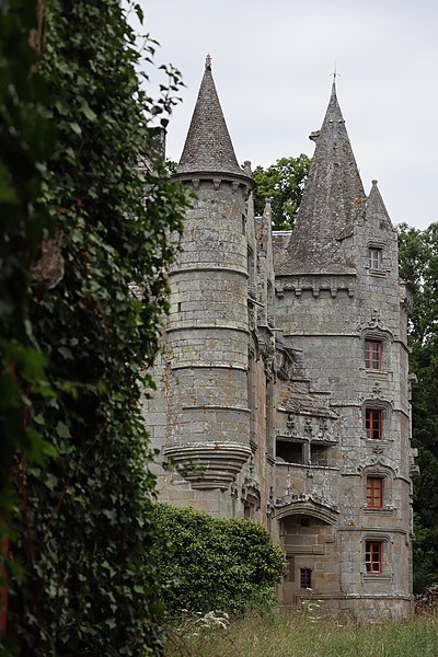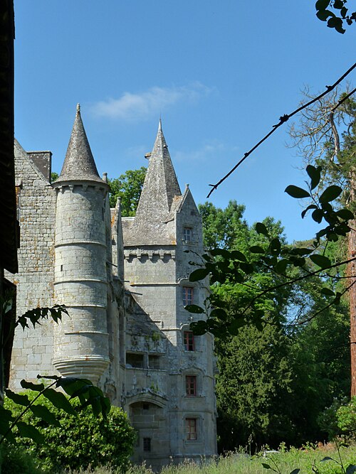 Le château de Lanrigan se situe dans le bourg de la commune de Lanrigan (Ille‑et‑Vilaine), au nord de l'église et le long de la route départementale D83. Le site occupait à l'origine une motte féodale à l'emplacement de l'ancien château, dont il subsiste aujourd'hui un pavillon ; cette motte aurait été l'œuvre des seigneurs de Langan au XIe siècle. Aux XIVe et XVe siècles, Lanrigan formait une place forte : on y relève un pavillon archaïque et la partie nord du château actuel, pourvue d'un système défensif comprenant une tour à mâchicoulis et des créneaux couverts. Maison seigneuriale de la paroisse, Lanrigan disposait du droit de haute justice ; ses possesseurs connus sont les familles de Lanrigan et de Langan, puis, par alliance vers 1501, les de Vendel, puis les familles du Bois‑le‑Houx, de la Bellinaye et de Fontlebon qui détenaient le domaine à la Révolution. Le château actuel se compose de deux corps de bâtiments principaux. Le premier, orienté est‑ouest, comporte trois niveaux et s'orne d'une tourelle polygonale sur la façade sud, percée d'une porte d'entrée et coiffée d'une poivrière à pans ; ses ouvertures sont de simples meurtrières chanfreinées, disposées suivant la montée en vis de l'escalier. La moitié orientale du logis fut abattue à la fin du XIXe siècle ; primitivement le bâtiment avait le double de sa longueur actuelle et la tour marquait alors le centre de la façade. L'édifice repose sur un schéma gothique traditionnel ; les fenêtres ont été remaniées au XIXe siècle et seules les meurtrières de la tourelle permettent de proposer une datation dans la première moitié du XVe siècle. Le second corps, situé à une douzaine de mètres à l'ouest, présente une distribution analogue ; sa façade arrière ouest est flanquée d'un pavillon central à deux tourelles élevé au XIXe siècle avec les matériaux provenant de la démolition de la moitié orientale du logis, et les fenêtres et lucarnes de cette façade ainsi que un contrefort coiffé d'un tourillon factice datent de la même époque. La façade orientale, en revanche, est restée intacte : du sud au nord se voit une tourelle d'angle en poivrière portée en encorbellement sur un cul‑de‑lampe mouluré et animée de quatre larmiers, puis deux travées d'ouvertures composées de fenêtres à arêtes moulurées et d'archivoltes flamboyantes surmontées de lucarnes à gable triangulaire. À deux tiers de la longueur du logis se situe une tour d'escalier polygonale, coiffée en poivrière et cloisonnée de larmiers ; son pan coupé offre une travée de quatre fenêtres superposées à archivoltes, surmontées d'une lucarne. À la jonction de la tour et du mur de façade, une loggia portée obliquement sur un arc surbaissé en surplomb surmonte la porte d'entrée. Au nord de la tour, la partie restante du bâtiment a été remaniée au XIXe siècle. Le décor sculpté est remarquable : archivoltes de la porte, des fenêtres et de la loggia s'épanouissent en bourgeons et fleurons, tandis qu'une corniche à modillons ornée de motifs flamboyants et de trilobes court le long de la façade et sous la toiture de la tour ; ces éléments caractéristiques situent la construction dans les toutes premières années du XVIe siècle, voire dans les dernières années du XVe siècle. Un projet de troisième bâtiment, non réalisé, devait assurer la jonction entre les deux parties du château : des pierres d'attente à l'angle nord‑est de la grosse tour indiquent qu'un bâtiment perpendiculaire vers l'est, probablement une grande galerie, était prévu. La façade ouest a été remaniée ; une source mentionne qu'elle fut réaménagée au début des années 1860 par l'architecte Jacques Mellet. Le château fait l'objet d'une inscription au titre des monuments historiques depuis le 26 mars 1973.
