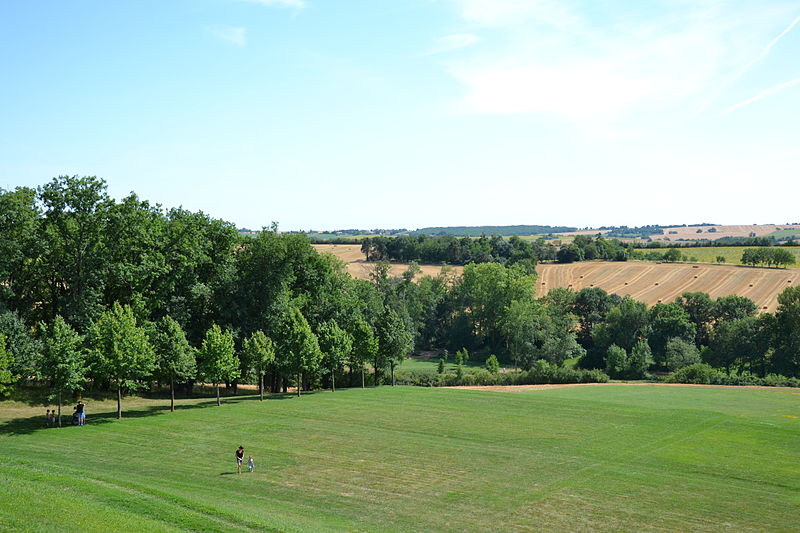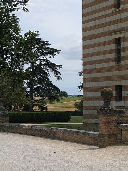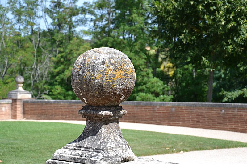 Malgré une topographie accidentée marquée par des versants abrupts, l’organisation du parc obéit à une conception classique avec un grand axe nord‑sud ; la déclivité a été traitée par des talus et des glacis engazonnés, selon les principes recommandés par Antoine‑Joseph Dézallier d’Argenville dans son ouvrage de 1709. Les travaux de restauration du parc, conduits en 1984 par Bernard Voinchet, ont restitué avec fidélité les terrasses, les allées et les vertugadins structurant les espaces. Le décor statuaire, réalisé par le sculpteur toulousain Marc Arcis (1655‑1739), subsiste partiellement : trois socles restent en place — pour Zéphire dans l’axe sud, pour Flore côté potager à l’ouest et pour Diane chasseresse côté bois à l’est — mais seuls quelques fragments des statues originales ont été conservés. De petites maquettes de ces œuvres, gardées dans l’atelier de Marc Arcis jusqu’à sa mort en 1739, se trouvent aujourd’hui au Musée des Augustins de Toulouse, ce qui permet de fixer 1739 comme date butoir pour l’ornementation du parc et d’en situer l’aménagement entre 1714 et 1739. Cet intervalle laisse également envisager l’intervention de Joseph Colomès, fils de Jean‑Pierre, qui reprend en 1722 le titre de baron de Laréole et habite alors de façon permanente le château. Enfin, la présence de deux cèdres majestueux de part et d’autre du parterre oriental témoigne d’un réaménagement au XIXe siècle.