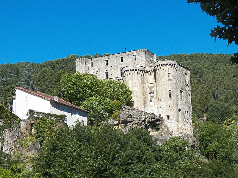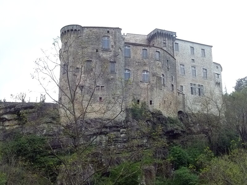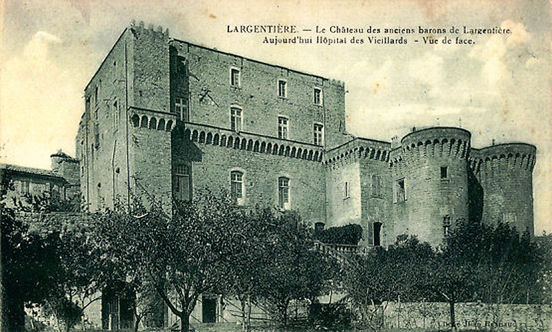 Le château de Largentière, d'origine XIIIe siècle, est un ancien château fort situé à Largentière (Ardèche, Auvergne-Rhône-Alpes) et inscrit au titre des monuments historiques. Il est bâti au ras du rocher et domine la ville en gradins. Les origines du site sont liées à l'exploitation de mines de plomb argentifère le long de la Ligne et aux rivalités entre l'évêché de Viviers et le comté de Toulouse pour le contrôle de ces richesses. Une mention ancienne indique qu'au IXe ou Xe siècle le chanoine Audebert possédait Largentière et Saint‑Pierre‑de‑Colombier. Dès le XIIe siècle, l'évêque de Viviers obtint le droit de battre monnaie, droit confirmé à plusieurs reprises puis abandonné à la fin du XIVe siècle, sans doute parce que les mines s'épuisèrent. Pour protéger les mines et affirmer sa souveraineté, l'évêque fit édifier sur un éperon dominant la Ligne une tour appelée Argentaria ou argentière, qui contrôlait la route vers Tauriers et Jaujac ; cette tour carrée, citée en 1210, devint le donjon du château. L'accès à ce donjon se faisait au premier étage ; ses murs avaient environ 3 m d'épaisseur et la tour atteignait environ 30 m de hauteur. Les rivalités avec les comtes de Toulouse aboutirent à des accords de partage : en 1198 le castrum de Ségalières fut divisé entre le comte et l'évêque, le comte recevant la moitié du fief et des mines tandis que l'évêque conservait l'autre moitié, elle‑même partagée entre coseigneurs. Le comte fit édifier une tour au sud du donjon épiscopal, dont ne subsiste que le soubassement et une terrasse semi‑circulaire, et les autres coseigneurs ajoutèrent des tours pour protéger l'accès de l'enceinte. La croisade des Albigeois et les conflits qui l'accompagnèrent influèrent sur la possession du site : l'évêque accorda des franchises aux bourgeois en 1208 pour obtenir leur soutien et la seigneurie changea de mains à plusieurs reprises jusqu'à l'intervention du roi de France, après quoi l'évêque de Viviers resta le seigneur principal et le produit des mines fut réparti entre l'évêque et le chapitre. À la fin du XVe et au début du XVIe siècle, les évêques Jean de Montchenu et Claude de Tournon agrandirent le château, renforcèrent l'enceinte, intégrèrent les deux tours et édifièrent un bâtiment dit « tour pentagonale » reliant les tours au donjon. Un puits fut creusé jusqu'au niveau de la rivière pour assurer l'autonomie en cas de siège, et Claude de Tournon est également associé à la construction d'une tour de l'horloge et d'une ligne de remparts entre le château et l'église. Après une longue période de déclin, en 1562 Victor Bermond de Combas et des troupes protestantes pillèrent et incendièrent le couvent des Cordeliers, massacrant les religieux, prirent la ville et occupèrent les châteaux de Largentière et de Montréal ; Victor de Combas fut tué la même année. Le château servit ensuite de résidence au gouverneur du Bas‑Vivarais pour le roi, qui y maintenait une garnison d'une trentaine d'hommes d'armes, et les troubles religieux sous Louis XIII marquèrent encore la région. En 1670, lors de la révolte de Roure, la ville tomba mais le château résista deux mois avant d'être délivré par un détachement commandé par d'Artagnan et le commandant Le Bret ; le chef des révoltés fut sévèrement puni. Le 5 novembre 1714, le marquis de Brison acheta le château, la baronnie et les droits seigneuriaux ; il remit en état l'édifice, transforma l'enceinte basse en perron à double escalier, perça de larges fenêtres et fit aménager une route carrossable bordée de marronniers entre la ville et le château. Le marquis adapta le château en demeure seigneuriale en y créant des étages et des aménagements de résidence, mais la famille se désintéressa ensuite du site. Pendant la Révolution et l'Empire, le château fut utilisé comme tribunal et prison, et en 1792 le comité révolutionnaire envisagea de brûler des tableaux issus du château. En 1816, la tour dite de Toulouse, qui s'élevait au‑dessus des autres, fut démolie et ses pierres réemployées pour construire une usine. La ville acheta le château en 1847 pour en faire un hôpital ; deux étages y furent ajoutés en 1858, d'abord couverts par une terrasse puis par une toiture qui engloba le donjon, lequel devint invisible de l'extérieur. Des annexes et des balcons en ciment furent ajoutés ultérieurement le long de la route de Tauriers et sur la façade sud‑ouest. Le château servit d'hôpital pendant plus d'un siècle, jusqu'en 1995, puis accueillit brièvement un lycée hôtelier, un musée et des associations avant d'être restitué à la commune. Des travaux de restauration menés par des bénévoles de l'association Chantier histoire et architecture médiévales commencèrent en 1997 et s'achevèrent en 1998. Les restaurations reprirent en 2013 : les balcons en béton furent démolis, la toiture et les combles furent retirés, faisant réapparaître le haut du donjon, dont la toiture a été restaurée en 2015. Le château est protégé par un arrêté du 31 mai 1927.