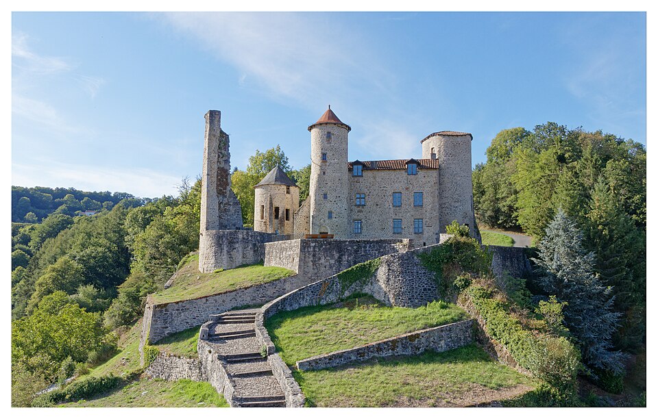 Le château de Laroque, aussi appelé château de Montal, est un château fort situé à Laroquebrou (Cantal), établi sur un puech dominant un pont sur la Cère et contrôlant l’ancienne route vers le Quercy et le Limousin. Avant les déprédations du XIXe siècle, il comprenait, outre le logis actuel, une seconde construction perpendiculaire reliant le donjon au sud. La tour del Moussou formait la poterne méridionale : sa base est encore visible au sommet de l’escalier d’accès et elle communiquait par un pont-levis avec la chapelle Notre‑Dame. Une tour carrée occupait le sommet du rocher del Moussou et fut en partie abattue en 1653 ; le premier étage de cette tour abritait une chapelle dédiée à la Vierge, attestée au XIVe siècle, qui a été démolie en 1887 et remplacée par une grande statue de la Vierge, faisant de Laroquebrou l’un des sites mariaux de la Haute‑Auvergne. Selon Bruno Phalip, le site castral primitif se trouvait sur un piton schisteux étroit, haut d’environ trente mètres et inaccessible, dont le sommet était couronné par une plate‑forme aménagée d’environ cinquante mètres. En 1562 les Protestants s’emparèrent du château, qui toutefois résista, et en 1794 il fut vendu comme bien national. La seigneurie a été liée à la famille de Montal ; la généalogie mentionne notamment Astorg II, marié à Marguerite de Montal, et les générations suivantes dont Durand II, devenu seigneur de Laroquebrou, et Durand III, qui accorda en 1281 une charte de franchise aux habitants. Raymond de la lignée fit hommage en 1251 pour Montal à Hugues IV de Rodez en tant que vicomte de Carlat; sont également cités Astorg III, Astorg IV et Déodat. La famille de Montal de Laroquebrou portait « d’azur à trois coquilles d’or au chef du même ». Le nom de la famille de Pérusse d’Escars apparaît également dans la notice. Le château est inscrit au titre des monuments historiques depuis le 5 juin 1972. Bibliographie citée : Louis de Ribier, Laroquebrou et ses seigneurs, et Jean‑Baptiste de Ribier du Châtelet, Dictionnaire statistique, ou Histoire, description et statistique du département du Cantal.