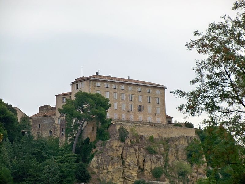 Le château de Lauris, perché sur un éperon rocheux au cœur du village de Lauris, domine la vallée de la Durance. Un château fort médiéval occupait originellement le site ; des caves voûtées, des portes et des vestiges enfouis dans les niveaux inférieurs en témoignent. Reconstruit après 1733, le bâtiment resta inachevé à la Révolution puis fut complété et réorganisé au XIXe siècle. L’architecte Pierre Broise le remania en 1964-1968 pour le propriétaire de l’époque, les Missions étrangères. L’élévation visible aujourd’hui, issue des campagnes du XVIIIe et du XIXe siècles, repose sur ces niveaux médiévaux inférieurs. Le domaine se compose du corps principal et de ses dépendances au centre, du Grand Jardin au nord‑ouest et du Jardin Neuf à l’est. Le Jardin Neuf, attesté au XVIIe siècle et complété au XVIIIe, est organisé en plusieurs terrasses et conserve l’ensemble du système hydraulique — mines ou galeries de captage, réservoirs, bassins décoratifs et utilitaires — ainsi que deux fontaines monumentales. Sur les terrasses sud‑est se trouve le Jardin conservatoire des plantes tinctoriales, un jardin botanique entièrement consacré aux plantes à couleur, présenté comme unique en Europe et distingué par le label « Jardin remarquable » ; il offre un large panorama sur la vallée de la Durance. Par arrêté du 23 juin 2003, les terrasses (Grand Jardin et Jardin Neuf), leurs murs de soutènement, escaliers, le réseau hydraulique (mines, réservoirs, bassins, fontaines, nymphée), certaines dépendances ainsi que les façades et toitures de divers bâtiments du domaine sont inscrits au titre des monuments historiques. La notice officielle est répertoriée dans la Base Mérimée sous la référence PA84000036.