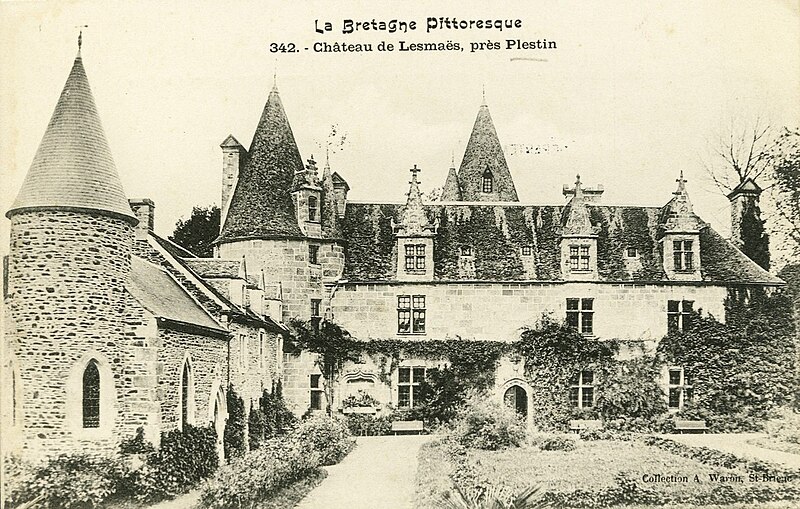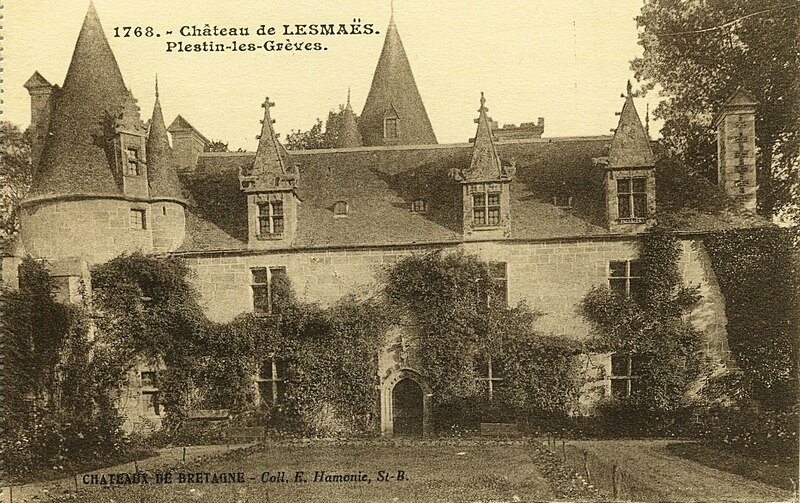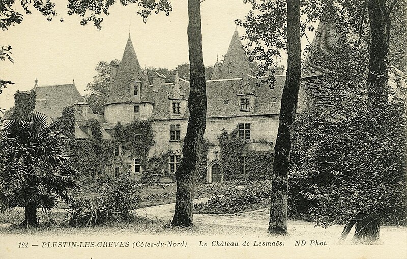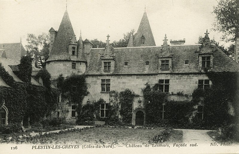 Le château de Lesmaës se dresse à Plestin-les-Grèves, dans les Côtes-d'Armor en Bretagne. Édifié autour de 1500, il comprend une chapelle funéraire de la famille de Kergariou, restaurée et remaniée au XIXe siècle. L'ensemble, construit en granite et schiste, adopte un plan en L. Le corps de logis principal forme deux ailes en équerre et comporte trois pièces au rez-de-chaussée, avec une tour d'escalier circulaire dans-œuvre placée dans l'angle antérieur gauche. La façade antérieure, montée en grand et moyen appareil de granite, est percée de trois travées composées de croisées et de lucarnes à pignons architecturés. L'élévation postérieure présente une tour d'escalier circulaire demi-hors-œuvre centrale. Sur la façade principale, les fenêtres à meneaux sont surmontées de frontons ornés de statues d'animaux rampants. L'aile en retour d'équerre est prolongée au sud par une chapelle à vaisseau unique, terminée par une tour coiffée d'un toit conique. Un parc entoure la demeure. Le château est inscrit au titre des monuments historiques par arrêté du 5 février 1927.
