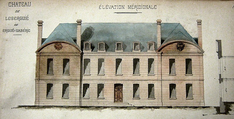 Le château de Lezergué se situe au lieu-dit Lezergué, sur la commune d'Ergué-Gabéric, dans le Finistère en Bretagne. Il présente une vaste façade en granit, élevée sur deux étages et flanquée de deux pavillons coiffés de frontons circulaires portant des écussons. À l'intérieur, un escalier est formé par deux voûtes plates. Certaines pièces suggèrent que l'édifice n'a peut-être jamais été achevé : absence d'enduits et de peintures, boiseries non traitées. Le château est inscrit au titre des monuments historiques par arrêté du 9 décembre 1929. Un dessin de Louis Le Guennec, daté de 1929, est associé au dossier. Des ressources complémentaires sont accessibles dans la base Mérimée et sur les portails consacrés aux monuments historiques, au Finistère et aux châteaux de France.