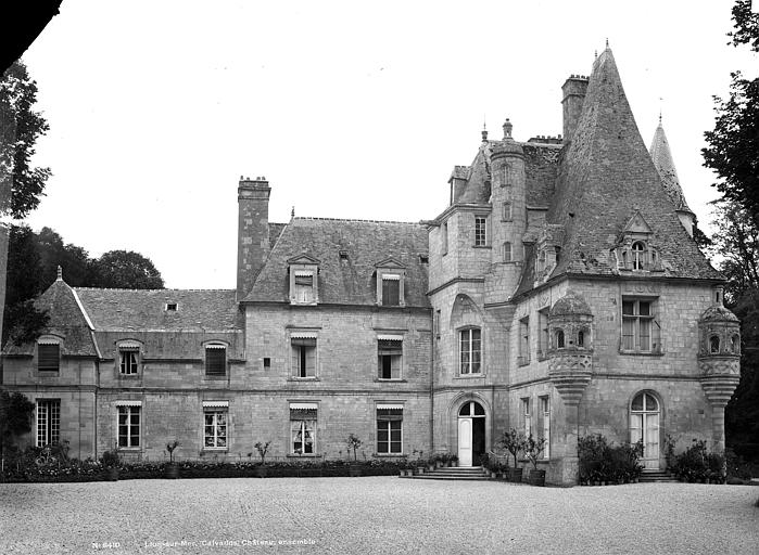 Au titre des monuments historiques, les façades, toitures et éléments du pavillon carré, de la tourelle contiguë et du pavillon d'escalier sont classés par arrêté du 7 juillet 1926 ; la chapelle est inscrite par arrêté du 17 juillet 1946 ; les façades, toitures et caves de l'aile ouest sont classées par arrêté du 17 septembre 1969 ; enfin, les façades et toitures des bâtiments de communs, y compris la serre, ainsi que l'assiette du parc avec ses murs de clôture et les sauts-de-loup, sont inscrits par arrêté du 4 juin 2007.