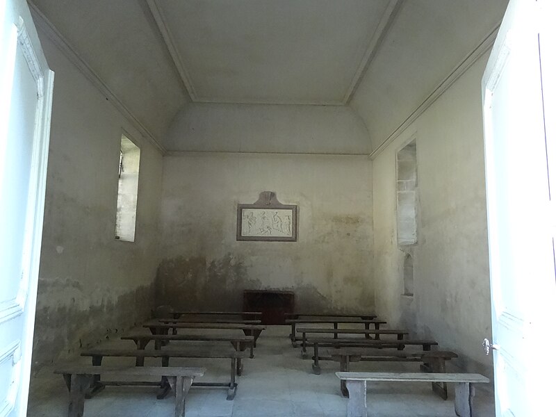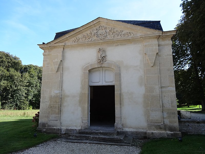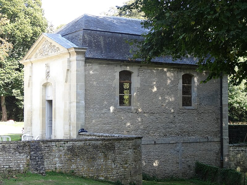 La chapelle, élevée au début du XVIIIe siècle par Robert-Pierre Le Sens, est un édifice rectangulaire couvert d'une toiture à la Mansart, à façade occidentale pourvue d'un fronton triangulaire orné de feuillage ; chaque mur gouttereau est percé de deux grandes fenêtres et l'intérieur conserve un bas-relief représentant la Présentation de la Vierge au Temple. Destinée au culte catholique, la chapelle servit entre 1863 et 1899 à la célébration de rites protestants. Parmi les communs, un bâtiment jadis mitoyen du logis subsiste à l'ouest ; près du portail du XVe siècle s'élèvent une grange et un long bâtiment abritant anciennement des activités agricoles, dont la fabrication du cidre attestée par un pressoir et une meule, édifices datés du XVIIe ou plus vraisemblablement du XVIIIe siècle, et une glacière du XVIIIe siècle a été restaurée entre 2020 et 2021.