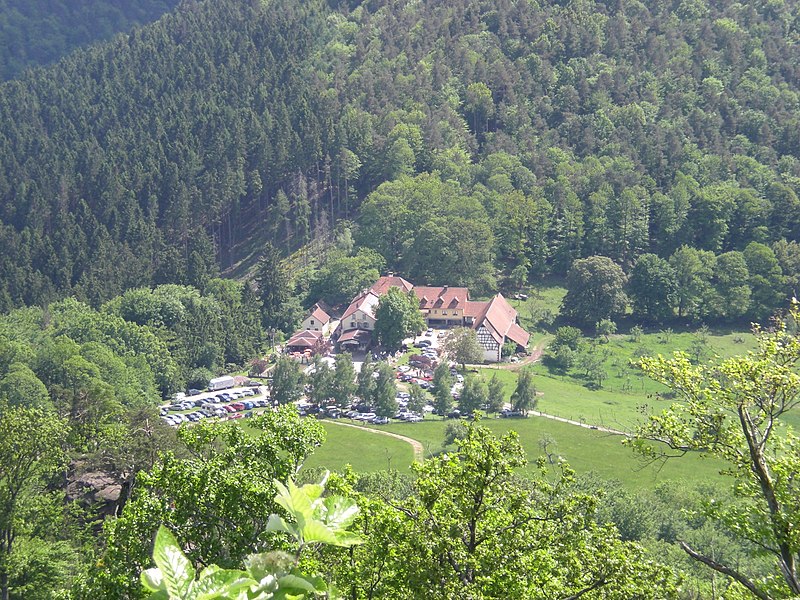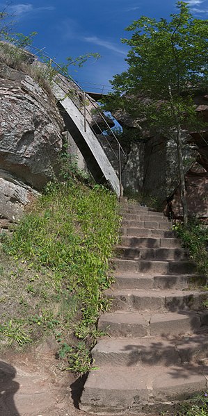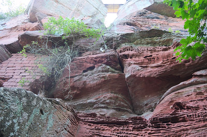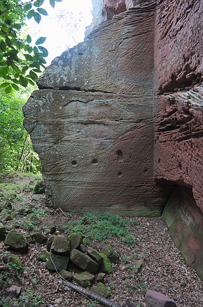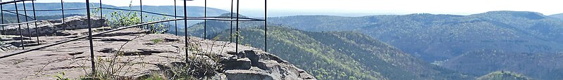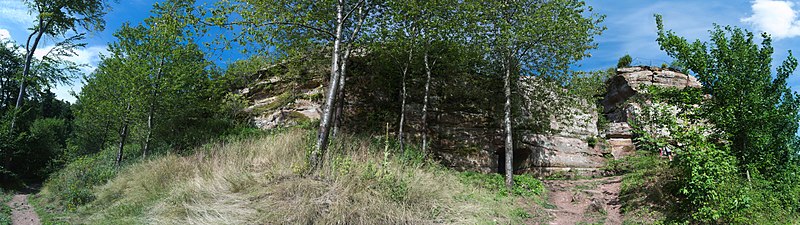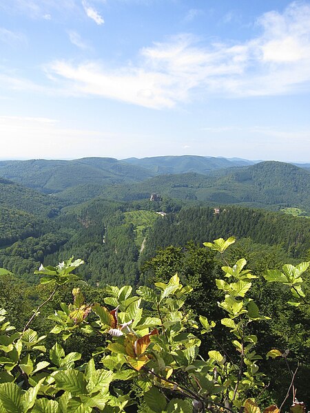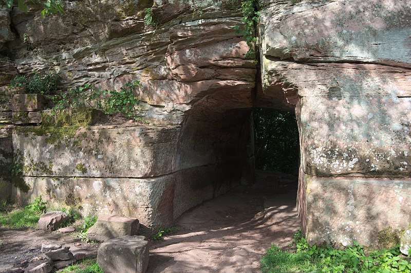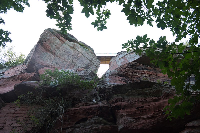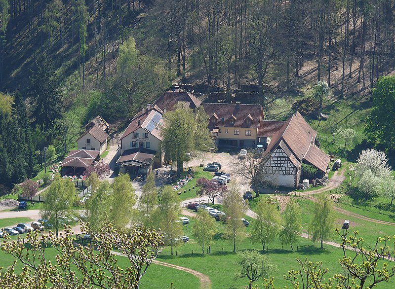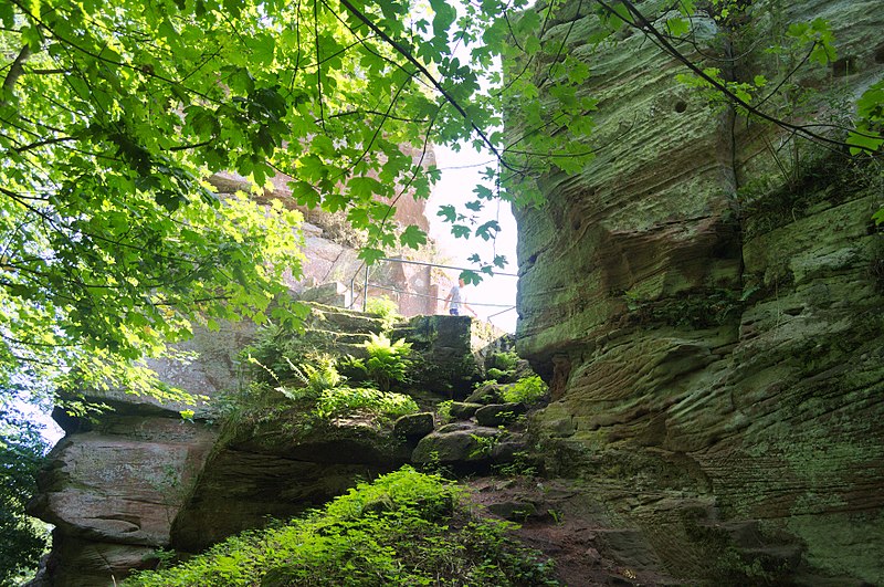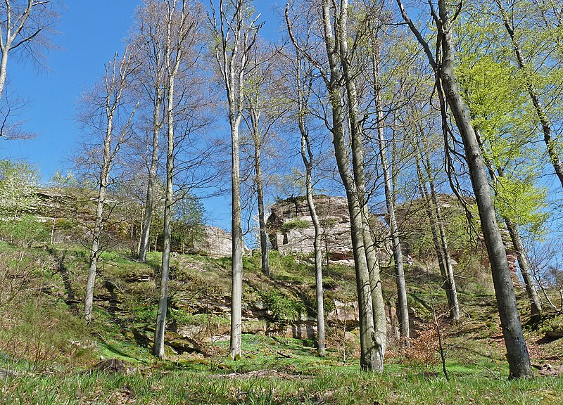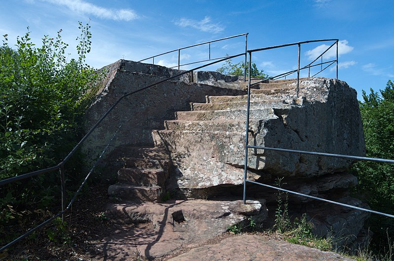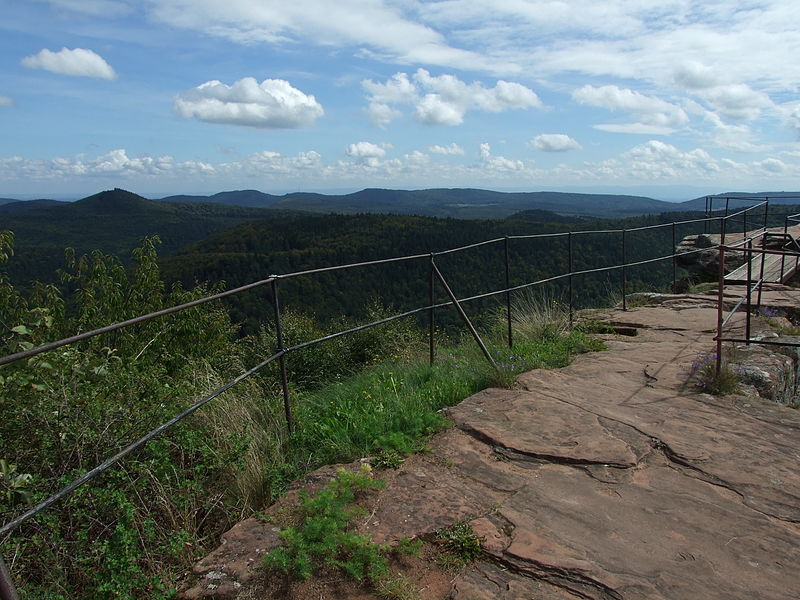 Le château de Lœwenstein, situé sur la commune de Wingen dans le Bas-Rhin, est classé au titre des monuments historiques depuis décembre 1898. Il se compose de deux parties mitoyennes qui, à un moment de son histoire, appartinrent à des seigneurs distincts ; aujourd’hui, seule une citerne subsiste clairement. Élevé au XIIIe siècle par les ministériaux de la famille de Loewenstein, apparentée aux Fleckenstein, il est mentionné pour la première fois à la fin du XIIIe siècle et fut lié aux Habsbourg avant d’être inféodé à un membre de la maison d’Ochsenstein. Vers 1370-1375, Ottemann IV d’Ochsenstein céda la partie sud en arrière-fief à Hans Streuff de Landenberg, ce qui provoqua probablement des remaniements, parmi lesquels une tourelle d’escalier appuyée sur la paroi sud. En 1383, Ottemann engagea la partie nord à Hans de Bitche. À la fin des années 1380 (1386-1387), le château fut investi et détruit par la ville de Strasbourg et Jean de Lichtenberg, après être devenu le refuge de chevaliers brigands ; il ne fut vraisemblablement pas reconstruit. Les Ochsenstein gardèrent la jouissance des ruines jusqu’à leur extinction puis les biens passèrent, au fil des successions, à Puller de Hohenburg (1482), aux comtes de Deux-Ponts-Bitche (1485), aux comtes de Hanau-Lichtenberg (1570) puis au landgraviat de Hesse-Darmstadt (1736), qui en restèrent propriétaires jusqu’à la Révolution. Les vestiges subirent d’autres dégradations, notamment des dommages infligés par les troupes françaises du général Monclar en 1676-1677. Le site est également connu sous l’appellation Lindenschmidt, attestée sur des cartes allemandes du XIXe siècle ; ce toponyme, issu apparemment de Linkenschmidt, renvoie à une légende locale selon laquelle un chef de pillards ferrerait ses chevaux à l’envers pour brouiller les pistes. La tradition raconte qu’il fut capturé avec son fils et son valet, jugé à Schönau et pendu avec eux, illustrant la maxime populaire « mitgegangen, mitgefangen, mitgehangen ». Pour accéder au site depuis Lembach, prendre la route de Bitche puis la route forestière jusqu’au Gimbelhof, puis suivre le sentier du Club Vosgien balisé de pastilles blanches cerclées de rouge jusqu’au parking du Hohenbourg ; le reste du parcours est fléché.