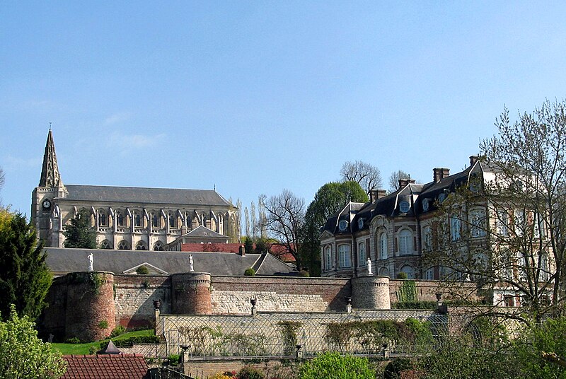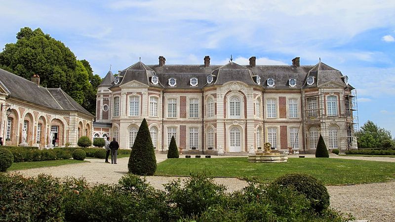 Le château de Long, propriété privée ouverte à la visite, se situe à Long dans la Somme, entre Abbeville et Amiens. Il remplace une petite forteresse médiévale qui contrôlait la chaussée traversant la vallée de la Somme. La résidence actuelle, surnommée « Folie de Buissy », a été construite dans la première moitié du XVIIIe siècle par Honoré-Charles de Buissy ; l'architecte Charles-Étienne Briseux en a dressé les plans, s'inspirant d'une planche de son recueil L'Art de bâtir les maisons de campagne. À la mort d'Honoré-Charles en 1762, son fils Pierre de Buissy poursuivit les travaux et fit décorer l'intérieur ; Jean-Baptiste Huet participa aux boiseries, dont certaines, démontées puis vendues aux États-Unis, furent rachetées par Gérard de Berny et installées dans l'actuel musée de l'Hôtel de Berny à Amiens. Le château passa ensuite entre plusieurs familles et fut acquis en 1871 par Octave de Rouvroy ; les armes de la famille de Rouvroy ornent encore la façade, aux côtés de celles de la famille de Chabenat de Bonneuil. Héritier mineur, René de Rouvroy et son épouse Hélène de Francqueville d'Abancourt purent entretenir le domaine grâce à leurs ressources réunies jusqu'en 1914, mais la Première Guerre mondiale affecta leurs revenus. En 1916 la famille de Rouvroy vendit la propriété au comte Gaétan de Panévinon de Marsat ; sa fille Françoise en hérita mais n'y résida pas et le château fut abandonné dans les années trente. Après une longue période de délabrement, l'industriel Roger Van Glabeke acheta et restaura l'édifice en 1964, obtint le grand prix Chefs-d'œuvre en péril et le revendit en 1999. Édifié sur une terrasse dominant la Somme canalisée et ses étangs, le château associe brique rose et pierre blanche : le corps de logis, à deux étages et toit mansardé, est rythmé par trois avant-corps à pans latéraux ornés de sculptures, quatre consoles à bouquets supportent la toiture et la clé de la porte principale porte un masque symbolisant la force ; la façade orientale, moins décorée, présente une disposition comparable. Le parc de vingt hectares comprend une pelouse bordée d'arbustes taillés à la française, des statues, un lavoir et des serres de la fin du XIXe siècle abritant diverses plantes (rosiers, clématites, bougainvilliers, lauriers roses, citronniers, canas, agapanthes), ainsi qu'un étang de six hectares et un bois de quatre hectares. Les communs forment un long bâtiment encadré de deux pavillons reliés au corps central ; la porte monumentale à arc surbaissé est soulignée par un appareillage à refends et un fronton triangulaire. On note enfin la présence d'un colombier octogonal du XVIIIe siècle en brique et pierre, avec chaînes d'angle harpées. Bibliographie : ouvrages de Josiane Sartre, Philippe Seydoux, Roger Van Glabeke et un fascicule vendu à l'entrée du château figurent parmi les références.