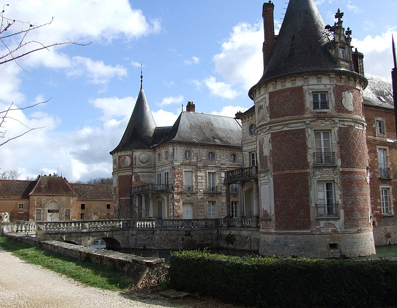 Le château de Longecourt‑en‑Plaine se situe au centre du village, dans un parc de 40 hectares bordé par l'Oucherotte et entouré de douves franchies par trois ponts dormants. Le site a d'abord accueilli une maison forte de plaine du XIIIe siècle, dont seules les cuisines subsistent, tandis que la vieille forteresse fut abandonnée et partiellement démantelée en 1421 lorsque la duchesse Marguerite de Bourgogne fit réemployer ses pierres pour les fortifications de Rouvres‑en‑Plaine. Après être passé de Robert de Boisleux au duc Robert II puis, en 1323, à Édouard Ier de Bar, le domaine demeura de jure aux sires de Bar jusqu'à sa cession en 1436 par René d'Anjou à Jean de Fribourg. À l'état de ruine, le site ne conservait qu'une « cave » utilisée comme cuisine, une motte et des fossés ; Jean de Fribourg fit reconstruire un moulin et privilégia les aménagements du domaine seigneurial. En 1459, la famille de Baissey hérita du lieu et entreprit une reconstruction en brique, initiée par Jean puis poursuivie par Antoine à son retour des guerres d'Italie, travaux qui s'achevèrent en 1539 sous Claude de Baissey ; le plan général, la chapelle et les douves datent de cette période, de même que la restauration des bâtiments de la basse‑cour et la construction d'un colombier. Catherine de Médicis, accompagnée du jeune roi Charles IX, fut reçue dans la demeure en mai 1564, et en juin 1593 la forteresse fut le théâtre d'un combat entre Ligueurs et partisans d'Henri de Navarre, la prise du château provoquant la fuite des Royalistes vers Vergy. Dévastée en 1636 par les Impériaux de Gallas, la seigneurie passa ensuite entre plusieurs mains ; à la fin du XVIIe siècle Jacques Berbis fit dévier le cours de l'Oucherotte en 1690, aménager des jardins aujourd'hui disparus et supprimer le corps de bâtiment nord pour transformer l'ancienne place forte en demeure. La transformation la plus importante eut lieu de 1757 à 1761 par l'architecte Nicolas Lenoir dit « Le Romain » pour Nicolas‑Philippe Berbis : de nouvelles baies furent ouvertes, des guirlandes et décors de stuc réalisés par des spécialistes allemands et italiens furent appliqués en façade, des portiques d'ordre toscan furent ajoutés en avancée sur les ailes et des balcons à balustrades aménagés. L'intérieur du corps central fut entièrement réaménagé avec un hall à colonnes au rez‑de‑chaussée, un vaste salon décoré de stuc imitant le marbre à l'étage, le remplacement des escaliers à vis par un escalier intérieur à double rampant et la redéfinition du mobilier en accord avec la nouvelle organisation. Une inspection de 1793 signala l'excellent état du château et proposa, sans suite, d'en faire une manufacture d'étoffes de laine. Le XIXe siècle modifia encore l'aspect de la cour intérieure par l'adjonction d'une galerie d'un étage éclairée de larges baies, la construction d'un pont en 1860 et la restauration des lucarnes des tours dans un style néo‑gothique ; les stucs du grand salon, saccagés lors de l'occupation allemande de 1870, furent ensuite restaurés. Pendant la Seconde Guerre mondiale, le château et quelques maisons voisines furent réquisitionnés par les Allemands du KG55 pour loger officiers et services, puis de novembre 1944 à mars 1945 le 320th Bomber Group américain y établit son quartier général tandis que le 441th Squadron campait sous tente dans les jardins. Inscrit aux monuments historiques par arrêté du 20 septembre 1946, le château est aujourd'hui habité par la famille Le Gouz de Saint‑Seine et propose un hébergement comprenant cinq chambres et une suite. Sur le plan architectural, le quadrilatère flanqué de quatre tours résulte des travaux menés sous les Baissey entre 1459 et 1539 ; les cuisines, vestiges du premier édifice, conservent une voûte retombant sur un pilier central et des culots ornés de grotesques, angelots aux postures indécentes. La chapelle castrale, logée dans la tour nord‑est à la fin du XVe siècle, présente des voûtes d'ogives à liernes et tiercerons ornées de feuillages et de clefs d'armoiries, une piscine ménagée dans l'épaisseur du mur et un pavement de carreaux émaillés armoriés alternant avec des dalles de pierre. Le grand salon conserve des décors de 1756 — palmiers, guirlandes de roses et un « bain de Diane » surmontant la cheminée — ainsi qu'un mobilier du XVIIIe siècle et des panneaux de stuc. Les remarquables pavements de faïence datés de 1495, à la charnière du Moyen Âge et de la Renaissance, montrent des motifs armoriés et des représentations nouvelles comme des portraits en médaillon ; Antoine de Baissey y associe la tradition du blanc et bleu et le savoir‑faire d'un artisan italien. Un portrait de Marie de Bourgogne orne l'escalier menant à la galerie, et les jardins conservent une collection de rosiers.
