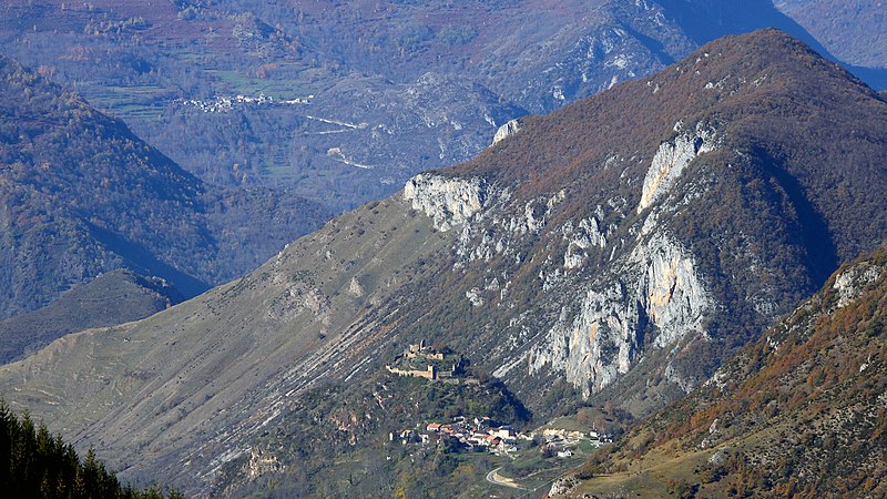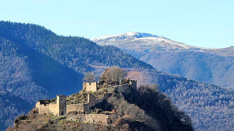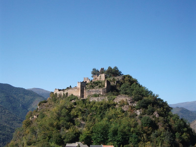 Les ruines du château de Lordat dominent la commune de Lordat, en Ariège, depuis un piton calcaire perché à 965 mètres d'altitude ; ses murailles surplombent de 400 mètres la haute vallée de l'Ariège, le Sabarthès. L'occupation du site remonte probablement aux IXe–Xe siècles et Lordat est mentionné pour la première fois en 970 comme chef-lieu d'un ministerium ; un castrum apparaît dans les sources au XIe siècle. En 1034, Bernard, comte de Carcassonne, cède le domaine à son fils cadet Roger, premier comte de Foix. Durant la croisade contre les Albigeois, le château servit de refuge aux Cathares, et, à la fin du XIIIe siècle, il fut pris par le roi d'Aragon qui en ordonna la destruction. Abandonné par la famille de Lordat à l'époque des guerres de Religion, il fut démantelé sur l'ordre d'Henri IV en 1582 puis signalé en ruine et désert dans un texte de 1672, qui rappelle aussi son emploi ancien comme prison. Le site conserva néanmoins une influence locale et la famille Lordat semble avoir gardé des possessions dans la région jusqu'au XIXe siècle, comme en témoigne un récit populaire rapportant les derniers seigneurs. Classé monument historique le 18 septembre 1923, le château a fait l'objet d'un bail emphytéotique signé en 1996 entre ses propriétaires et la Communauté de communes des Vallées d'Ax, puis de campagnes de consolidation et de mise en valeur engagées par la collectivité à partir de 1999. Un diagnostic architectural conduit en 2012-2013 a permis de définir un programme de sécurisation et de préservation ; une première phase de travaux en 2015 a consolidé la poterne sud, des logis, la porte intérieure et une tour ouverte à la gorge. Le site a rouvert au public le 4 juin 2016 et propose depuis des visites et des animations estivales.