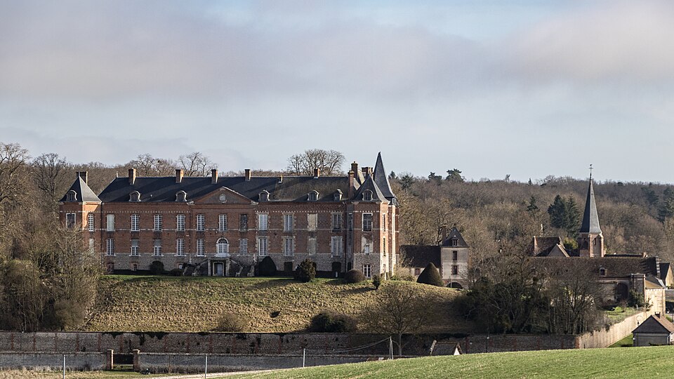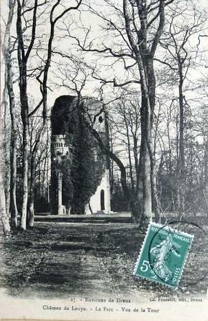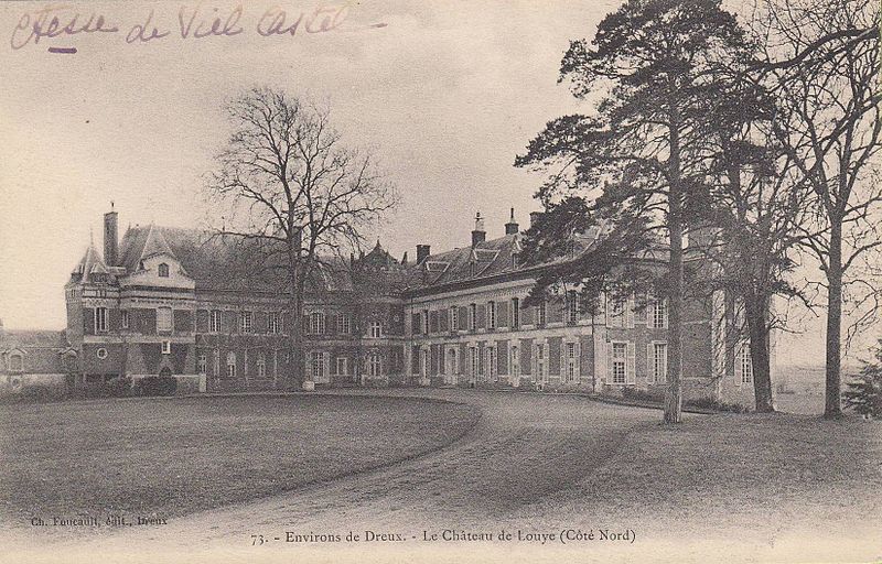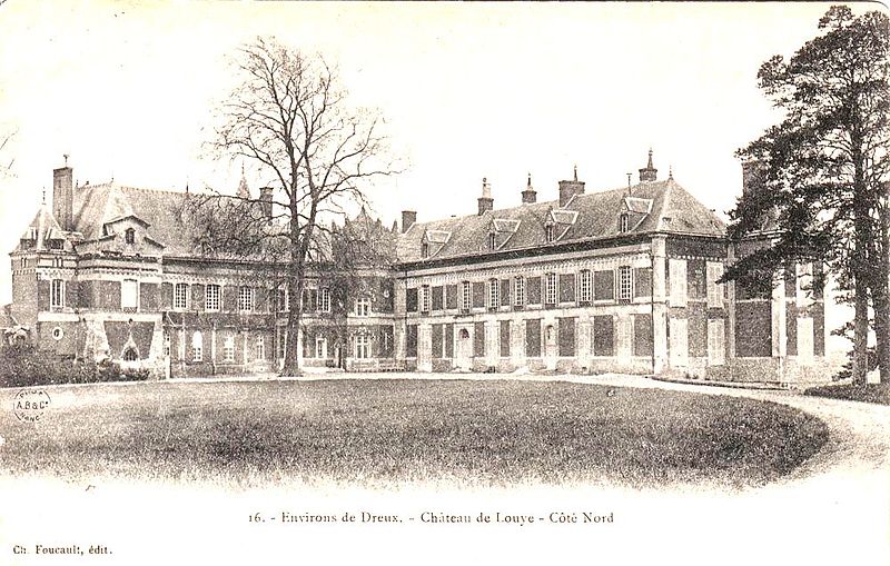 Le domaine de Louye, situé dans la commune de Louye (Eure), s'élève sur l'emplacement d'une forteresse médiévale mentionnée en 1180 et 1194, intégrée à la ligne de défense du duché de Normandie. De cette forteresse subsistent l'implantation du château et quelques vestiges de maçonneries. Reconstruit à la fin du XVe siècle par la famille de Dreux selon un plan en équerre, il présente des décors de briques vernissées et une basse-cour qui comprenait autrefois four à pain, buanderie, menuiserie, écuries et chenil. Une partie du logis a été remaniée et dotée d'une façade classique au XVIIIe siècle. Vers 1810, l'architecte Berthault a enrichi la façade sur cour d'un décor mêlant éléments d'inspiration égyptienne pour une aile et gothique pour l'autre. L'intérieur, largement transformé à la fin du XIXe siècle, conserve néanmoins des éléments plus anciens : voûtes d'ogives, culs-de-lampe sculptés, la salle dite du chartier, la grande salle haute couverte d'une charpente en carène du XVIe siècle et des vestiges de peintures murales dans la salle aux Cerfs. Le château se compose de plusieurs tours : une tour massive, appuyée sur des restes du donjon du XIIe siècle avec parement de silex, une tour plus haute abritant l'entrée principale et une grande pièce voûtée surmontée de la salle aux Cerfs, et une troisième tour reliant les ailes est et ouest ; la façade est ornée de dessins en briques bleues formant divers motifs. L'aile est, élevée à la fin du XVe siècle, conserve un très haut comble ; l'aile ouest, remaniée au XVIIIe siècle, a été prolongée en conservant le parement de silex et de brique pour composer une façade symétrique autour d'un perron central ; une tour d'escalier de la Renaissance, restaurée dans l'esprit troubadour, réunit les deux ailes. Le domaine comprend également un vaste ensemble de communs organisés autour d'une cour, un parc ordonnancé agrémenté de fabriques — la plus remarquable étant une tour néogothique dite de Malborough —, un grand potager et de nombreuses dépendances de la fin du XIXe siècle, dont une ferme modèle et des aménagements hydrauliques. Plusieurs familles se sont succédé à la tête du domaine, depuis son rattachement au domaine royal jusqu'aux propriétaires des XIXe et XXe siècles et, selon les sources, à la famille Lepic. Le nom de Louye est d'origine incertaine : il pourrait traduire un nom celtique inconnu ou dériver du latin auditus, « l'ouïe », en référence aux échos, aux vents ou à une anecdote de veneur. L'ensemble du domaine, y compris la clôture, les bâtiments, le parc et le potager, est inscrit au titre des monuments historiques par arrêté du 17 avril 2000.