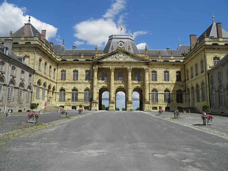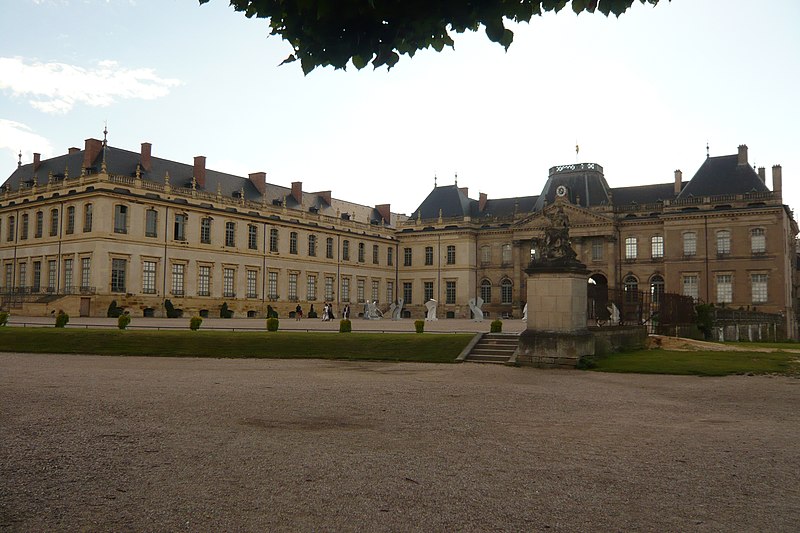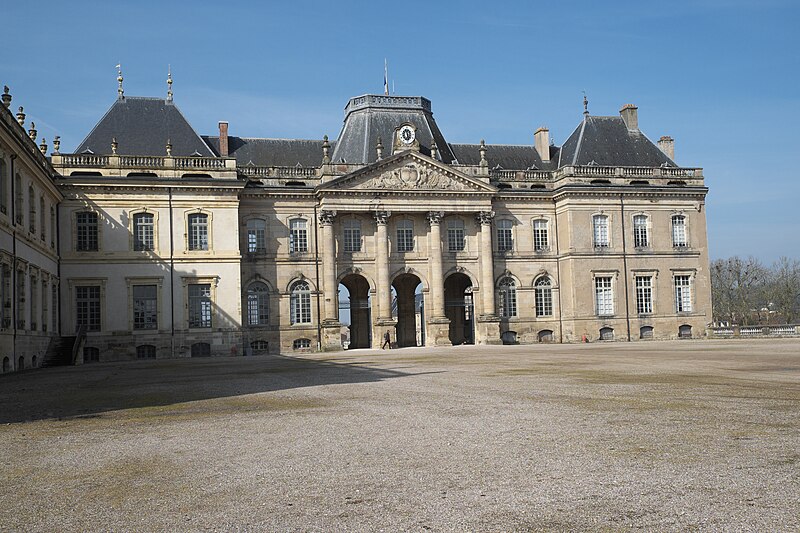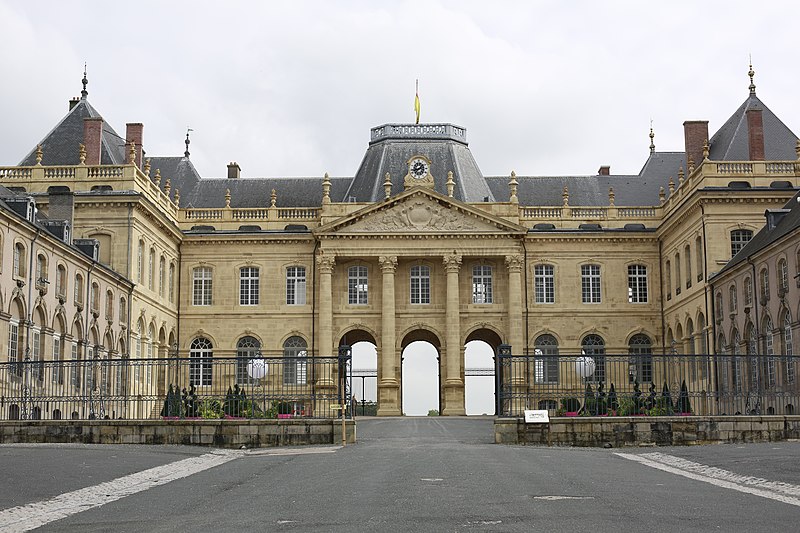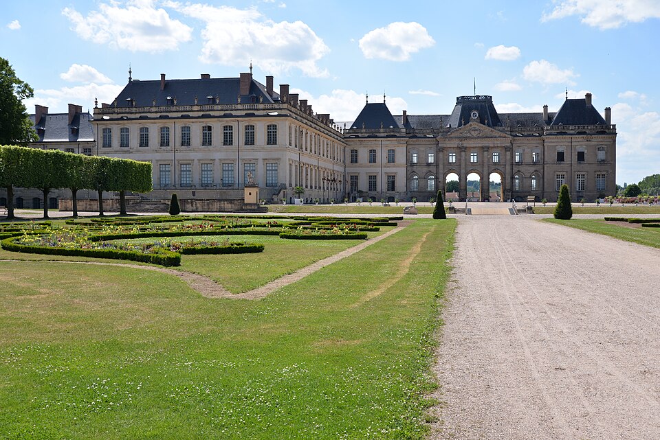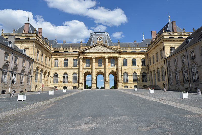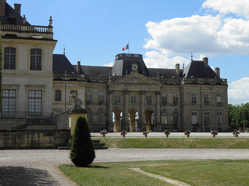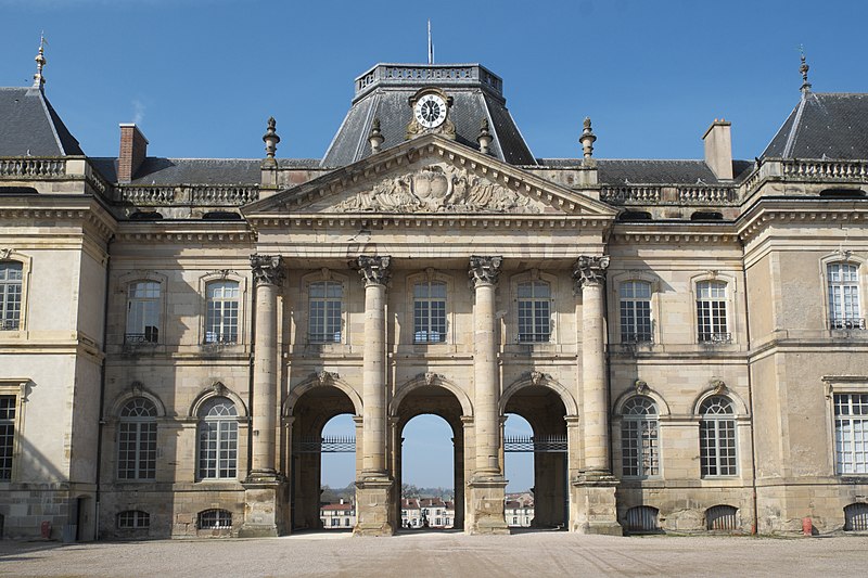 Le domaine du château de Lunéville occupe un site fortifié depuis le Moyen Âge et appartient aux ducs de Lorraine depuis le XIIIe siècle. Le château actuel, érigé au début du XVIIIe siècle pour le duc Léopold, a été reconstruit entre 1703 et 1723 sur des plans de Pierre Bourdict, Nicolas Dorbay et Germain Boffrand, et conserve la forme dissymétrique résultant d'une aile nord jamais édifiée. Léopold installe sa cour à Lunéville et développe un vaste domaine comprenant les Bosquets, une orangerie, un jardin d'utilité et la résidence dite le Petit‑Château ou la Favorite destinée au prince Charles‑Alexandre. Jean‑Nicolas Jennesson réalise des aménagements au milieu du XVIIIe siècle, dont la salle de comédie, puis Stanislas Leszczyński, arrivé en 1737, enrichit surtout le parc en étendant les Bosquets vers le nord, en créant les Bas Bosquets et en confiant à Emmanuel Héré la construction de nombreuses fabriques et résidences annexes. Parmi les réalisations de Stanislas se distinguent le Rocher, la Pêcherie, le Pavillon de la Cascade, le Pavillon de Chanteheux et les Chartreuses, ainsi que d’autres fabriques dont la plupart n'ont pas subsisté. Surnommé "Versailles lorrain" pour son prestige au XVIIIe siècle, le château a accueilli une cour brillante et des intellectuels des Lumières, mais sa vocation politique et son mobilier déclinent après la mort de Stanislas et l'annexion de la Lorraine en 1766. À partir de la fin du XVIIIe siècle et durant le XIXe siècle, l'édifice est largement utilisé par l'armée et par des régiments de cavalerie, ce qui contribue paradoxalement à sa conservation malgré des modifications et plusieurs sinistres. Le château a subi de nombreux incendies au cours de son histoire, notamment en 1719, 1814, 1849 et 1961, et il a été en grande partie ravagé par un incendie majeur dans la nuit du 2 au 3 janvier 2003 qui détruisit la chapelle et une aile d'appartements ducaux. Dès 2005 une campagne de restauration a été engagée sous la direction de l'architecte en chef des monuments historiques Pierre‑Yves Caillault; les premières opérations comprenaient la pose d'une grille, la restauration du vestibule et de l'escalier d'honneur, suivies de la remise en état des charpentes, toitures, façades, de la chapelle et de décors intérieurs. Ces travaux ont été pilotés par les copropriétaires successifs — l'État, le ministère de la Défense et le conseil général devenu conseil départemental de Meurthe‑et‑Moselle — la propriété étant partagée à partir de 2000 et rassemblée entre les mains du conseil départemental en 2017. La restauration est conduite en plusieurs phases et s'appuie sur des financements publics, des assurances, des subventions européennes et des dons collectés par une mobilisation associative importante après l'incendie de 2003. Sur le plan architectural, le château présente une composition en U partiellement inachevée, des façades classiques rythmées par des arcades et des colonnes, un vaste vestibule abritant autrefois les entrées des carrosses et orné du monogramme du duc Léopold, ainsi qu'une terrasse qui domine les jardins à la française. La chapelle palatine, élevée d'après des plans de Boffrand entre 1720 et 1723, se distingue par la richesse de son décor et par des sculptures de Barthélemy Guibal et de François Dumont; elle a été restaurée et accueille aujourd'hui une programmation musicale et culturelle depuis sa désacralisation en 1907. Les intérieurs restaurés comprennent notamment la salle des gardes, devenue accueil et billetterie, la salle de la Livrée et le grand salon orné de trophées sculptés par François Dumont. L'escalier d'honneur sud, décoré du monogramme de Léopold et inspiré de modèles contemporains, dessert les appartements et la tribune de la chapelle; les salles voûtées du sous‑sol, anciennement réserves et celliers, sont aujourd'hui réaffectées à des usages d'accueil et de conférence. Le domaine se déploie autour de cours distinctes — la cour des communs et la cour d'honneur séparées par une grille reconstituée — et d'un parc structuré par les jardins à la française prolongés par les Bosquets, conçus par Yves des Hours et Louis de Nesle et enrichis par les créations d'Emmanuel Héré. Les jardins comportaient autrefois de nombreuses sculptures et fabriques dont quatre œuvres de Barthélemy Guibal — Apollon foulant un dragon, Diane, La Nuit et Flore — ont été restaurées en 2020; de vastes perspectives reliaient le château à des résidences de plaisance aujourd'hui disparues. Déclaré monument historique pour sa chapelle dès 1901 puis pour l'ensemble en 1998, le château de Lunéville fait l'objet d'un programme de restauration ambitieux visant à restituer ses volumes, ses décors intérieurs et la lisibilité de ses jardins, projet qui se poursuit au XXIe siècle. Ouvert au public, le site accueille des espaces muséaux, des services administratifs et des manifestations culturelles et reste un lieu central du patrimoine lorrain et de la mémoire de la principauté des ducs de Lorraine.