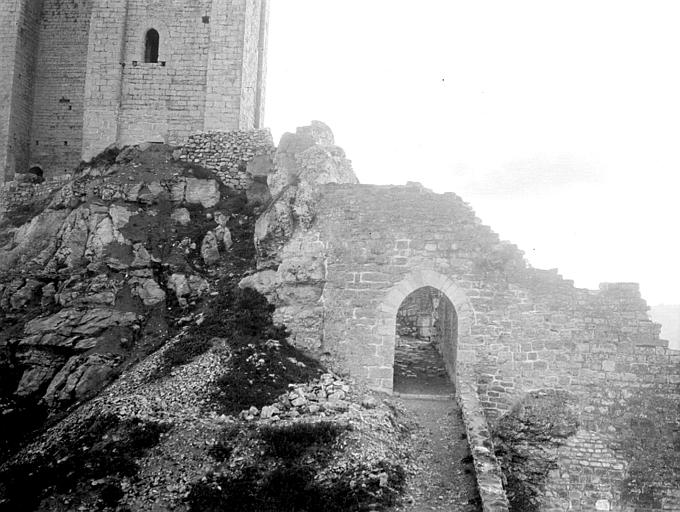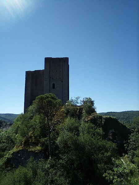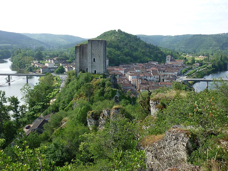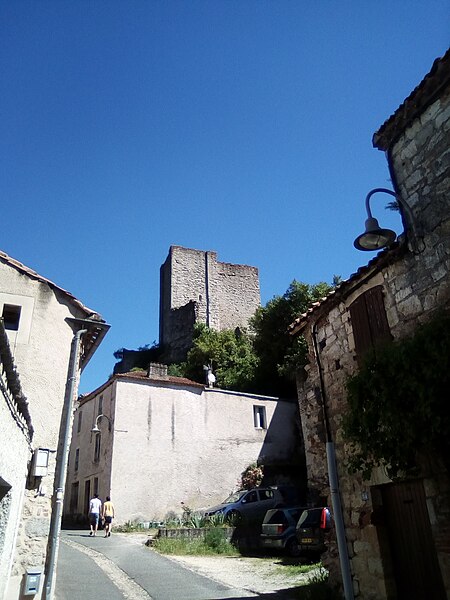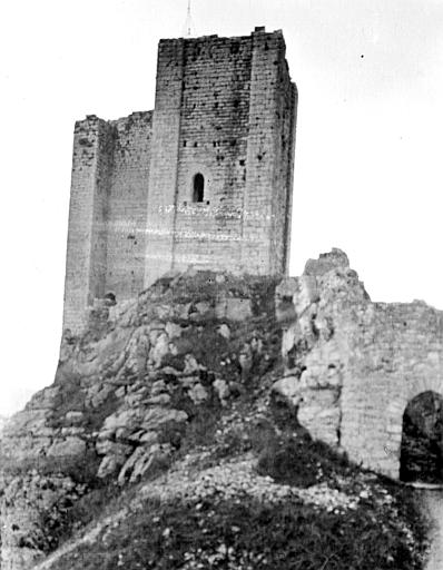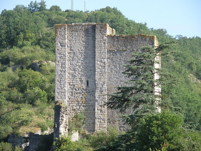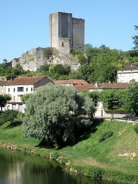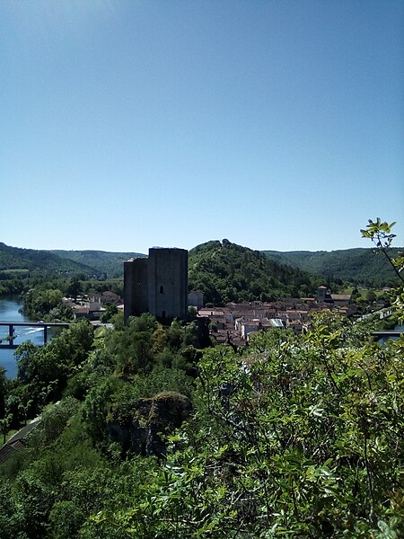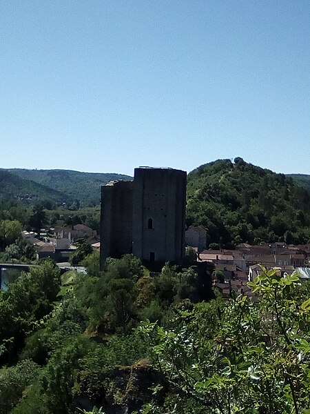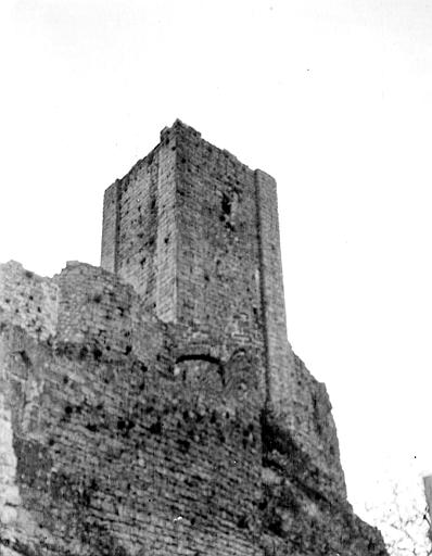 Le donjon, en pierres de taille de calcaire blond, est presque carré (8,65 m sur 8,20 m) et s'élève à 24 m. Ses élévations sont percées d'archères sur les faces ouest et sud ; la face nord présente une porte en arc brisé et une ouverture moderne au rez-de-chaussée. À l'intérieur se développaient quatre niveaux desservis par un escalier à vis logé dans l'angle nord-est. Des contreforts plats, larges d'environ 1,90 m et fins d'une vingtaine de centimètres, renforcent les angles. Adossé au sud du donjon, un mur presque aussi élevé, doté d'un retour vers le nord, présente à sa base une porte d'environ un mètre de large et une archère disposée au fond d'une niche. Le donjon pourrait dater du deuxième quart du XIIIe siècle ; sa construction, postérieure à l'acquisition de 1227, est parfois attribuée aux évêques qui se sont succédé à Cahors, parmi lesquels Guillaume de Cardaillac ou Géraud de Barasc.