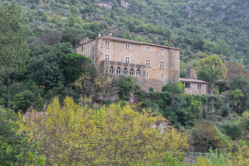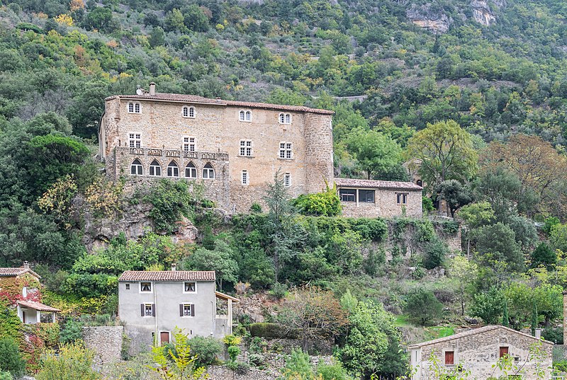 Le nom de Madières est cité dès le IXe siècle. Le château occupe une position stratégique, commandant la vallée. Son plan s'inscrit globalement dans un rectangle, dont trois angles sont pourvus d'une tour. À l'est, le portail d'entrée est doté d'une bretèche. La façade sud repose sur une galerie à arcades qui forme, sur sa moitié ouest, une terrasse. On y remarque des fenêtres à meneaux et des baies géminées. Les bâtiments s'organisent autour de deux cours intérieures. La première cour est traversée par deux hautes arcades en plein cintre, derrière lesquelles se logent l'escalier et une première terrasse donnant accès au niveau supérieur des bâtiments. L'accès à la partie nord, au niveau supérieur, se fait par un corps intermédiaire qui comprend un passage voûté en deux travées sur croisées d'ogives. À droite de ce passage s'ouvre la deuxième cour intérieure, entourée sur trois côtés par des galeries. Au premier étage de ces galeries, la pièce dite chapelle renferme des vestiges de peintures murales.