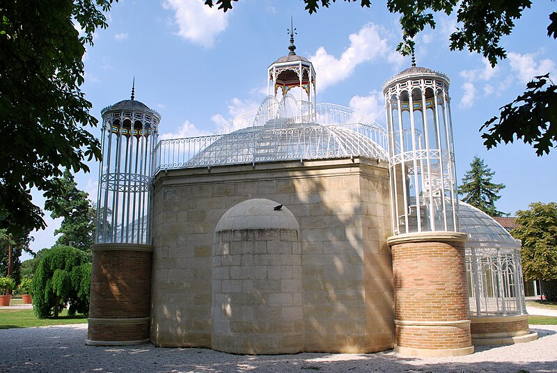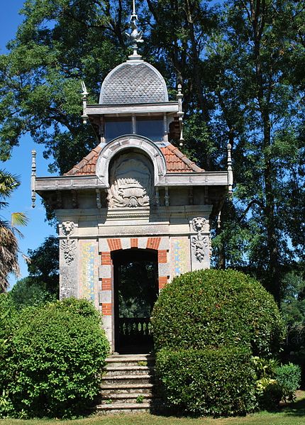 Parmi les dépendances figurent un belvédère et un pigeonnier de style hispano‑mauresque ; le belvédère, œuvre attribuée à l’architecte Louis Garros, proviendrait du pavillon de la ville de Soulac‑sur‑Mer présenté à l’Exposition maritime et coloniale internationale de 1895 à Bordeaux. Ces deux constructions ont été sérieusement endommagées par la tempête de décembre 1999 et ont fait l’objet d’une première restauration de sauvegarde, la restauration définitive restant à achever. D’autres dépendances ont été réutilisées, notamment pour un élevage de paons.