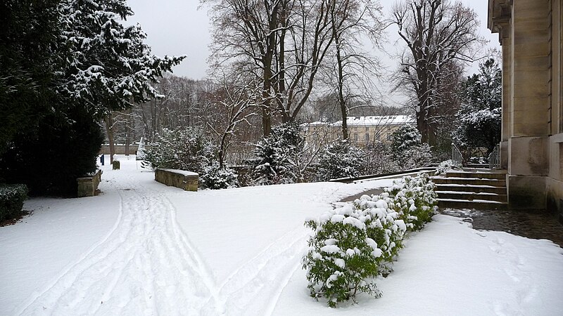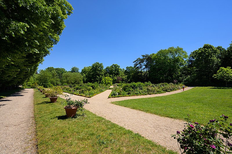 Le domaine de la Malmaison, situé à Rueil-Malmaison (Hauts-de-Seine, Île-de-France), abrite le musée national de la Malmaison. L'origine du nom « Malmaison », issu de mala domus (ou mansio) et signifiant « mauvaise maison », reste incertaine ; on évoque tant la mauvaise fréquentation médiévale que la prise en charge de malades. Le fief est connu depuis le Moyen Âge : un aveu de 1376 mentionne un manoir avec cour, basse-cour, terres et vignes, et le domaine demeure dans la descendance de Guillaume Goudet après son achat en 1390 jusqu'au XVIIIe siècle. Au début du XVIIe siècle Christophe Perrot fait édifier une nouvelle demeure composée d'un corps de logis et d'un pavillon, puis la famille Barentin apporte des aménagements au XVIIe siècle, notamment la construction d'un pavillon nord et d'ailes. Loué et réaménagé à plusieurs reprises au XVIIIe siècle, le domaine est acheté en 1771 par le banquier Jacques-Jean Le Couteulx du Molay, qui confie la refonte des jardins et accueille une société littéraire et artistique. Joséphine de Beauharnais et Napoléon Bonaparte acquièrent la propriété en 1799 ; les architectes Charles Percier et Pierre Fontaine y conduisent des travaux de rénovation, ajoutant des ailes en retour et un pavillon à l'entrée. Joséphine fait aménager le parc et les serres : en 1800 elle confie les travaux à Howatson, Delahaye devient jardinier en chef en 1805 et Aimé Bonpland est intendant des jardins en 1809. Entre 1803 et 1805 Jean Thomas Thibaut et Barthélémy Vignon construisent une serre chaude jouxtant un petit salon ; ces serres, modifiées vers 1880, forment aujourd'hui la Petite Malmaison. Le château sert de lieu de résidence et de gouvernement sous le Consulat et reste lié à Joséphine jusqu'à son divorce ; après diverses successions et ventes, il est fortement endommagé en 1870. En 1896 le mécène Daniel Iffla dit Osiris acquiert le château réduit à un parc de 6 hectares, le restaure avec l'architecte Pierre Humbert puis le lègue à l'État en 1904 ; le château devient musée en 1905 et présente un ensemble homogène de mobilier du Consulat et du Premier Empire. Le rond-point du pavillon des Guides est inscrit depuis le 11 juillet 1942 et l'ensemble du domaine, incluant le château, son parc, le parc du château de Bois-Préau et le jardin de la villa des Œillets, est classé au titre des monuments historiques depuis le 20 décembre 1991. Joséphine entreprend de faire du parc « le plus beau et le plus curieux jardin en Europe », rassemblant des spécimens rares et exotiques et créant une vaste roseraie ; elle installe notamment une orangerie chauffée assez vaste pour 300 pieds d'ananas et, cinq ans plus tard, une serre chauffée par une douzaine de fourneaux à charbon. De 1803 à sa mort en 1814, Joséphine introduit près de 200 plantes nouvelles en France et réunit environ 250 variétés de roses, qu'elle fait dresser par Pierre-Joseph Redouté, dont les planches figurent dans Les Roses publiées en 1817-1820. Le parc accueille aussi des animaux exotiques — kangourous, émeus, cygnes noirs, zèbres, gazelles, autruches, chamois, phoques, antilopes, lamas, parmi d'autres — certains provenant de l'expédition de Nicolas Baudin (1800-1803). Pour la roseraie, Joséphine s'appuie sur des jardiniers et botanistes comme Thomas Blaikie, Alexander Howatson, Étienne Pierre Ventenat, André Dupont et le directeur Étienne Soulange-Bodin ; l'horticulteur anglais Kennedy fournit de nombreuses variétés et des arrangements spécifiques permettent l'acheminement des plantes malgré les conflits maritimes. André Dupont mène des travaux d'hybridation contrôlée et crée pour elle 25 nouvelles variétés ; la roseraie devient une référence et inspire la diffusion massive de nouvelles variétés au cours du XIXe siècle. Sur la façade côté parc, les travaux d'aménagement intérieur ont nécessité des renforcements ; Percier et Fontaine font installer statues et vases provenant des jardins de Marly et, en 1801, quatre statues en bronze ornent le pont du fossé, tandis que d'autres sculptures comme l'Apollon du Belvédère et Diane la chasseresse figurent dans les choix décoratifs avant d'être remplacées par deux obélisques en marbre de Givet provenant du château du cardinal de Richelieu. La dispersion du grand domaine après la mort de Joséphine conduit au morcellement des 726 hectares ; le domaine actuel comprend le château et son parc (musée national napoléonien), la Petite Malmaison en propriété privée, le château de Bois-Préau et son parc annexés au musée, et le domaine de Vert-Mont en propriété privée, et il bénéficie du label « jardin remarquable ». Parmi les intérieurs remarquables figurent la chambre de Napoléon tendue de gourgouran, la chambre somptueuse de Joséphine avec son lit d'origine, la bibliothèque aménagée par Percier et Fontaine, la salle à manger décorée par ces mêmes architectes avec des peintures murales de Louis Lafitte, ainsi que des meubles en acajou des frères Jacob-Desmalter et des pièces de porcelaine de Sèvres ; côté extérieur on note la façade postérieure, l'entrée principale et le pavillon Osiris dans le parc.