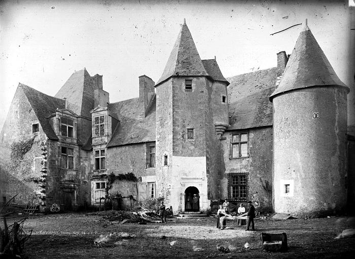 Le château de Marconnay, situé à 3 km au nord de Sanxay dans la Vienne, est mentionné dès 1369. D'origine inconnue, il se présente comme un corps de logis disposé au centre d'une cour d'honneur, entouré d'une enceinte quadrangulaire et de douves en eau. Le bâtiment résulte de deux campagnes de construction : la partie droite, adossée à une tour d'escalier polygonale, conserve deux fenêtres à meneaux témoignant du XVe siècle. La partie gauche présente des dispositions de seconde Renaissance et l'aile en retour, élevée au XVIIe siècle, est restée inachevée. Les fortifications, d'abord à vocation militaire, ont progressivement pris une fonction plus symbolique. La seigneurie appartient à la famille Lévesque au moins de 1369 à 1683, puis est acquise par Charlotte de Vernoux, dame de compagnie de Madame de Montespan, qui la détient jusqu'en 1719. Cette année-là, le château est ravagé par un incendie puis devient une ferme confiée à des fermiers généraux; les communs adossés à l'enceinte datent en grande partie de cette période. La poterne, qui a sans doute remplacé un châtelet d'entrée, et le corps de logis sont classés au titre des monuments historiques depuis 1929. Les douves, le pont et les parties bâties correspondant aux courtines ont été classés en 2005. Isolé par ses douves, l'ensemble se compose d'une enceinte quadrangulaire abritant le logis et les dépendances ; un pont dormant en pierre à deux arches franchit les douves et conduit au pavillon d'entrée. Ce pavillon, coiffé d'un toit bombé couronné d'un édicule, présente deux portes en plein cintre — l'une charretière et l'autre piétonne — et date du XVIIe siècle ; il était à l'origine protégé par deux ponts‑levis à flèches et défendu par des mâchicoulis. Deux tours circulaires flanquent la muraille et portent des canonnières caractéristiques du XVe siècle. Le logis principal est un corps rectangulaire du XVe siècle, appuyé contre la tour d'escalier polygonale. L'aile en retour du XVIIe siècle comporte une porte d'entrée cantonnée de deux fines colonnes supportant un entablement, ainsi que deux fenêtres à meneaux — dont une lucarne — encadrées de pilastres cannelés. L'ensemble illustre l'essor puis le déclin d'une famille noble de province.