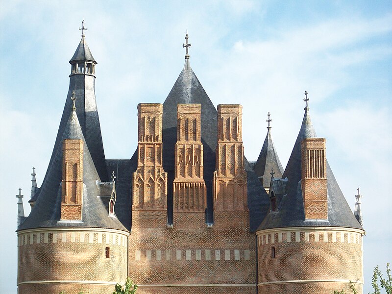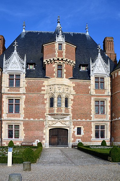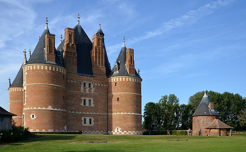 Le château de Martainville, édifié à partir d'environ 1485 par le négociant rouennais Jacques Le Pelletier sur les vestiges d'un ancien château-fort, se dresse à Martainville-Épreville en Seine-Maritime. Le domaine, constitué par échange de terrains, est ceint de murs de brique ponctués de tourelles dont le tracé reste lisible et dont certaines portions subsistent en élévation. Le logis est un quadrilatère cantonné de quatre grosses tours d'angle, coiffées en toitures coniques, et percé d'une tourelle d'escalier en façade arrière. Vers la fin du XVIe siècle, une enceinte rectangulaire à quatre tourelles fut ajoutée et un nouveau fossé non maçonné creusé à l'extérieur, tandis que des jardins d'agrément occupaient l'espace clos aux XVIIe et XVIIIe siècles ; il en subsiste des vestiges connus par des plans et miniatures du XVIIIe siècle. Considéré comme l'une des expressions majeures de l'architecture civile de la fin du gothique, le château a été acquis par l'État en 1906 puis cédé au département en 2002 ; il abrite le musée des Traditions et Arts normands et bénéficie d'une protection au titre des monuments historiques.