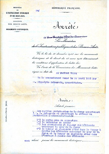 Au siècle suivant, le seigneur résidant à la cour de Versailles fit prospérer l'exploitation agricole, agrandir les communs et transformer les appartements, notamment au premier étage. Le dernier des Martainville mourut en 1757 sans héritier direct ; la demeure passa ensuite par alliance à Salomon Couture puis à la famille Fautereau et resta habitée jusqu'en 1870, date à partir de laquelle la guerre de 1870 provoqua des déprédations suivies d'un abandon. Classé monument historique en 1889, le château vit sa ferme et plusieurs éléments annexes protégés par un arrêté de 1931, qui couvre notamment le puits et sa couverture, le colombier, les toitures et façades des bâtiments entourant la cour de ferme ainsi que des hangars en charpente situés dans le verger et l'herbage. Mis en vente en 1905, le logis fut acheté par un marchand de bestiaux qui démembra une partie des terres et dispersa le mobilier avant que l'État n'intervienne et acquière la propriété en 1906.