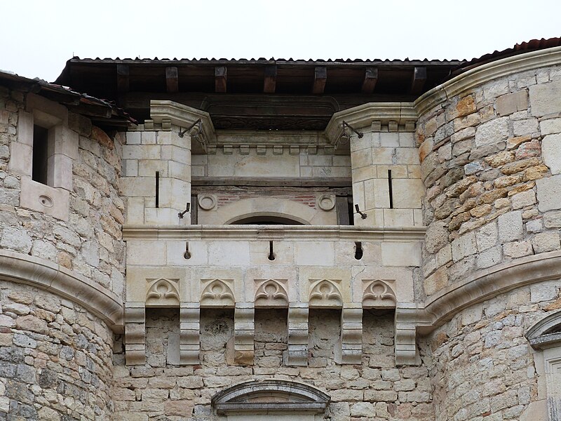 Au cours des guerres de Religion, le château fut un bastion protestant ; une garnison catholique y fut placée temporairement en 1586 et il fut assiégé puis pris en 1595 par les troupes du duc de Joyeuse, occasionnant probablement des dommages au sud-est. Une tour de ce côté ne fut apparemment pas rebâtie et le corps d'habitation subséquent fut remplacé par un mur fermant la cour tout en préservant sa symétrie, partie traditionnellement désignée « la brèche ». Le chemin de ronde subit des destructions liées aux conflits religieux, en partie du fait de l'hostilité envers les propriétaires protestants de l'époque.