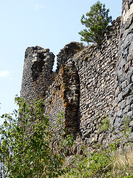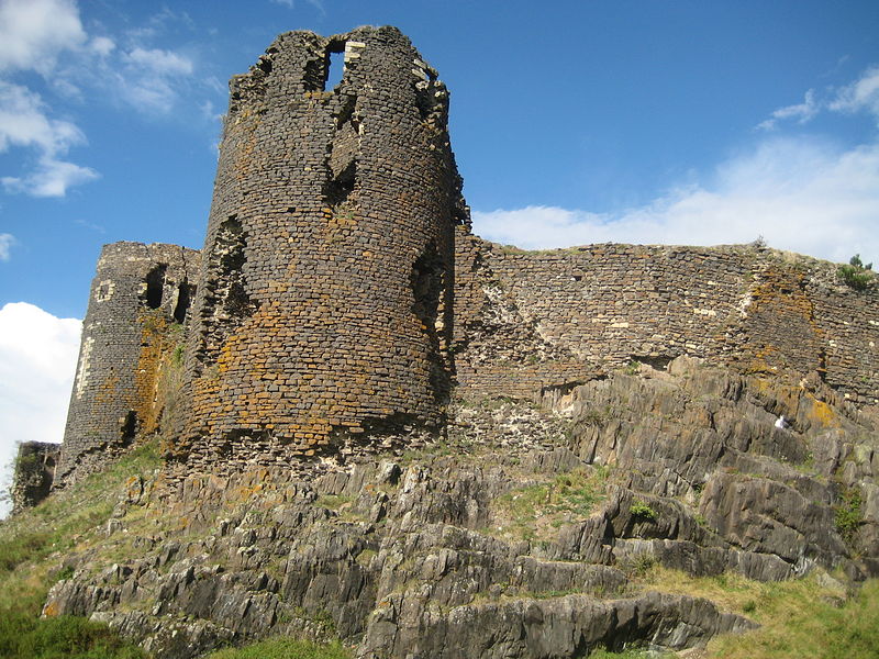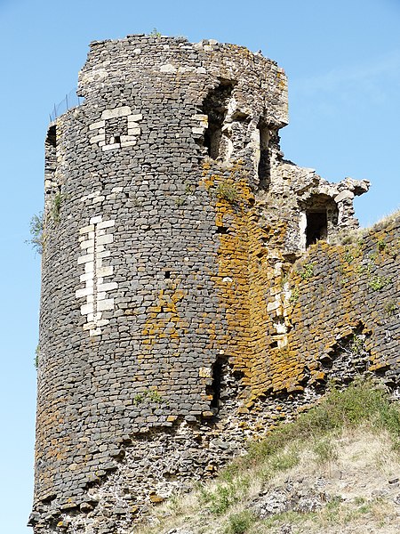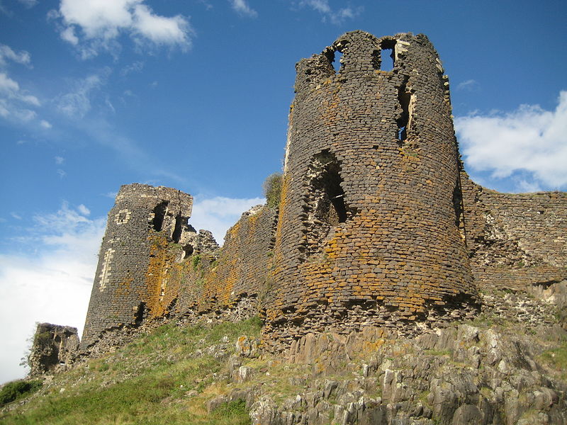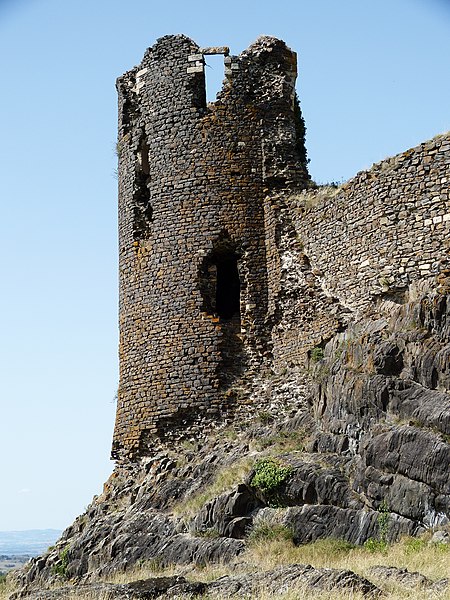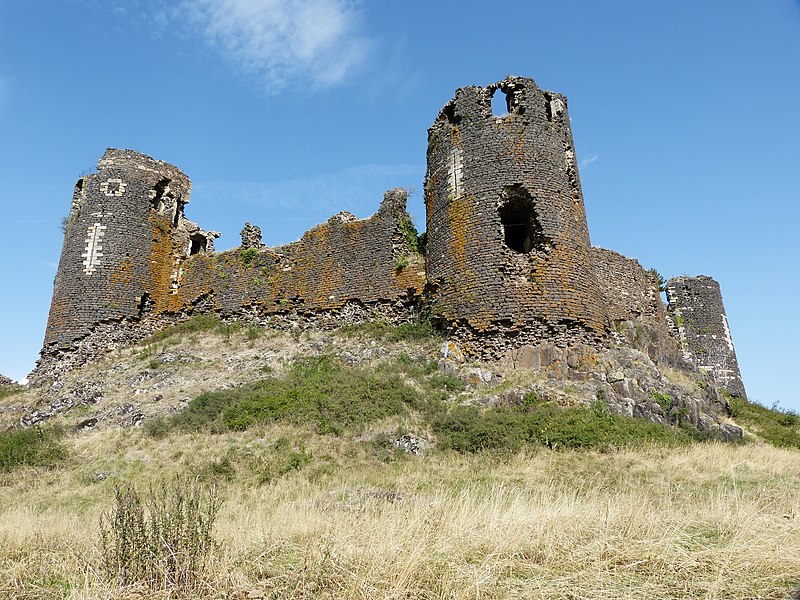Le château fort de Mauzun, dont les ruines dominent le village du même nom, a été édifié sur un ancien volcan et construit principalement en pierre noire extraite du site. Le lieu connaît une occupation fortifiée depuis l'époque gallo-romaine et dépend, du IXe au XIIe siècle, des comtes d'Auvergne. En 1207, le comte Guy II autorise l'évêque de Clermont à acquérir Mauzun, qui devient à partir du XIIIe siècle une résidence d'été des évêques de Clermont et restera possession épiscopale jusqu'à la Révolution. Entre 1230 et 1240, l'évêque Hugues de la Tour fait rebâtir largement la forteresse sur le modèle philippien, avec jusqu'à trois enceintes et une vingtaine de tours selon certaines descriptions ; d'autres sources détaillent une première enceinte de seize tours et une seconde plus rapprochée comportant quatre tours, dont le donjon. La tradition locale assimile le nombre de tours aux villages dépendant de Mauzun, chargés de garder chacun une tour. Le château servit aussi de prison pour ecclésiastiques et pour laïcs et joua un rôle dans la mainmise du pouvoir royal sur l'Auvergne. Pris par des routiers anglais en 1369, il est libéré en 1385 par le maréchal de Sancerre. Pendant les guerres de Religion, il fut disputé et, en 1589, constitua le quartier général de la Ligue en Auvergne sous l'évêque François de la Rochefoucauld, qui se soumit au roi en 1590 et conserva la place. En 1632, une attaque des forces de Gaston d'Orléans échoue ; l'année suivante une ordonnance ordonne le démantèlement des châteaux d'Auvergne, mais Mauzun, appartenant à un serviteur loyal de la couronne, échappe à une destruction complète, bien que ses créneaux soient arasés. À partir de 1650, le château n'est plus entretenu et tombe progressivement en ruine ; un état de 1716 le décrit presque détruit et inhabitable, avec planchers, boiseries et carrelages à réparer, mais des greniers et des prisons encore en usage. Des lettres patentes de Louis XV en 1732 autorisent l'évêque Massillon à démolir l'édifice en raison de son état ; des travaux de démolition sont signalés en 1744, avec éventration des tours et abattage des murs les moins résistants, tandis que quelques dépendances agricoles et prisons sont conservées. Confisqué à la Révolution et devenu bien national, le château est adjugé en 1792 à un groupement de onze citoyens qui proposent de démanteler progressivement l'ouvrage et commercialisent les matériaux. Au XIXe siècle, les parts sont rachetées par les familles Saunier puis Chalus ; en 1913 Maurice Chalus restaure une tour. Les vestiges sont classés au titre des monuments historiques par arrêté du 13 mai 1970. Des chantiers de bénévoles et d'associations, notamment dans les années 1990, et des programmes de consolidation et de restauration engagés après 2001 sous la conduite de la famille Charrier ont permis de remettre en valeur une partie de la ruine ; le décès de Christophe Charrier n'a pas interrompu l'intervention des autorités compétentes. Malheureusement, les visites et l'accès au site ont été suspendus à la suite de la crise du Covid en 2019. La forteresse s'étire sur trois enceintes étagées autour du cône volcanique et couvre environ cinq hectares : la première enceinte, à mi-pente, est un mur de près de 2 m d'épaisseur bordé d'un fossé et d'environ 900 m de longueur ; la deuxième, située au sommet aplani, suit un tracé proche d'un triangle de côtés 180 m et un périmètre de 550 m, flanquée de seize tours hémicylindriques espacées de 30 à 40 m ; enfin, en position excentrique, le donjon occupe le rocher sommital sur un plan carré de 50 m de côté, ses angles étant marqués par d'énormes tours en saillie.