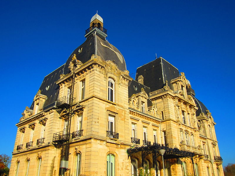 Le château de Mercy, situé à Ars-Laquenexy près du quartier de La Grange-aux-Bois, occupe un site habité depuis au moins le Xe siècle. L’édifice actuel a été construit entre 1905 et 1908 à l’initiative de la veuve de Maurice du Coëtlosquet, l’architecte Henri Klein dirigeant les travaux. Seule trace des occupations antérieures, la chapelle date de 1626 et a été rénovée par M. du Coëtlosquet dans les années 1890. Durant la période du rattachement de l’Alsace-Moselle à l’Empire allemand, Metz a été transformée par les autorités impériales, qui ont fait de son urbanisme une vitrine de l’architecture wilhelmienne. L’éclectisme de cette époque s’est traduit par l’apparition d’édifices néoromans, néogothiques et néo-Renaissance, tandis que certains propriétaires francophiles ont choisi de bâtir des constructions d’inspiration française ; contemporain du palais du Gouverneur, le château de Mercy illustre ce mouvement. Construit en pierre de Savonnières importée du Barrois, l’édifice adopte un style revendiquant les sentiments francophiles de son commanditaire. Un jardin à la française, dessiné par le paysagiste Jean-Joseph Picoré, complétait alors son parc. Résidence de la famille du Coëtlosquet, le château redevient français en 1919. Lors de la nouvelle annexion par l’Allemagne en 1940, il est utilisé comme « Lazarett », hôpital militaire pour l’armée allemande. Le Reserv-Lazarett Metz II redevient français en novembre 1944 ; après avoir nécessité une rénovation importante, il sert du 10 avril 1953 au mois de mars 1966 de poste de commandement à la 1re division aérienne de l’Aviation royale canadienne, les derniers militaires canadiens quittant le site le 31 mars 1967. Le château devient propriété de l’armée française en 1968 et accueille successivement le quartier général de la 16e brigade mécanisée, puis le commandement de l’artillerie du 1er corps d’armée, la 1re armée jusqu’à sa dissolution en 1993, puis enfin la brigade de renseignement et de guerre électronique. Le château et sa chapelle, situés au lieu-dit le Clos Nord, ont été inscrits dans leur totalité au titre des monuments historiques par arrêté du 5 juin 2019. Vendu en 2000 à la communauté d’agglomération de Metz-Métropole, il a pesé pendant plus de vingt ans sur les comptes de la collectivité. En 2021, la société Wynn Patrimoine, basée à Nancy, s’est portée acquéreur du château en vue de le rénover pour accueillir des logements et des locaux commerciaux. Des photographies présentent des vues générales, le détail de la façade et la chapelle du château.