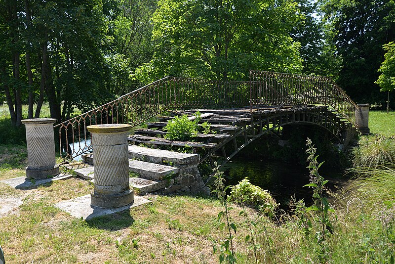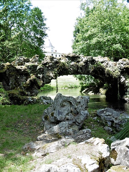 Les façades et les toitures du château et les pièces suivantes avec leur décor : l'antichambre, la salle à manger et le salon au rez-de-chaussée ; le Grand parc avec ses dix-sept fabriques ou vestiges de fabriques, à savoir : la basse-cour suisse, le colombier, les deux glacières, les grottes des Demoiselles, la grotte au nord de l'ancienne laiterie, les grottes sous l'ancien Temple de la Piété filiale, la laiterie, la maison du jardinier, le moulin, le pavillon, le pont d'acajou, le pont des boules d'or, le pont cintré, le pont du chemin (pour la partie appartenant au groupement forestier de Landeroyne) , le pont de roches, les grandes Roches ; le lavoir situé au sud du pont sur la Juine (cad. AK 134, 325 ; C 1 à 17 ; D 1 à 14, 16 à 28) : classement par arrêté du 15 juin 1977 - La "Colonne Trajane", fabrique de l'ancien petit parc (cad. AH 57) : classement par arrêté du 7 septembre 1978 - Les parties subsistantes des cinq fabriques suivantes de l'ancien petit parc : le "fort" (1, avenue Raymond-Poincaré, cad. AH 37) , les "écuries anglaises" (3, avenue Raymond-Poincaré, cad. AH 39) , le pont du chemin (la moitié, cad. AH 38) , le "petit château" (1, avenue de Laborde, cad. AH 142) , la "fausse chapelle" (route de Saint-Cyr, cad. AH 200) : inscription par arrêté du 7 septembre 1978 - Toutes les pièces avec leur décor au rez-de-chaussée du château, à l'exception des trois pièces déjà classées (cad. D 19) : classement par arrêté du 17 décembre 1993 - Les intérieurs du château, à l'exception de toutes les pièces du rez-de-chaussée classées (cad. D 19) : inscription par arrêté du 17 décembre 1993 - En totalité, l'aqueduc du domaine, y compris la vanne permettant sa prise d'eau au moulin de Semainville (cad. AK 331, 332, 334, 712, 713 ; AI 187, 192, 240 ; AL 273, 274, 283, 284, 288, 290, 294, 295, 304, 325 à 328, 539, 565, 566, 627, 636, 637, 647 à 650, 653, 654, 670,682, 683, 731, 859, 860, 929, 938, 946, 950, 951, 955, 958, 1011 ; AM 15, pour la vanne et l'origine de l'aqueduc ; C 10, pour le dernier tronçon et le débouché de l'aqueduc, cf plan annexé à l'arrêté) : inscription par arrêté du 29 juin 2013 ; Rectificatif concernant l'inscription de l'aqueduc du domaine, y compris la vanne permettant sa prise d'eau au moulin de Semainville : ajouts cad. C8, 10 ; sous la route départementale 18 ; sous la rue des Larris, le chemin des Cressonières et la rue des Moulins (commune de Méréville), cf plan annexé à l'arrêté : inscription par arrêté du 8 avril 2015