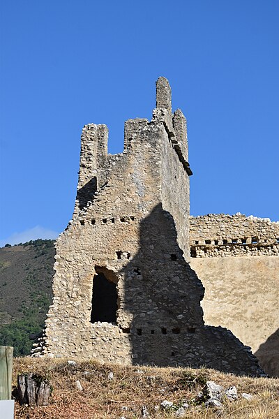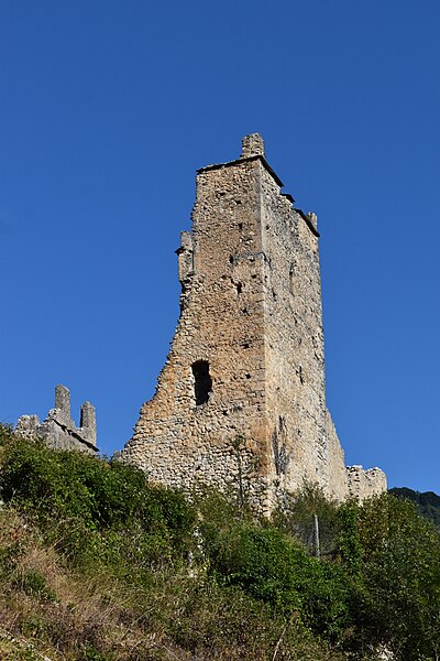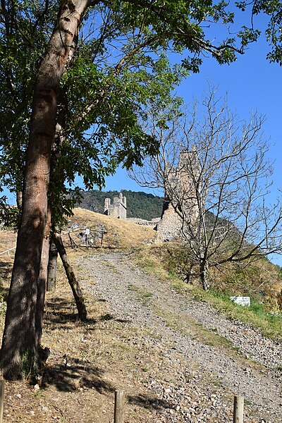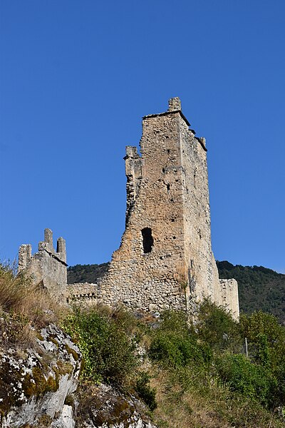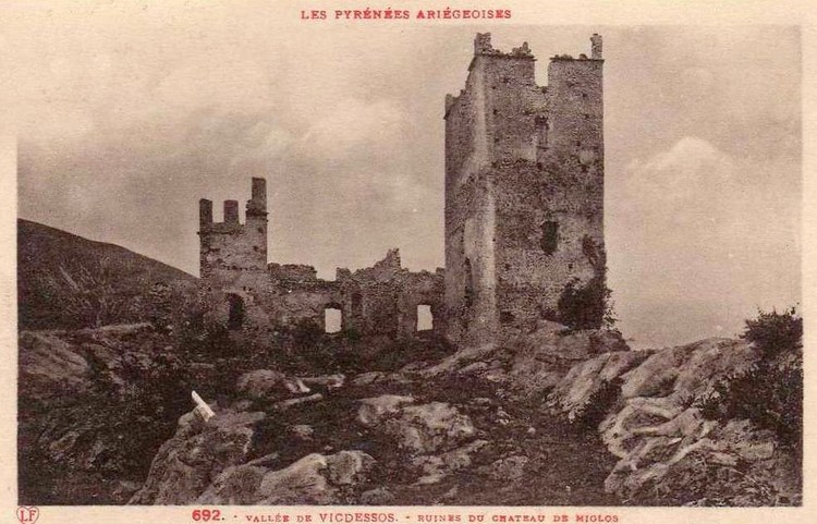 Les ruines du château d'Arquizat se dressent sur la cime d'un éperon calcaire, à 779 mètres d'altitude, sur la commune de Miglos, au‑dessus du village de Capoulet, dominant les vallées de Miglos et du Vicdessos dans les Pyrénées ariégeoises. Au Moyen Âge, l'accès se faisait par le chemin reliant Niaux au village d'Arquizat, aujourd'hui repris par la D 156. Le lieu‑dit et l'église de Miglos sont attestés dès 1097, un seigneur est cité en 1160 et les premières mentions explicites du château datent de 1213. À cette époque le rocher était déjà couvert de fortifications et la forteresse, tombée en ruine, fut reconstruite au XIVe siècle. Le site s'inscrivait dans un système défensif protégeant le comté de Foix, aux côtés de châteaux tels que Montréal‑de‑Sos, Quié, Génat et Castel Merle, ainsi que de grottes fortifiées ou spoulga. En 1244, Arnaud de Miglos reconnut devant l'Inquisition avoir reçu des Parfaits et avoir envoyé des armes aux assiégés de Montségur, ce qui entraîna son emprisonnement pendant quatre ans. En 1311, Gaston Ier de Foix offrit la seigneurie à Bernard d'Usson, et les vestiges visibles reflètent la restauration qu'il mena en 1320. Le château occupait une surface d'environ 600 m², approximativement carrée, le logis seigneurial étant implanté au nord. L'enceinte quadrangulaire est flanquée au sud‑est d'une tour comportant cinq niveaux et au nord‑ouest d'une seconde tour dont le rez‑de‑chaussée abrite une salle voûtée ; ces tours et les murailles qui les relient sont percées de baies rectangulaires. À l'ouest s'élevait une tour carrée d'environ 15 mètres de haut, à l'est une salle percée de meurtrières surveillait le chemin d'accès, et au sud se dressait un donjon carré de plus de 20 mètres, qui fut exhaussé. Les vestiges de ces constructions sont encore visibles aujourd'hui. Propriété du conseil départemental de l'Ariège depuis 1984, le château a été classé monument historique le 22 septembre 1987 en raison de l'importance de ses ruines pour l'histoire et l'architecture. La même année fut créée l'Association des Amis du Château de Miglos, qui œuvre pour la sauvegarde et la mise en valeur du site. À partir de 1999, des travaux de cristallisation par injection de chaux ont consolidé notamment le donjon et la tour nord‑ouest.