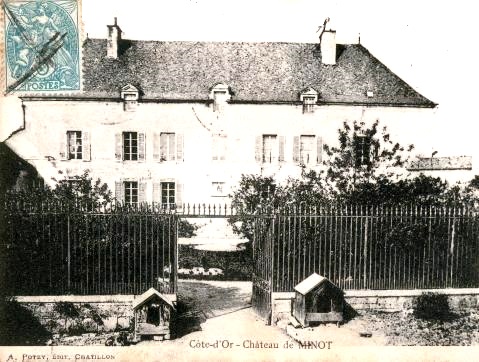 Le château de Minot se dresse sur la butte de Minot-Haut, à l'entrée sud-ouest du village de Minot (Côte-d'Or), en rive est de la RD 112. La première mention écrite d’une place forte à Minot remonte à 1109. En 1372, Eudes de Savoisy tient de Philibert de Blaisy une grange et une maison « sous la tour du mont de Minot », dépendant de l’église Saint-Pierre ; en 1421 Jean de Savoisy cède ces biens à Jean de Chauffour, seigneur d’Échalot. Le château primitif, daté du XIe siècle et appelé motte ou tour du Vaux par opposition à la tour du Mont, est détruit pendant les combats opposant Charles le Téméraire aux troupes royales (1474-1477). Reconstruit au XVe siècle par les Vaudrey, il voit l’établissement des offices religieux de ses chapelles en 1500. Le château actuel est élevé vers 1660-1661 par Marie de Longueval, qui ne conserve du précédent que deux tours circulaires et une bretèche ; il subit une nouvelle destruction en 1694, ne laissant à nouveau que ces deux tours et la bretèche. Ces vestiges sont ensuite acquis par la famille Mairetet, qui y ajoute des communs, et en 1809 le pavillon d’entrée du pont-levis est détruit.