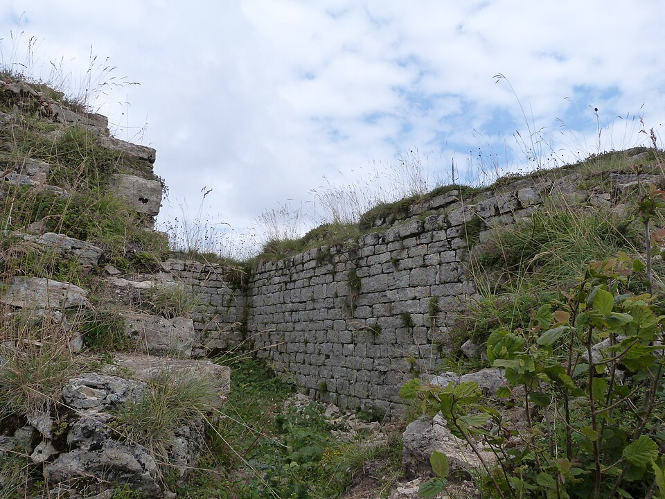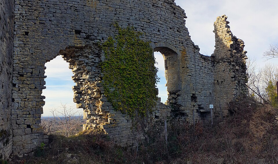 Au nord, au‑delà d'un fossé, se remarque un ouvrage avancé comprenant les restes d'une citerne dont l'enduit d'étanchéité est de couleur rose, et un bâtiment quadrangulaire de 7 m sur 11 m aux murs épais de 2,10 m et d'un étage sur plancher. Ce dispositif, associé à la redoute, constitue un exemple rare dans la typologie des châteaux du Jura. Les ruines visibles aujourd'hui comprennent notamment l'ouvrage nord et le logis accolé au donjon.