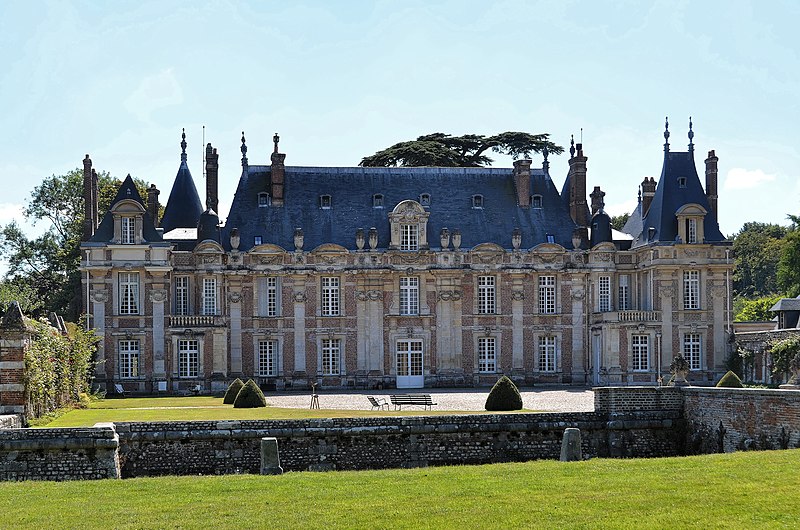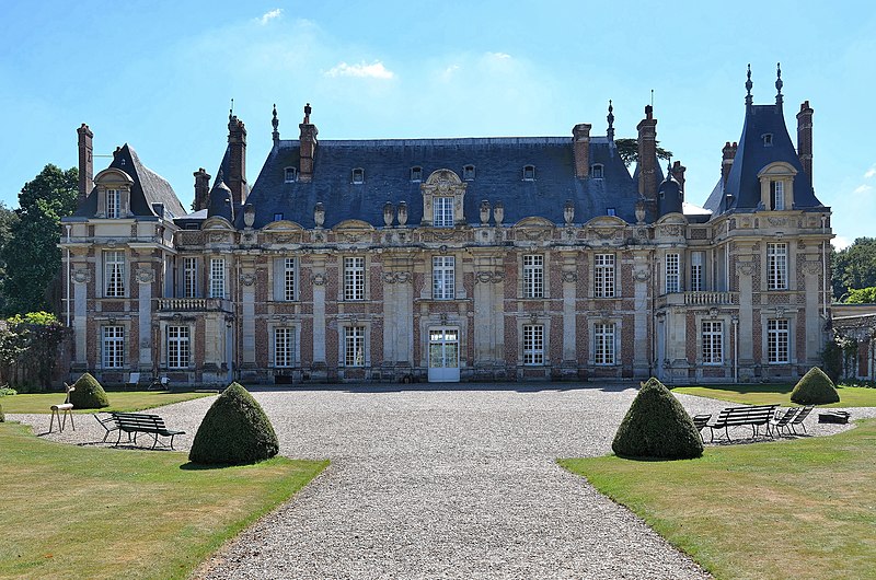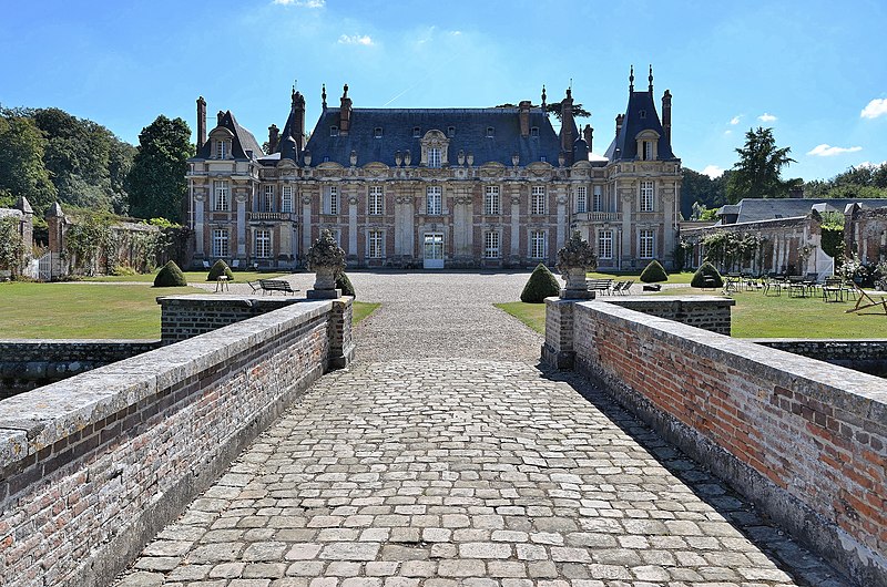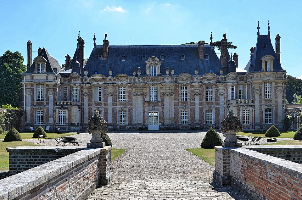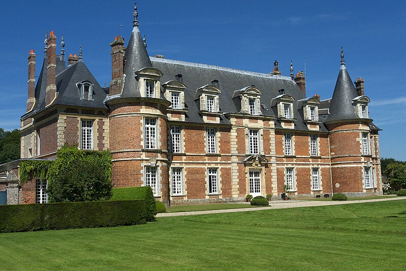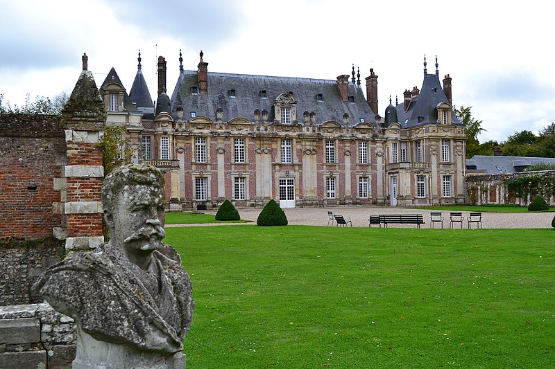 Le château de Miromesnil, situé sur la commune de Tourville‑sur‑Arques en Seine‑Maritime (Normandie), est une demeure privée connue notamment comme lieu de naissance de Guy de Maupassant. Construit à la fin du XVIe siècle sur l'emplacement d'un château fort de la famille Dyel détruit en 1589 lors de la bataille d'Arques, il reflète des évolutions stylistiques aux XVIIe et XIXe siècles. La reconstruction, entreprise vers 1590‑1600 par Jacques Ier Dyel et achevée par son neveu Jacques II Dyel des Hameaux, a donné la partie centrale et l'ordonnance majestueuse de la façade nord. La façade nord, ornée d'une ordonnance classique, est flanquée de clochetons et reliée aux extrémités par un rez‑de‑chaussée dans le goût d'Henri IV, tandis que des modifications de 1640 lui ont imprimé des accents du style Louis XIII. Le roi a élevé la terre de Miromesnil en marquisat en faveur de Thomas Hue de La Roque, et la famille Hue de Miromesnil a marqué le lieu au XVIIIe siècle. Armand Thomas Hue de Miromesnil, troisième marquis et haut magistrat, y mourut ; sa bienveillance envers la population permit à la famille et au château de traverser la Révolution sans heurt, le domaine revenant ensuite à sa fille. Des étages aux extrémités furent ajoutés au XIXe siècle et le château connut par la suite diverses locations et ventes. Guy de Maupassant y est né le 5 août 1850 ; sa famille, locataire de la baronne de Marescot, y résida jusqu'en 1853. Le château a changé de mains à plusieurs reprises : acquis en 1895 par André Le Breton, puis en 1938 par des neveux d'Eugène‑Melchior de Vogüé, il subit un incendie en 1945 qui détruisit la toiture. Il fut ensuite la propriété de la comtesse Bertrand de Vogüé en 1998, puis repris en 2004 par Jean‑Christophe et Nathalie Romatet, petits‑enfants de Bertrand de Vogüé. Le domaine bénéficie d'une protection au titre des monuments historiques et son parc figure à l'Inventaire général du patrimoine culturel. L'accès au château se fait par un pont de pierre franchissant des douves sèches ; le corps central, à deux niveaux, est flanqué à l'arrière de deux tourelles et prolongé aux extrémités par des pavillons. La fenêtre centrale du second étage porte les armes des Hue de Miromesnil : trois hures de sanglier surmontées d'une couronne de marquis. Les jardins, clos de murs de briques, sont dominés par un cèdre du Liban bicentenaire et entourés d'une futaie de hêtres, caractéristique du pays de Caux. Fidèles au plan du XVIIIe siècle, la hêtraie, classée comme site naturel, comprend environ 3 000 hêtres et les jardins ont reçu le label « jardin remarquable ». Le potager, d'origine médiévale, a été repensé en 1945. La chapelle, édifiée à la fin du XVe et au début du XVIe siècle en grès et silex et dédiée à saint Antoine l'Ermite, conserve des statues polychromes et des vitraux du XVIe siècle ; desservie jusqu'à la Révolution par les moines de l'abbaye de Fécamp, elle est située sur la commune voisine de Saint‑Aubin‑sur‑Scie et protégée au titre des monuments historiques.