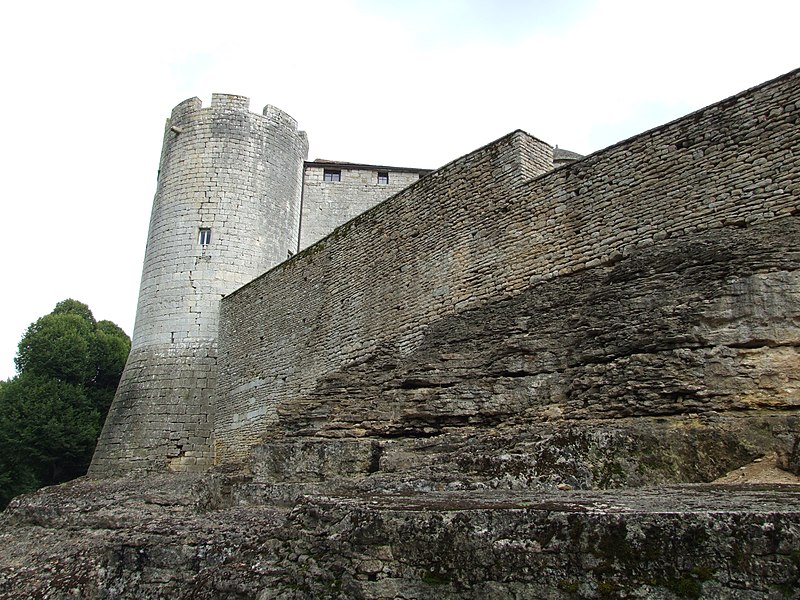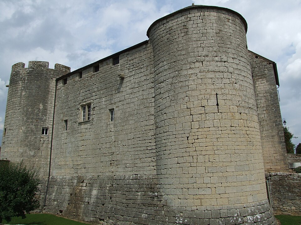 Sur le plan architectural, le château se compose d'une enceinte et d'un donjon rectangulaire cantonné de tours rondes. L'accès, anciennement au nord par un pont-levis face au village, se fait aujourd'hui à l'ouest par un couloir à ciel ouvert qui était originellement fermé par un porche à chaque extrémité. L'enceinte, divisée en deux par un fossé est-ouest, présente au nord un réduit flanqué de tours rectangulaires à contreforts d'époque romane ; au sud se trouvent l'église romane et le cimetière, encadrés par deux tours rondes à l'est et une tour carrée au sud. Le donjon, implanté à l'ouest, est cantonné de quatre tours rondes autour d'une petite tour rectangulaire et s'ouvre par une tour-porche munie d'une porte charretière. À l'intérieur, le bâtiment nord est détruit, les bâtiments est et sud ont été rebâtis ultérieurement et seul le bâtiment ouest reste d'origine ; à droite de la tour-porche, les deux premiers niveaux de ce bâtiment occidental abritent la chapelle. La tour nord-est, plus saillante, est accessible par un orifice au centre de la voûte. La cour contient une citerne et la courtine porte un chemin de ronde reliant les étages de tir des tours ; le long de la courtine nord, un bâtiment abritait jadis une grande salle et, en son angle, la tour nord-ouest comporte des latrines. La tour sud-est renferme un escalier desservant une poterne de visite des fossés et le soubassement du bâtiment sud, dont la base empiète sur la tour ; à l'est de la cour, un bâtiment pentagonal s'ouvre vers l'extérieur par deux baies géminées. Le bâtiment sud repose sur un soubassement voûté qui s'ouvre à l'est sur le fossé et sur la cour par un escalier droit ; son rez-de-chaussée abrite une grande salle et l'étage de comble donne accès au chemin de ronde. L'ensemble du château et ses douves sont classés par arrêté du 28 janvier 1930, tandis que les murs et les tours des remparts ont été inscrits par arrêté du 8 septembre 1936.