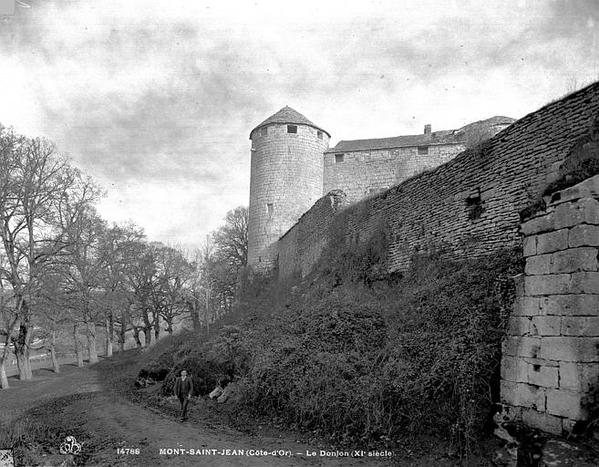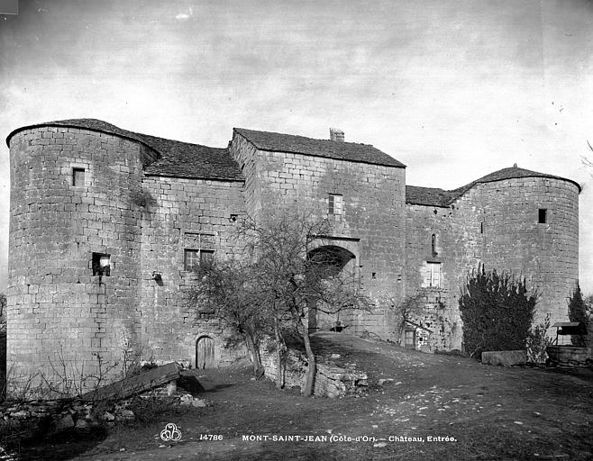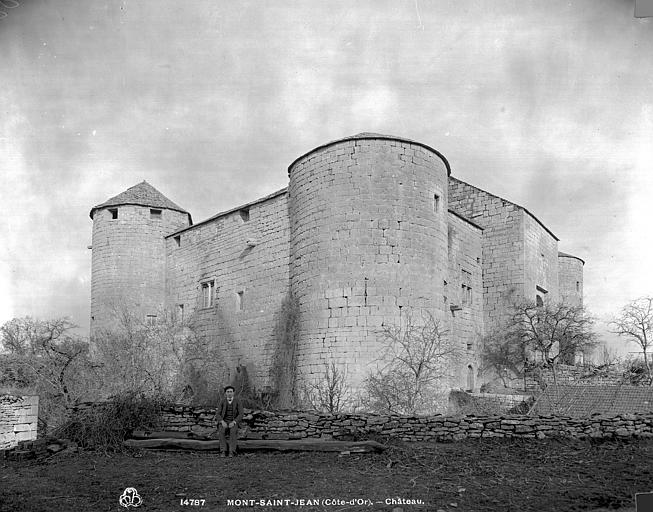 Le château de Mont-Saint-Jean, forteresse médiévale de Bourgogne-Franche-Comté, s'élève sur un éperon au sud du village et domine d'une centaine de mètres la rive nord du Serein et la RD 117. Citée comme place-forte dès le début du Xe siècle, Mont-Saint-Jean fut jusqu'au XIVe siècle le siège d'une importante châtellenie du duché de Bourgogne. De l'époque romane ou pré-romane subsiste l'extrémité nord de l'enceinte, mais la majeure partie de l'édifice, notamment le donjon, a été édifiée dans la première moitié du XIIIe siècle, probablement pour Guillaume II de Mont-Saint-Jean. L'ensemble a peu été remanié : plusieurs fenêtres, dont une croisée, ont été percées à la fin du XVe siècle ou au début du XVIe siècle, et les créneaux de l'une des tours du donjon ainsi que certaines ouvertures de tir sont manifestement tardifs. La première motte paraît antérieure à l’an mil, et le site est mentionné lors d'un siège en 924 par Raoul, duc de Bourgogne et roi de France. Divers actes et échanges de seigneurie jalonnent son histoire : un accord d'assistance en 1180, des demandes de remise de château en 1305, un échange en 1358 et des démêlés avec les écorcheurs au XVe siècle sont signalés. En 1658, le château est décrit comme une forteresse de dix grosses tours reliées par une muraille ; le donjon disposait alors de quatre tours d'angle, d'un pont-levis, d'une citerne et d'un puits profond. En 1869, Joanne le qualifie encore de "ruines d'un castel".