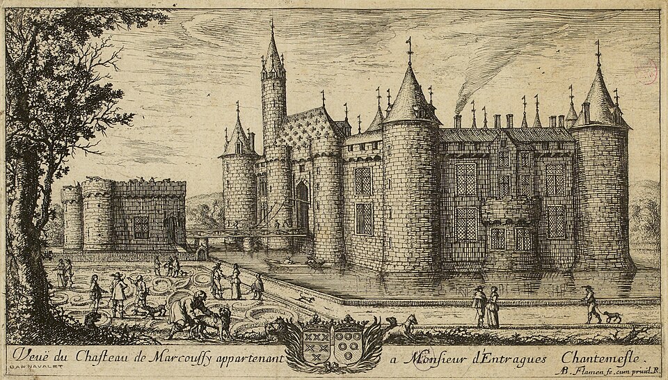Le site de Montagu s'est développé à partir d'une motte féodale dont subsiste une tour carrée aujourd'hui encastrée dans l'aile nord du château reconstruit au XVe siècle. Jean de Montagu, seigneur de Marcoussis et surintendant des finances de Charles VI, fit édifier à partir de 1400 (ou 1402) un château quadrangulaire cantonné de quatre tours rondes; des caves voûtées datent également du XVe siècle. Après des épisodes de confiscation et de transmissions, la seigneurie passa aux mains des Malet de Graville, dont Louis Malet de Graville est tenu pour l'auteur de certains aménagements défensifs, notamment la barbacane dont une tour fut transformée au XIXe siècle en chapelle. Les logis et les défenses furent remaniés aux XVIIe et XVIIIe siècles, avec la construction notamment de ponts dormants encore visibles. Au cours des troubles des XVe et XVIe siècles le château connut occupations et sièges, et il accueillit au XVIIe siècle des personnages de la Fronde. À la Révolution le domaine fut pillé et nationalisé, puis servi de ferme pendant plusieurs années. Entre 1805 et 1810 une partie de la ferme fut transformée en maison de maître; le marquis Chastenet de Puységur fit ensuite abattre l'essentiel du château en 1805–1806, officiellement pour éviter sa transformation en prison d’État, mais des études récentes évoquent aussi des motifs financiers liés à la revente des pierres et l'état de délabrement de l'édifice. Il ne reste aujourd'hui que la tour ouest de la barbacane et la tour d'angle est dite « tour des oubliettes », tandis que le plan d'ensemble demeure lisible grâce au tracé des douves et aux vestiges des courtines; des caves voûtées subsistent en outre de l'autre côté de la R.N. 446. Un nouveau château en brique et pierre fut construit en 1864 par l'architecte Rohault de Fleury pour le marquis de la Baume‑Pluvinel, qui aménagea le parc et transforma certaines parties en promenade paysagère. En 1940 la propriété, comprenant les ruines, fut léguée à la Fondation des orphelins apprentis d'Auteuil, qui y installa une école d'horticulture et intégra le site au domaine scolaire. À partir des années 1970 des bénévoles, d'abord autour de Roland Payen puis par l'Association historique de Marcoussis, entreprirent des dégagements et des consolidations, aboutissant à l'inscription et au classement de la tour du châtelet, de la tour des oubliettes, du terre‑plein d'arasement et des douves, ainsi qu'à l'inscription des caves voûtées du grand parc en 1984. Le château de Montagu reste un témoin majeur de l'architecture fortifiée de la fin du Moyen Âge et de l'histoire locale, dont les vestiges et le parc sont aujourd'hui entretenus et étudiés par des associations et des services patrimoniaux.
