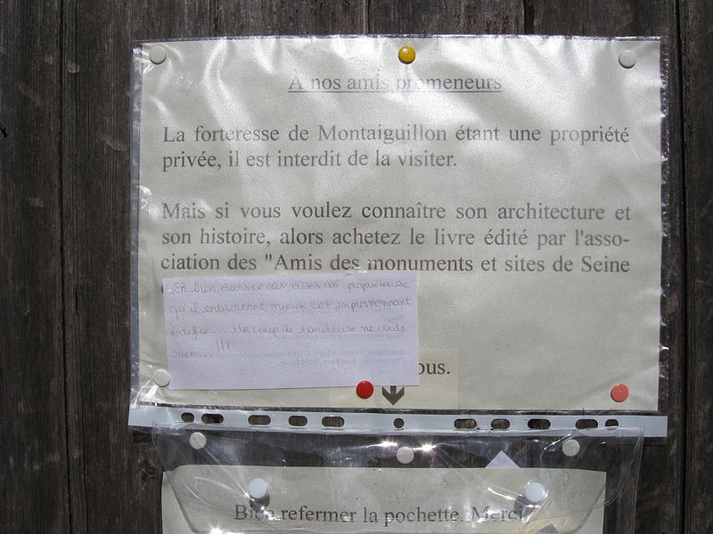 Le château de Montaiguillon est un château fort situé à Louan-Villegruis-Fontaine. Il s'agit d'une place forte érigée à la fin du XIIe siècle. Une légende affirme que des souterrains le reliaient à Provins. Il aurait été construit par les chevaliers de Saint-Jean de Jérusalem et représente l'un des rares sites médiévaux restés non modifiés. À 1,5 km à l'ouest passait un chemin dit « Perré », voie gallo-romaine reliant Troyes à Senlis par Meaux, ce qui faisait de cet emplacement un point stratégique pour la défense d'un grand axe commercial en l'absence de cité fortifiée. Durant la minorité de Thibaut IV, Philippe Auguste intervint pour encourager la construction de fortifications en Champagne ; c'est la raison évoquée pour l'architecture identique entre Montaiguillon et le château royal du Louvre, ces deux ouvrages ayant été réalisés par les architectes du roi. Parallèlement, Blanche de Navarre fit réparer et édifier plusieurs places fortes, dont le château de Mont-aimé. Les templiers occupèrent la forteresse au XIVe siècle ; après leur procès, Montaiguillon passa aux mains des chevaliers de Malte. Pendant la guerre de Cent Ans, le château fut le théâtre d'un siège célèbre où figurèrent des guerriers réputés tels que les sires de Barbazan et de Lahire, Pierre de Chailly, le commandeur de Giresme et Prigent de Coëtivy. En 1433, Nicolas de Giresme et Denis de Chailly reprirent Montaiguillon et sa région aux Anglais. Le fief appartint ensuite successivement à De Boucicault, à Baudricourt, puis à la maison de Choiseul, qui le conserva jusqu'en 1595, date à laquelle M. de Villemonté en fit l'acquisition. En 1613, Louis XIII, soucieux d'éliminer toute menace contre son pouvoir, indemnisa de Villemonté et ordonna la destruction de la place forte, exécutée à l'aide d'explosifs. Le château, édifié sur une butte de sable de Fontainebleau de 20 à 30 mètres, encaissa les déflagrations ; une tour se mit à pencher sans s'effondrer. Montaiguillon changea ensuite de propriétaires et fut vendu en 1718 au marquis de Saint-Chamans, maréchal des camps et armées du roi et lieutenant des gardes du corps. Son fils, Alexandre Louis de Saint-Chamans, marquis de Saint-Chamans et de Montaguillon, lieutenant général de l'armée du roi et grand sénéchal d'épée du Béarn, dut émigrer en 1792. Les ruines furent classées au titre des monuments historiques en 1875. Le château est encore à vendre ; depuis le meurtre de son précédent gardien en 2002, le lieu est tenu à l'écart par les habitants et considéré comme « hanté », l'identité du tueur restant inconnue.