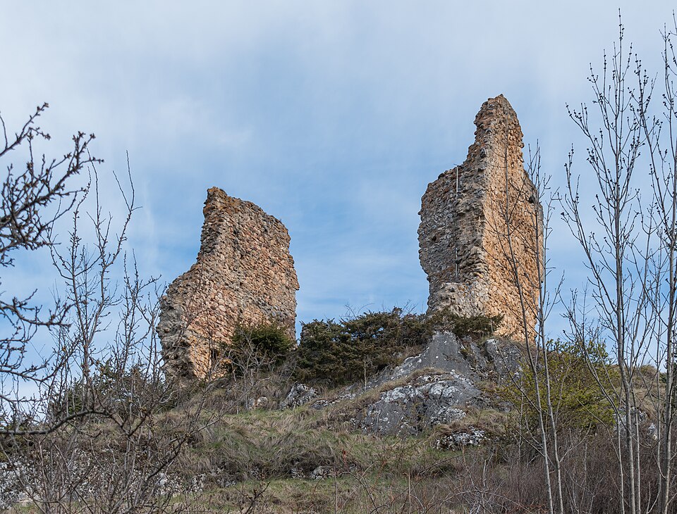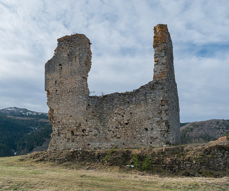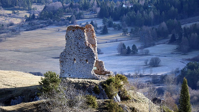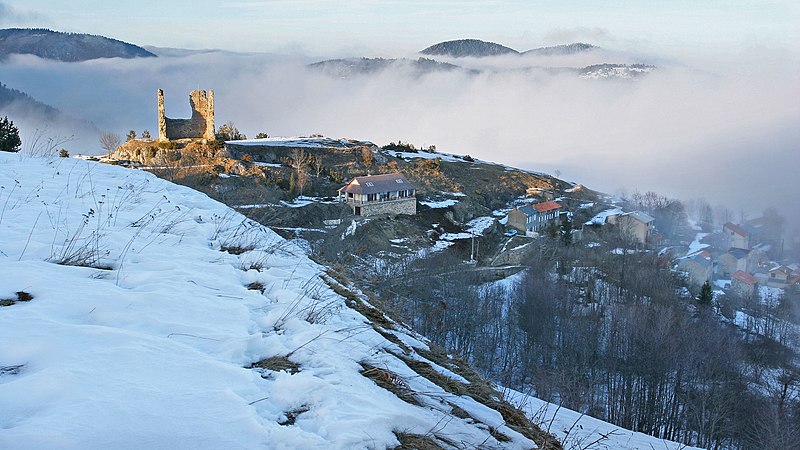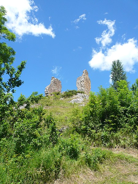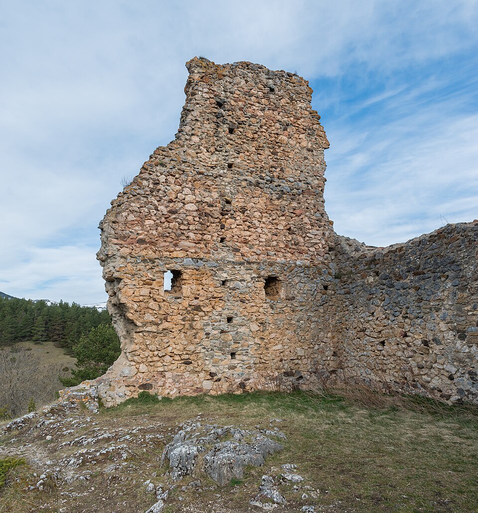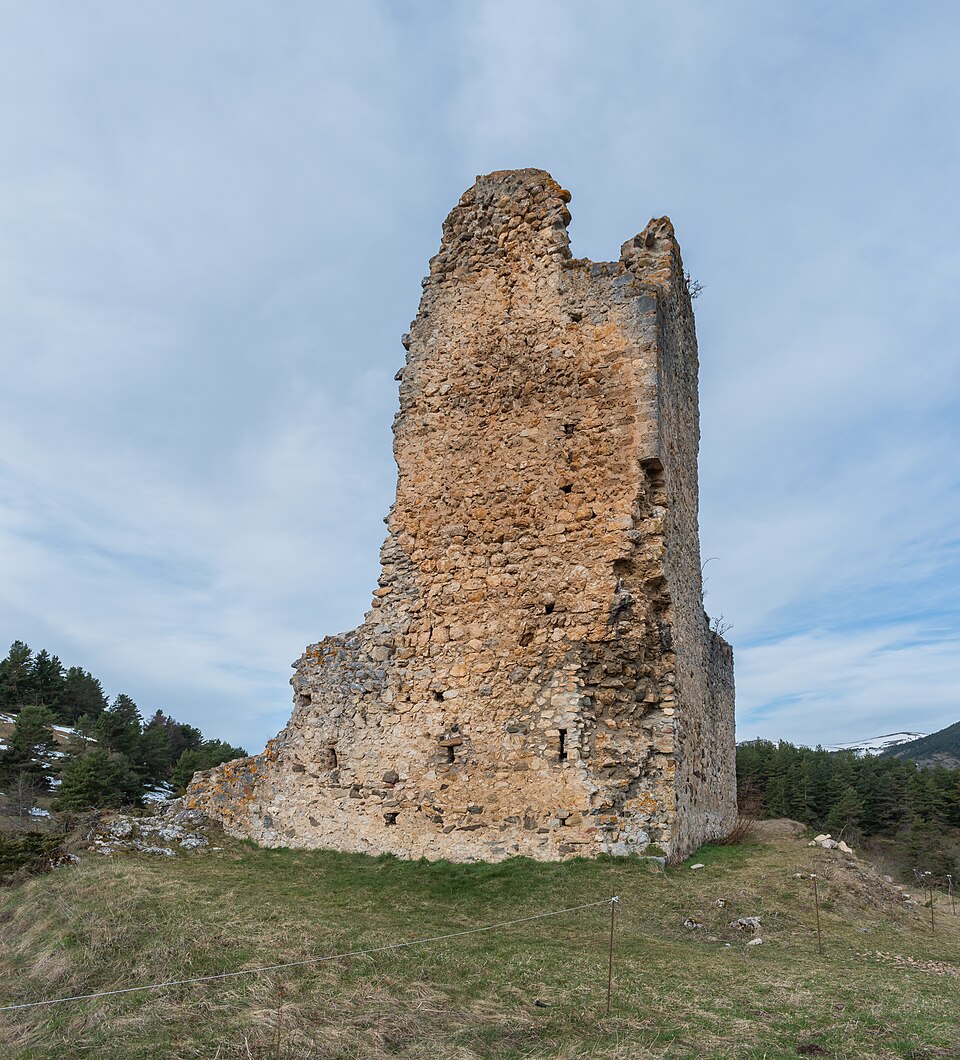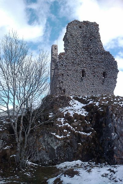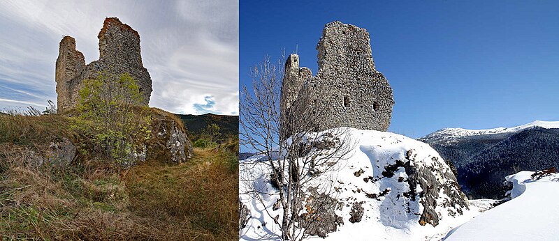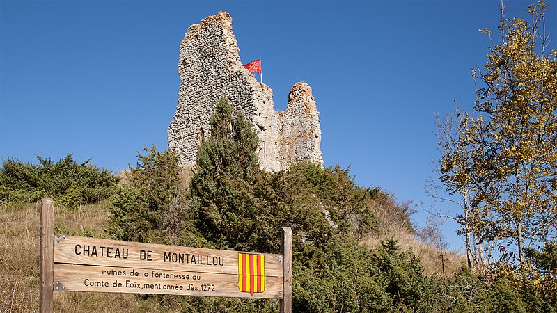 Les restes du château de Montaillou, inscrits aux monuments historiques par arrêté du 21 décembre 1984, se dressent sur une butte dominant le bourg et la haute vallée de l'Hers, à la frontière ancienne entre le comté de Foix et le pays de Sault. La seigneurie dépendait du comte de Foix dès le début du XIIe siècle, et un castrum est mentionné dans la liste des forteresses du comte en 1272. Au XIIIe siècle, le domaine appartint à Bernard d'Alion, seigneur de Donézan, qui épousa Esclarmonde de Foix ; Bernard fut condamné pour hérésie et brûlé à Perpignan en 1258, et le château fut probablement démoli à cette époque. Après la chute de Montségur en 1244 il avait d'ailleurs été partiellement rasé, puis reconstruit puisqu'il réapparaît dans les textes en 1272. En 1309, des habitants de Montaillou suspectés d'hérésie furent arrêtés, rassemblés au château puis transférés à Carcassonne pour être interrogés par l'Inquisition. Aux XIVe et XVe siècles la forteresse joua un rôle important pour la défense des limites du comté de Foix. Au début du XVe siècle, et plus encore pendant les Guerres de Religion, le château dut être remis en état pour résister à un siège : en 1415 on nettoya le fossé, on renforça les fortifications par l'édification d'échauguettes crénelées et la pose de hourds sur les courtines de la basse-cour, et l'on prévint l'approvisionnement en pierres à lancer sur les assaillants. Les habitants furent mis à contribution pour convoyer bois, chaux et sable, travailler sur le chantier et aménager des espaces de stockage et un enclos pour les animaux. Trente-deux hommes du village furent affectés à la garde et à la défense de la basse-cour, tandis que des soldats assuraient la défense du donjon ; l'équipement comprenait des casques (cervelières et bassinets), des épées, lances et boucliers, et certains défenseurs disposaient d'arbalètes avec vingt-quatre carreaux chacun. On ordonna aussi à la communauté de se procurer trois canons de moyen calibre avec vingt boulets de pierre de 5,5 kg par pièce et la poudre nécessaire, ainsi que vingt arbalètes supplémentaires avec trois douzaines de carreaux chacune, à mettre en réserve. Le château perdit progressivement son rôle de poste frontière et Louis XIII ordonna son démantèlement en 1638. Aujourd'hui ne subsistent que quelques pans de murs du donjon et des courtines de la basse-cour, ainsi que la trace des fossés dont les pierres ont été réemployées. La silhouette évoque une maison forte carrée dont il ne reste plus que trois murs, et divers arrachements laissent supposer qu'elle comportait trois niveaux. La présence d'un cachot dans la partie basse d'une tour est attestée.