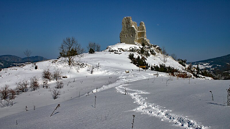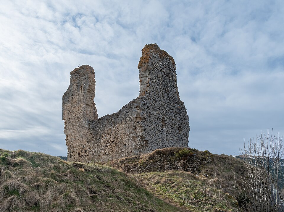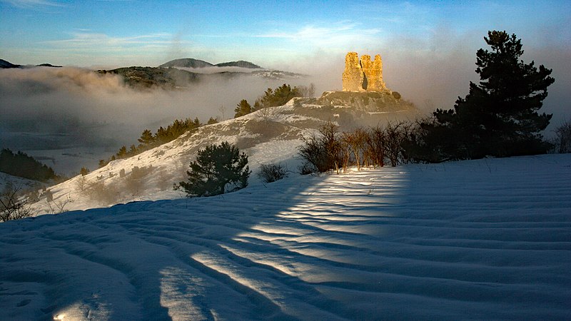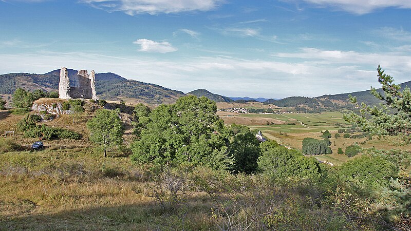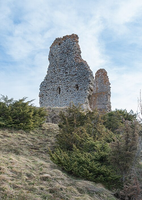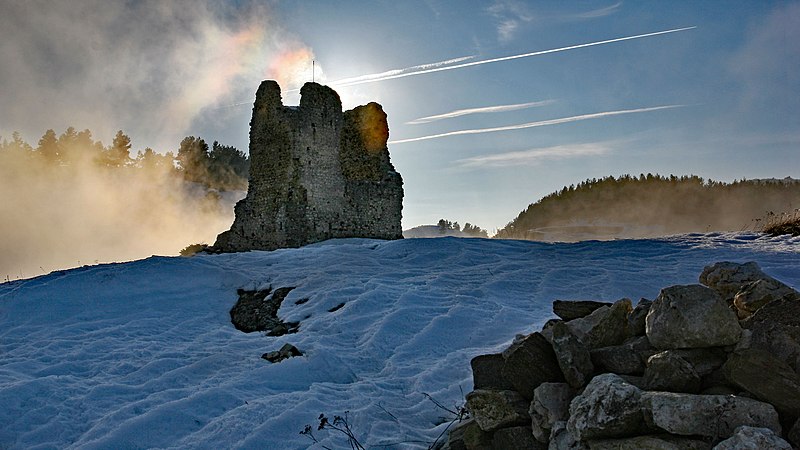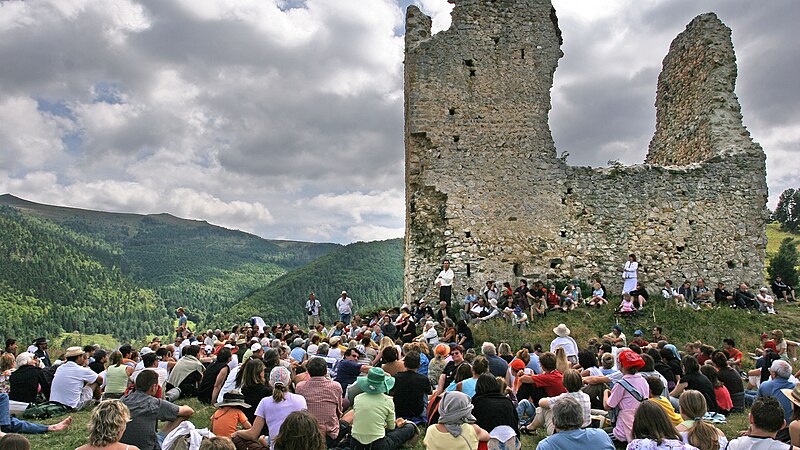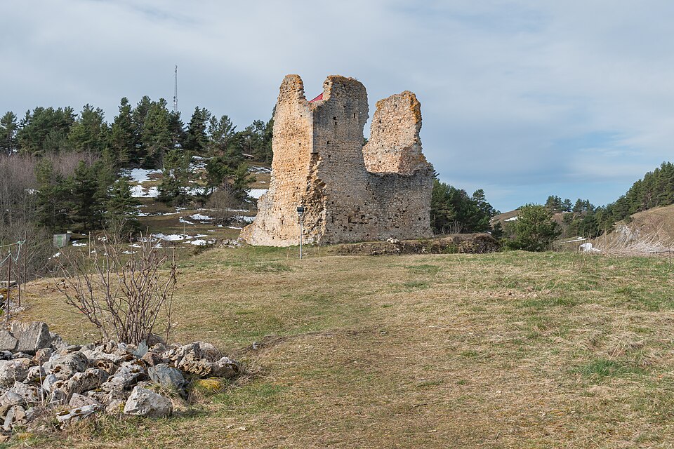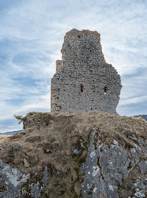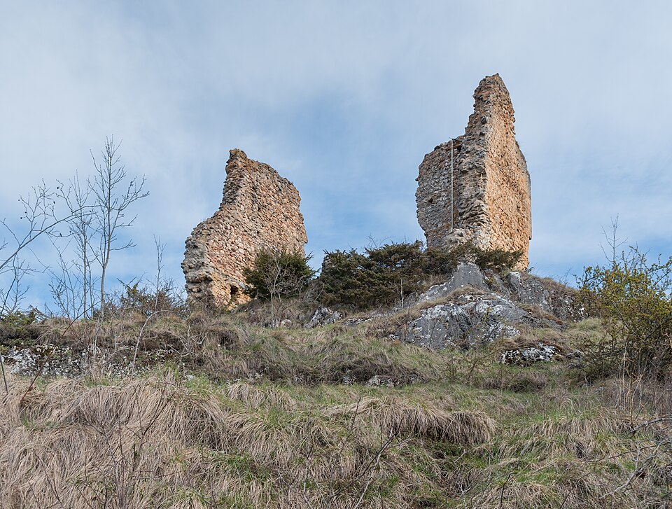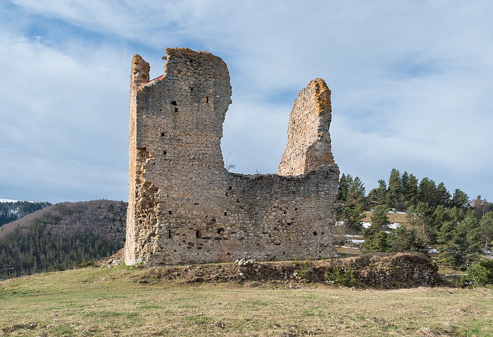 Les restes du château de Montaillou, inscrits aux monuments historiques par arrêté du 21 décembre 1984, se dressent sur une butte dominant le bourg et la haute vallée de l'Hers, à la frontière ancienne entre le comté de Foix et le pays de Sault. La seigneurie dépendait du comte de Foix dès le début du XIIe siècle, et un castrum est mentionné dans la liste des forteresses du comte en 1272. Au XIIIe siècle, le domaine appartint à Bernard d'Alion, seigneur de Donézan, qui épousa Esclarmonde de Foix ; Bernard fut condamné pour hérésie et brûlé à Perpignan en 1258, et le château fut probablement démoli à cette époque. Après la chute de Montségur en 1244 il avait d'ailleurs été partiellement rasé, puis reconstruit puisqu'il réapparaît dans les textes en 1272. En 1309, des habitants de Montaillou suspectés d'hérésie furent arrêtés, rassemblés au château puis transférés à Carcassonne pour être interrogés par l'Inquisition. Aux XIVe et XVe siècles la forteresse joua un rôle important pour la défense des limites du comté de Foix. Au début du XVe siècle, et plus encore pendant les Guerres de Religion, le château dut être remis en état pour résister à un siège : en 1415 on nettoya le fossé, on renforça les fortifications par l'édification d'échauguettes crénelées et la pose de hourds sur les courtines de la basse-cour, et l'on prévint l'approvisionnement en pierres à lancer sur les assaillants. Les habitants furent mis à contribution pour convoyer bois, chaux et sable, travailler sur le chantier et aménager des espaces de stockage et un enclos pour les animaux. Trente-deux hommes du village furent affectés à la garde et à la défense de la basse-cour, tandis que des soldats assuraient la défense du donjon ; l'équipement comprenait des casques (cervelières et bassinets), des épées, lances et boucliers, et certains défenseurs disposaient d'arbalètes avec vingt-quatre carreaux chacun. On ordonna aussi à la communauté de se procurer trois canons de moyen calibre avec vingt boulets de pierre de 5,5 kg par pièce et la poudre nécessaire, ainsi que vingt arbalètes supplémentaires avec trois douzaines de carreaux chacune, à mettre en réserve. Le château perdit progressivement son rôle de poste frontière et Louis XIII ordonna son démantèlement en 1638. Aujourd'hui ne subsistent que quelques pans de murs du donjon et des courtines de la basse-cour, ainsi que la trace des fossés dont les pierres ont été réemployées. La silhouette évoque une maison forte carrée dont il ne reste plus que trois murs, et divers arrachements laissent supposer qu'elle comportait trois niveaux. La présence d'un cachot dans la partie basse d'une tour est attestée.
