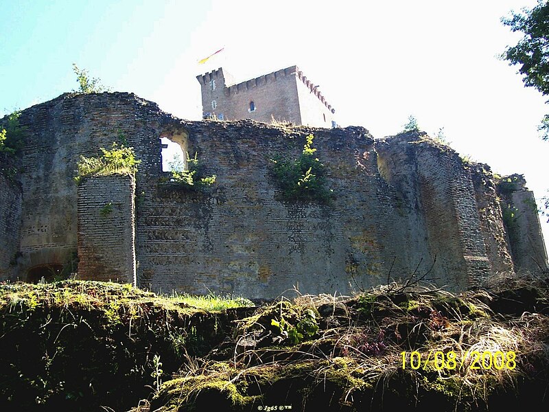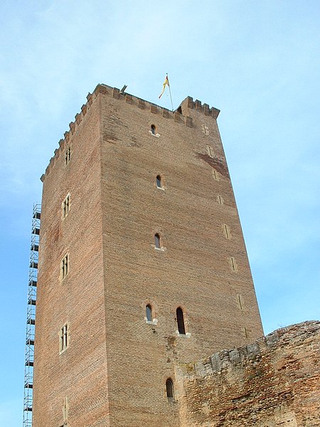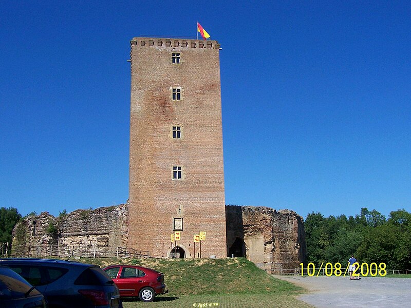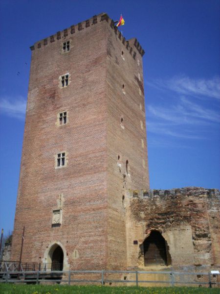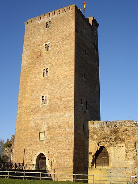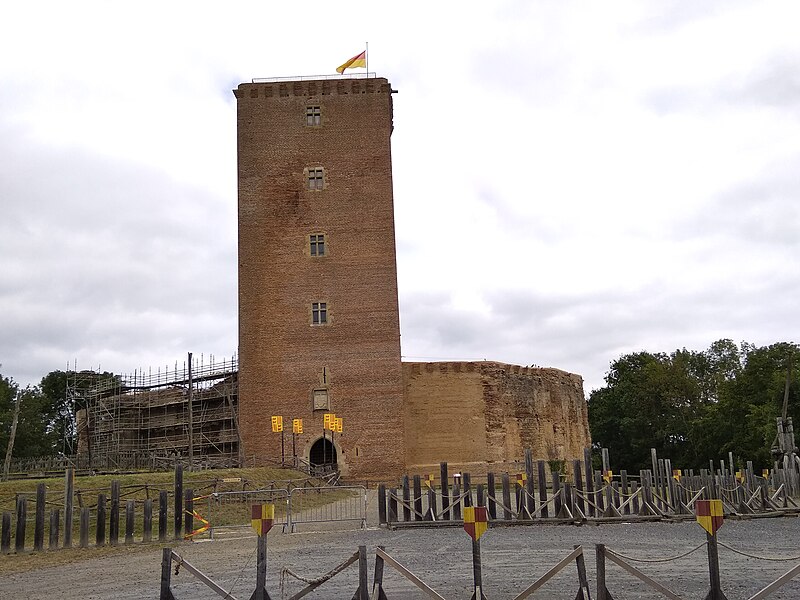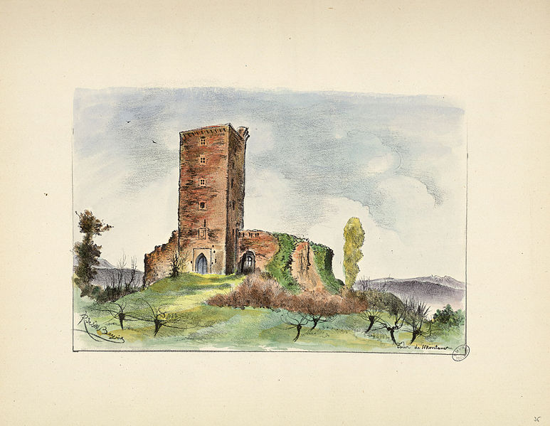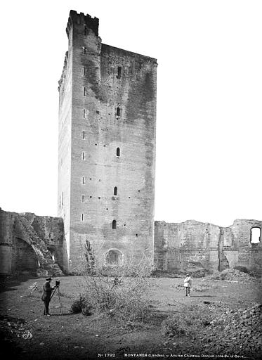 Le château de Montaner est un ancien château fort du XIVe siècle, perché au bout d’un long plateau sur la commune de Montaner (Pyrénées-Atlantiques), dominant la vallée de l’Adour et faisant face à l’Armagnac. Le site avait été occupé dès le XIe siècle par les vicomtes de Montaner et a été reconstruit à la fin du XIVe siècle pour Gaston Fébus par l’architecte Sicard de Lordat. Il subsiste aujourd’hui principalement le donjon et les murs d’enceinte. L’enceinte, de plan polygonal, est revêtue de cailloux roulés disposés en feuilles de fougère séparés par des assises de briques; ses arêtes sont flanquées de contreforts adhérents en briques et les faces sont percées de portes gothiques et de fenêtres croisées, avec quelques restes de mâchicoulis. La tour du donjon, haute d’environ 40 m, fait office de tour-porte et donne accès à la cour intérieure de plan quasi circulaire ; son côté nord-est est pourvu d’une petite tour carrée abritant l’escalier. Le donjon est surmonté d’une reproduction du blason de Foix-Béarn et porte la devise « Fébus mé fé ». La cour, centrée par un puits, est bordée d’une grande salle, de cuisines et de logis dotés de lavabos et de placards, organisés sur deux niveaux desservis par une galerie; au nord se trouve une seconde tour-porte précédée d’une barbacane. En 1379 Gaston Fébus conclut un accord avec des cagots du Béarn pour la fourniture et la pose de la charpente du château; le maître charpentier Pierre Doat s’engagea notamment à installer des fours pour cuire 100 000 briques par an et, avec quatre-vingt-huit charpentiers, à fournir et poser les pièces de bois taillées et leurs ferrures, contre des exonérations et des droits d’usage dans les forêts. Des serfs furent également dispensés de corvées contre des paiements affectés aux travaux, et lors des rénovations de 1398 les exemptions prévues pour les cagots furent maintenues. Le château fut vendu par Jean d’Albret à Jean Ier de Foix pour 15 000 écus d’or. Depuis 1854, le site a été mis en valeur et géré par le conseil général des Pyrénées-Atlantiques; à partir de 1962 des bénévoles ont entrepris des campagnes de restauration au sein de l’association Pierres et Vestiges, devenue Les Amis du Château de Montaner dans les années 1980. Les Médiévales de Montaner, organisées en été en partenariat avec des associations locales, ont réuni près de 18 000 visiteurs sur deux jours, mais la délégation de gestion confiée en 2025 à la société Histoire de jouer a conduit à l’arrêt du festival et au retrait de certaines associations participantes. Le donjon et les ruines de l’enceinte sont classés au titre des monuments historiques par arrêté du 18 mars 1980; la totalité du site fortifié, à l’exception des parties classées, a été inscrite par arrêté du 29 septembre 2021, incluant les vestiges de la tour nord, la barbacane, les retranchements du secteur nord, l’ancien village et ses fortifications ainsi que l’ensemble des sols et éléments défensifs (fossés, lices, chemins-couverts et avant-chemins-couverts). Parmi les capitaines et gouverneurs qui se sont succédé figurent des membres des maisons de Navailles, Nays, Durban, La Borde et Montesquiou; on y relève notamment Loup-Bergon de Bordeu, chargé de la garde par Gaston VII de Béarn au XIIIe siècle, Guilhem-Othon vers 1318, Bertrand et Bertranet de Navailles (1397 et 1427), Joanot de Navailles (1466), Laborde et Samson de Nays (1560), Jean Durban (1564-1569), Bernard de Laborde (1569), Jean de Nays (1594) et Henry de Montesquiou, nommé en 1627 puis gouverneur en 1628. Le château a par ailleurs servi de décor au film Le Monde vivant d’Eugène Green.